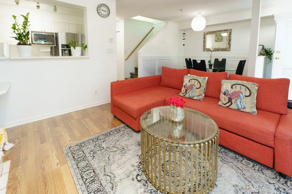 Welcome to Georgian Gardens — a beautifully maintained two-level CORNER town home nestled in the heart of Guildford. This spacious 2bdrm, 2-bath home boasts hardwood floors, elegant crown moulding, brand-new kitchen counter tops/back splash, sleek stainless-steel appliances, in-suite laundry & a welcoming patio perfect for entertaining family/friends. Includes one parking stall & one storage locker. Perfect for first-time home buyers or those looking to downsize without compromising on comfort and location....