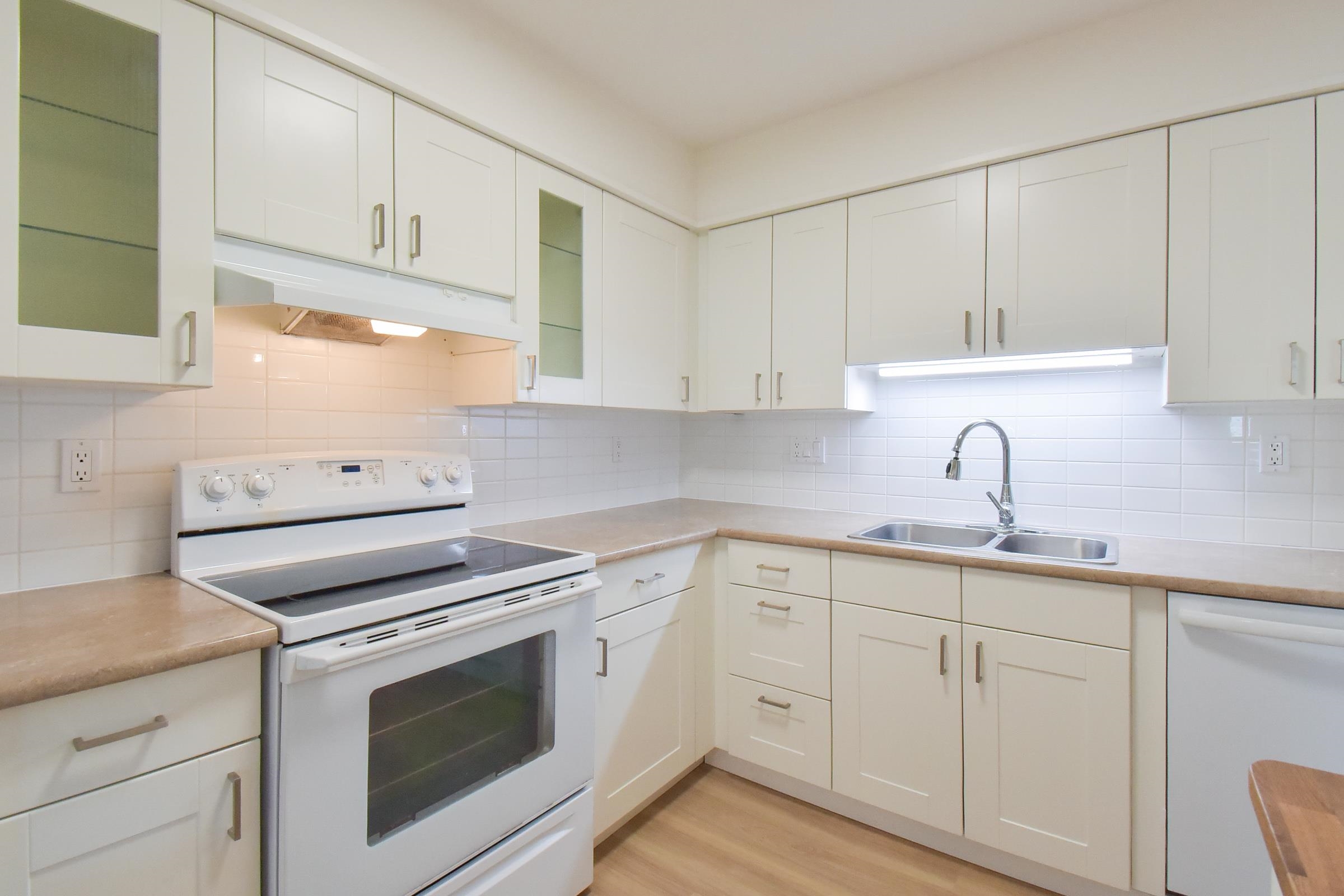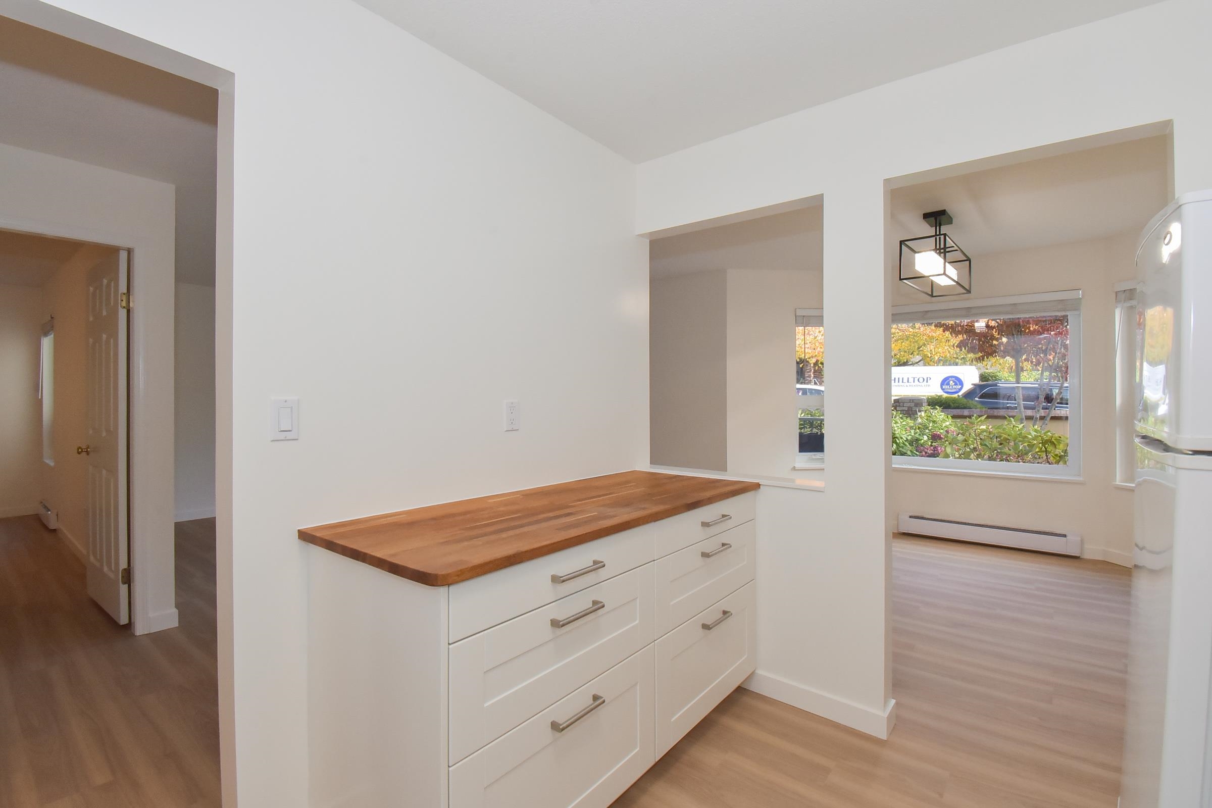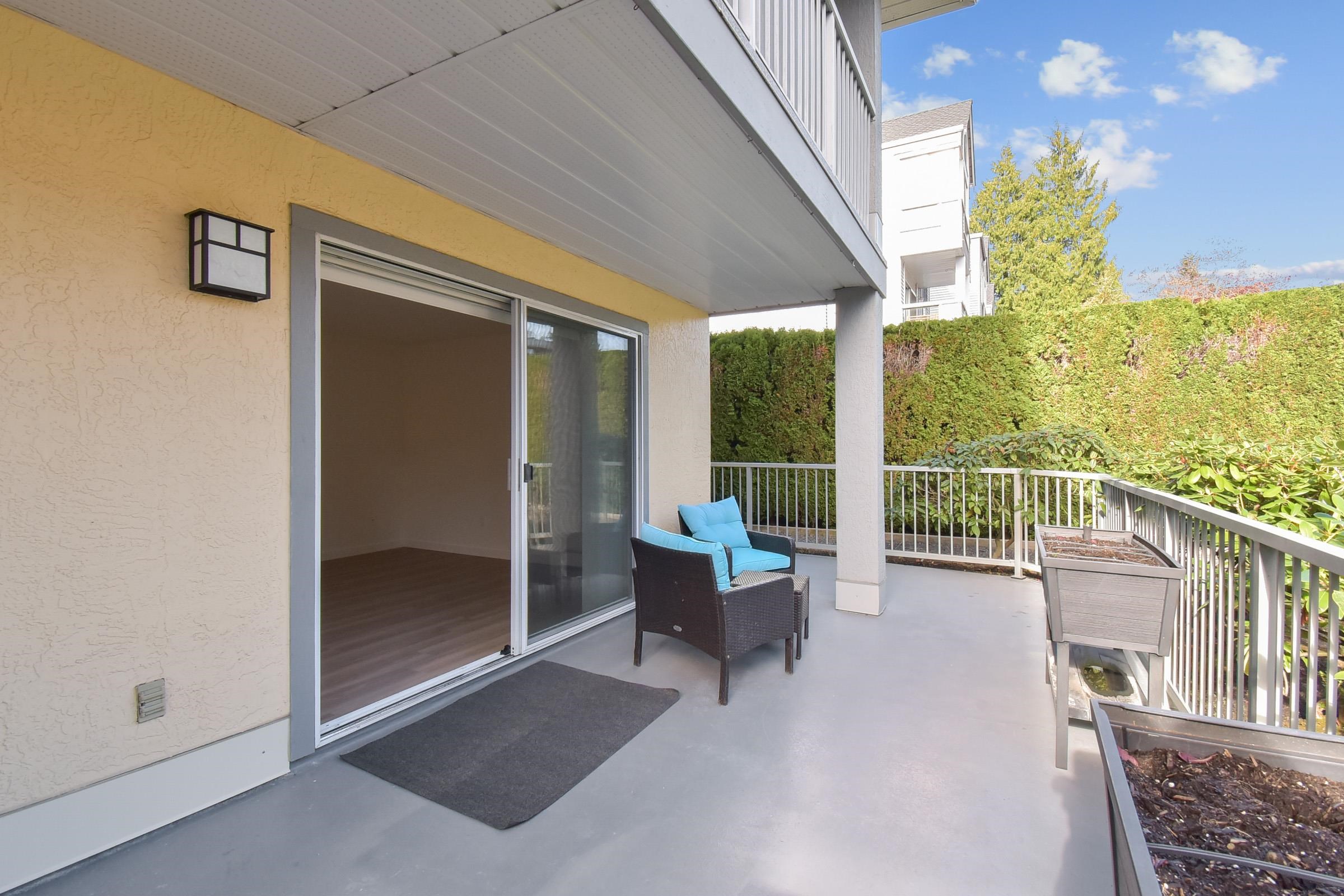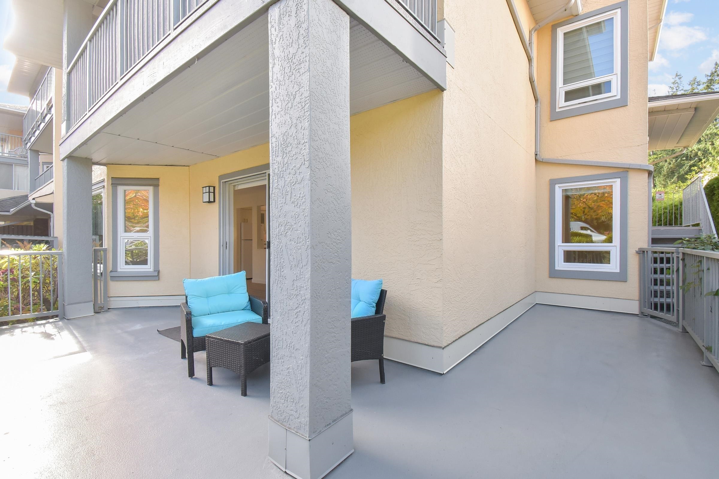 Welcome to The Chartwell – 55+ living in the heart of White Rock! Enjoy bright, quiet comfort in this beautifully updated 2-bed + den, 2-bath ground-floor corner suite with brand-new floors and fresh paint. Private entrance, large sunny 325 sq. ft. terrace, and no shared walls offer rare peace and privacy. Steps to shopping, transit, and all amenities—move-in ready and a must-see!