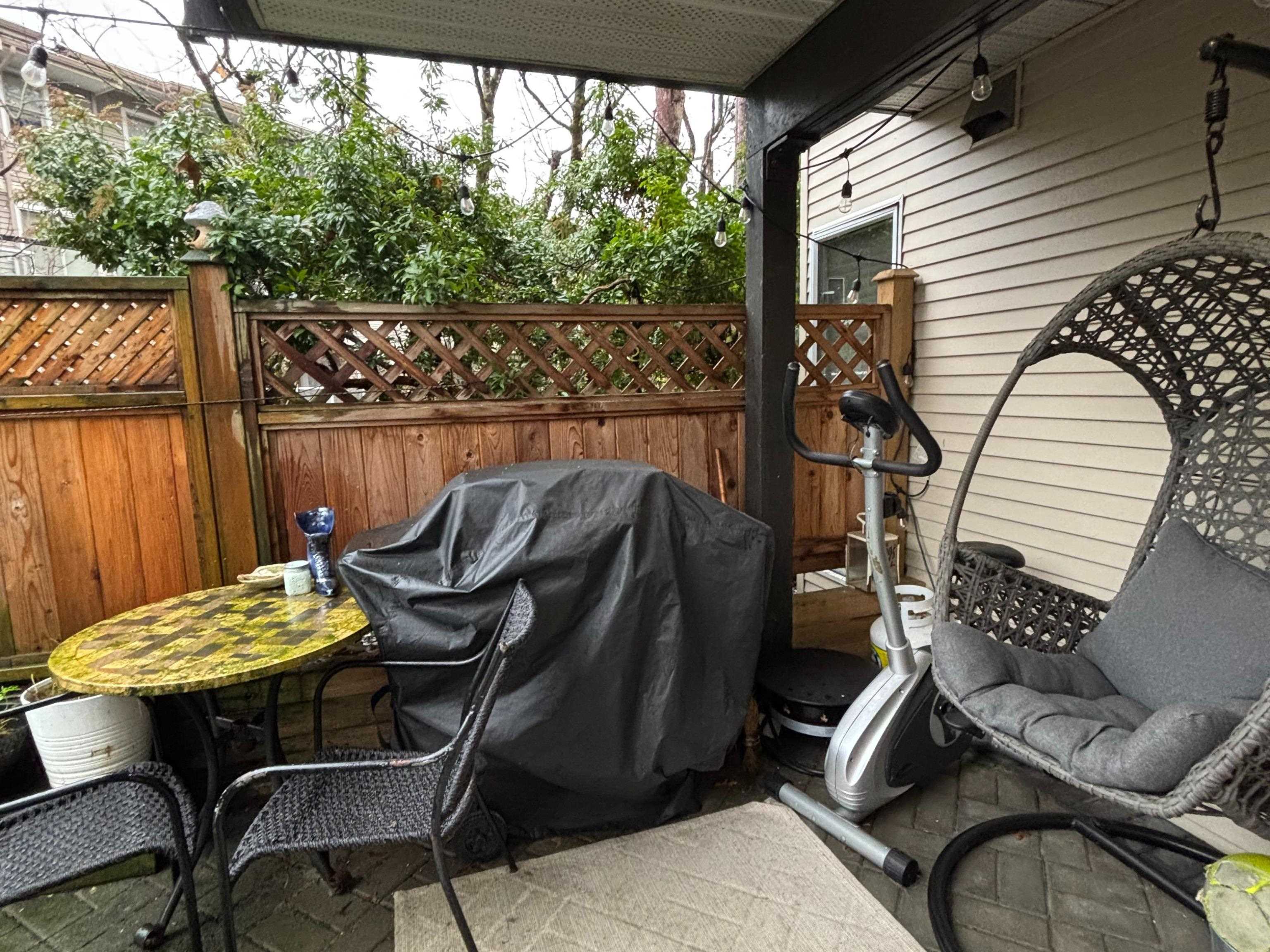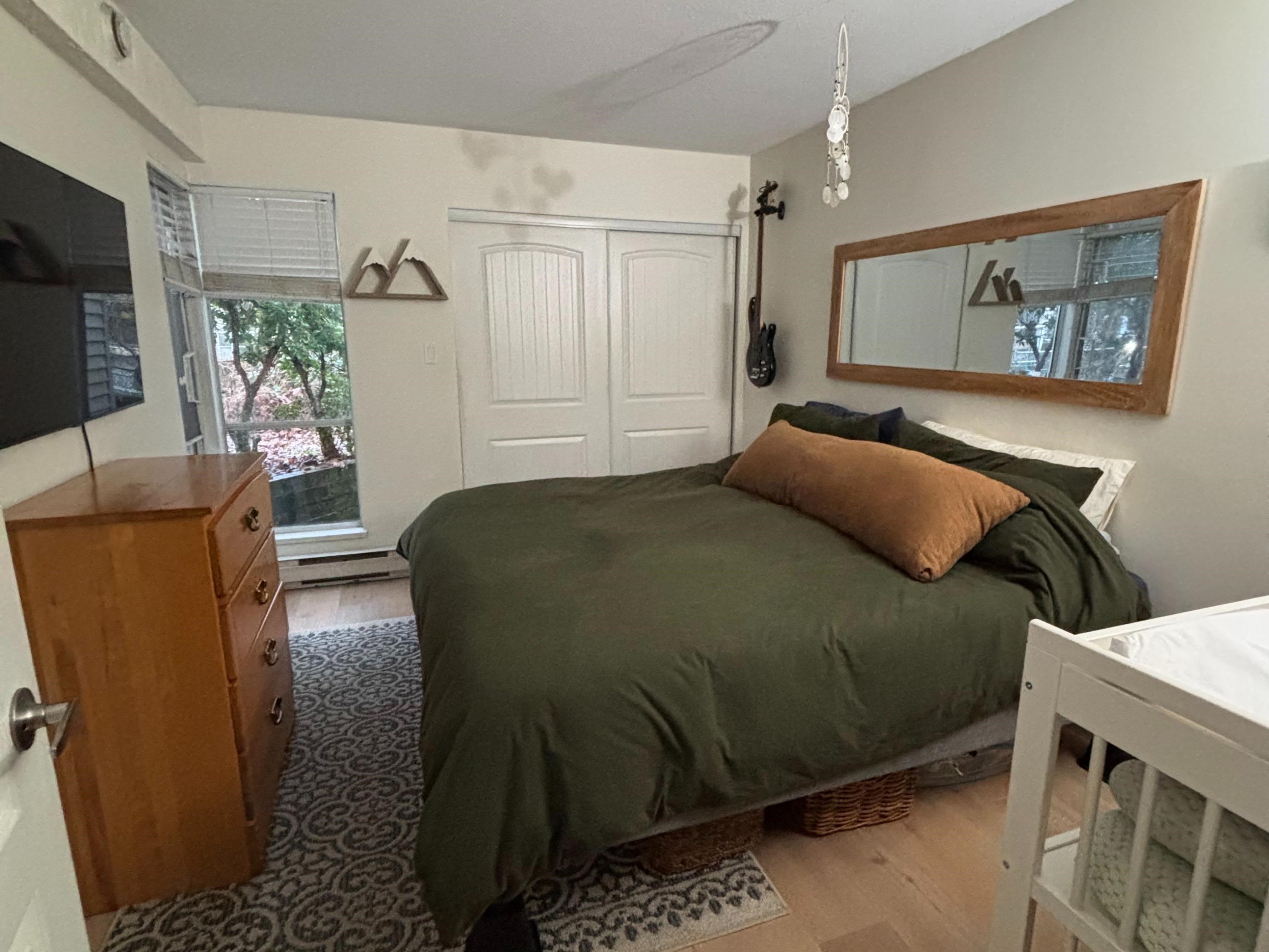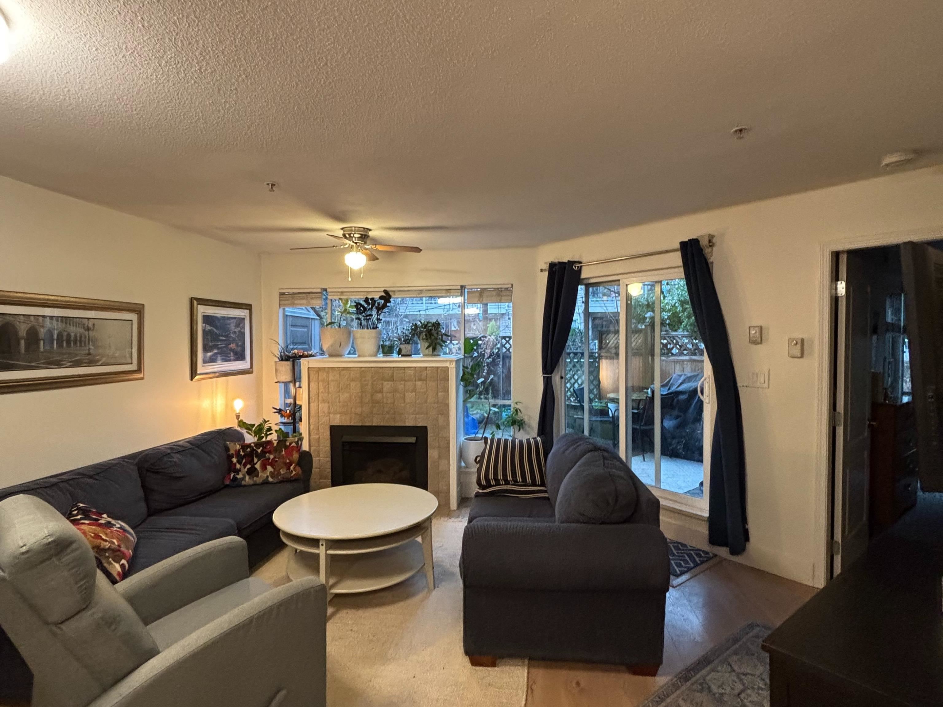 Quiet, ground-floor 1 bed condo in a well-maintained building. The oversized bedroom easily accommodates a king-size bed. A huge 300+ sqft private patio (can be used as a second entrance), backing onto the strata's landscaped garden & maple trees for privacy & shade. North-facing keeps the unit cool in the summer. Open-concept kitchen, living & dining area (dining space can be used as a home office). Fresh paint, stylish flooring, updated bathroom & appliances under 3 years old (microwave not included). Per...
