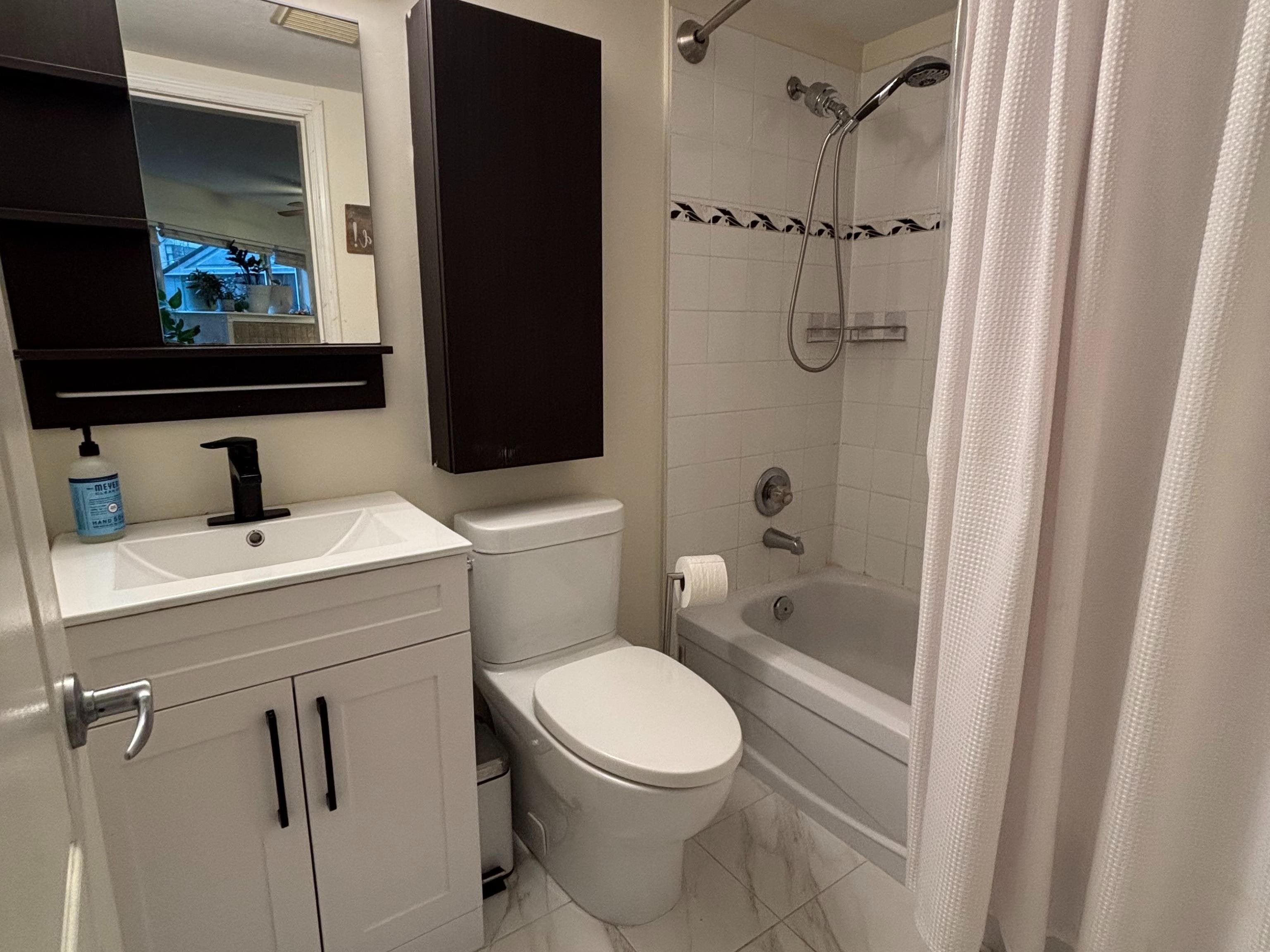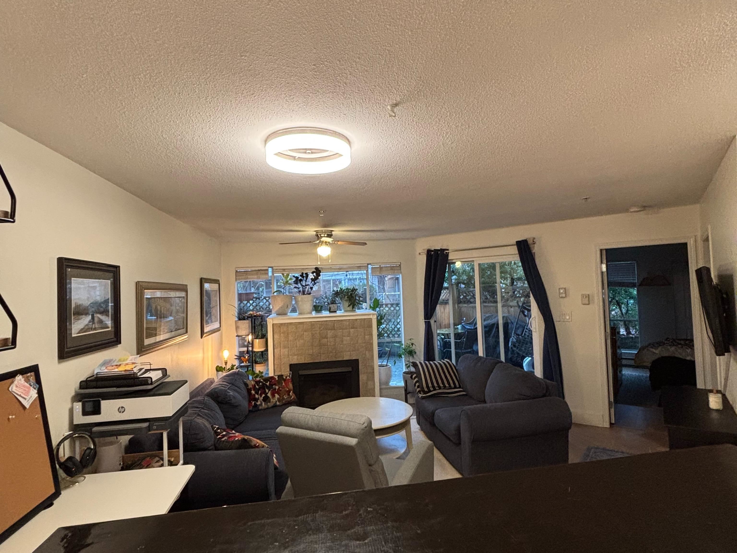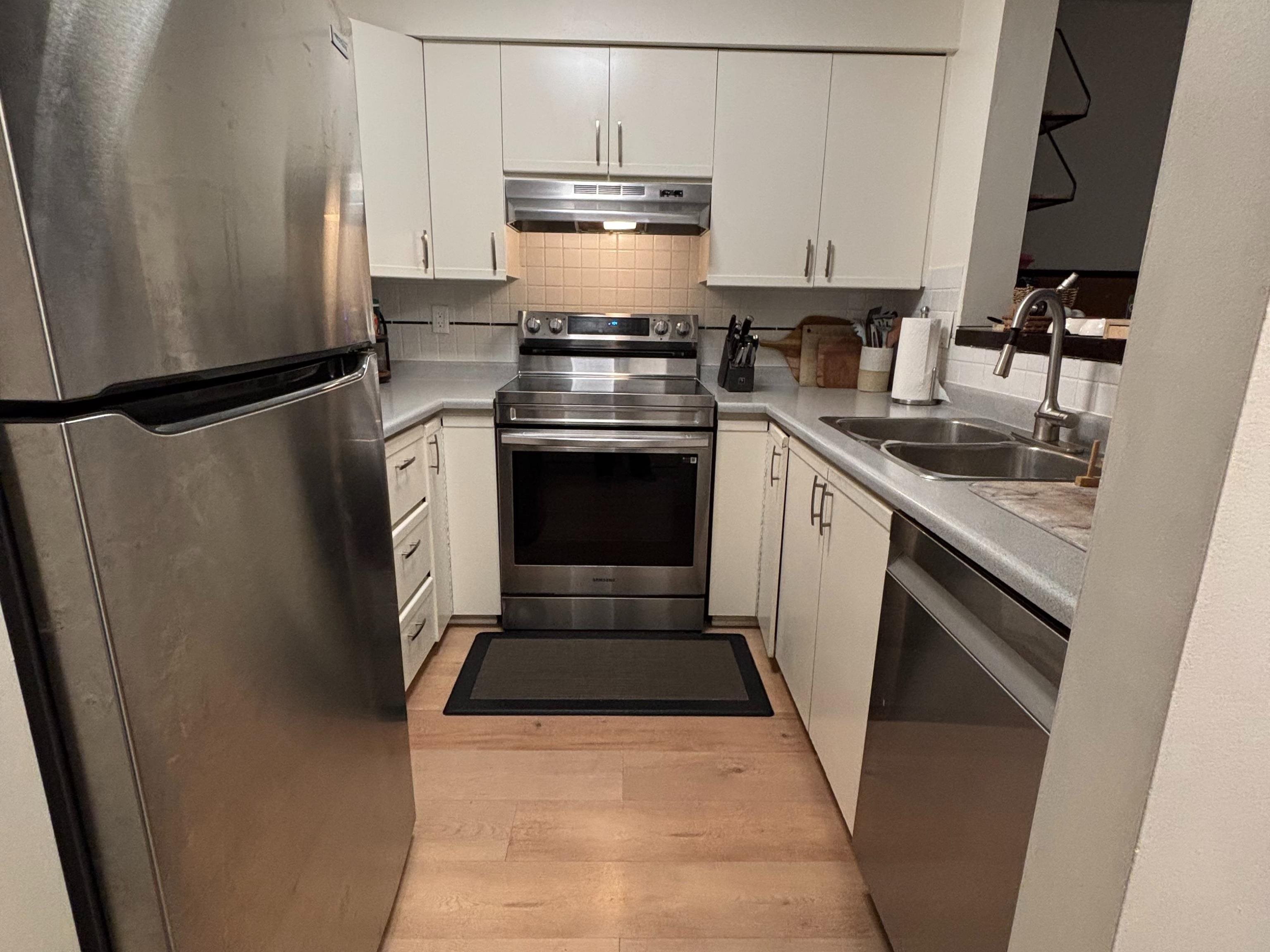 Quiet, ground-floor 1 bed condo in a well-maintained building. The oversized bedroom easily accommodates a king-size bed. A huge 300+ sqft private patio (can be used as a second entrance), backing onto the strata's landscaped garden & maple trees for privacy & shade. North-facing keeps the unit cool in the summer. Open-concept kitchen, living & dining area (dining space can be used as a home office). Fresh paint, stylish flooring, updated bathroom & appliances under 3 years old (microwave not included). Per...