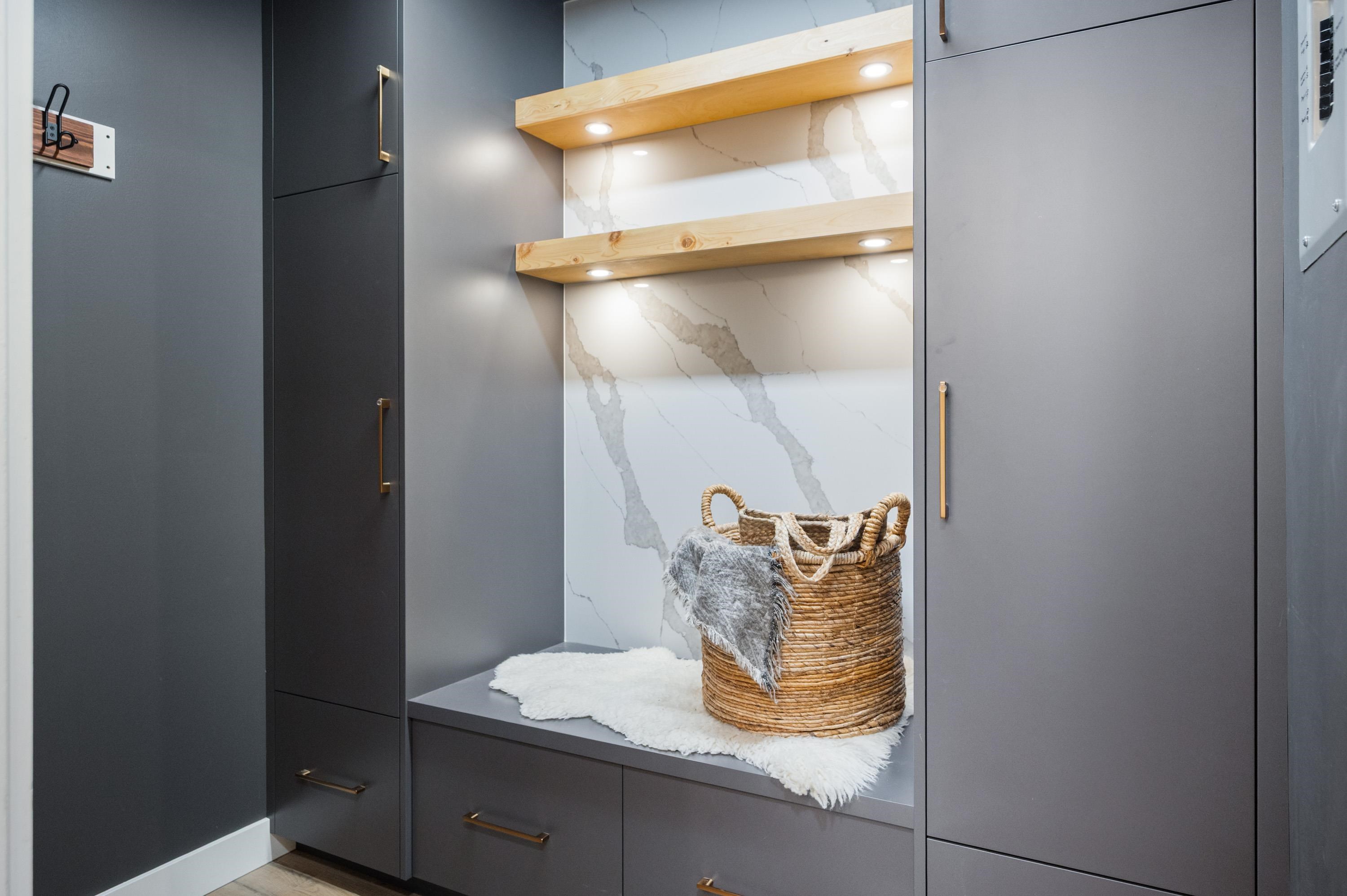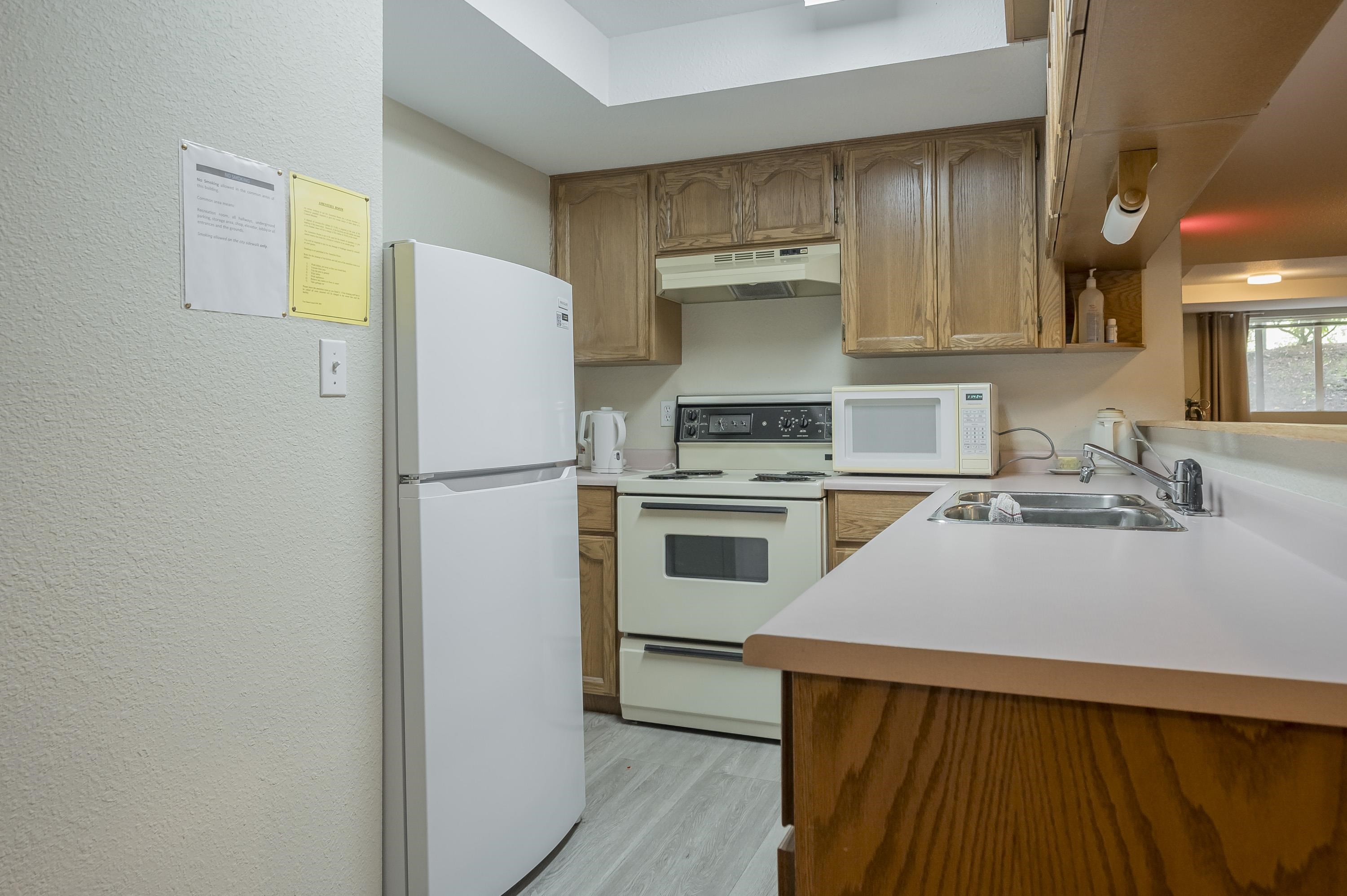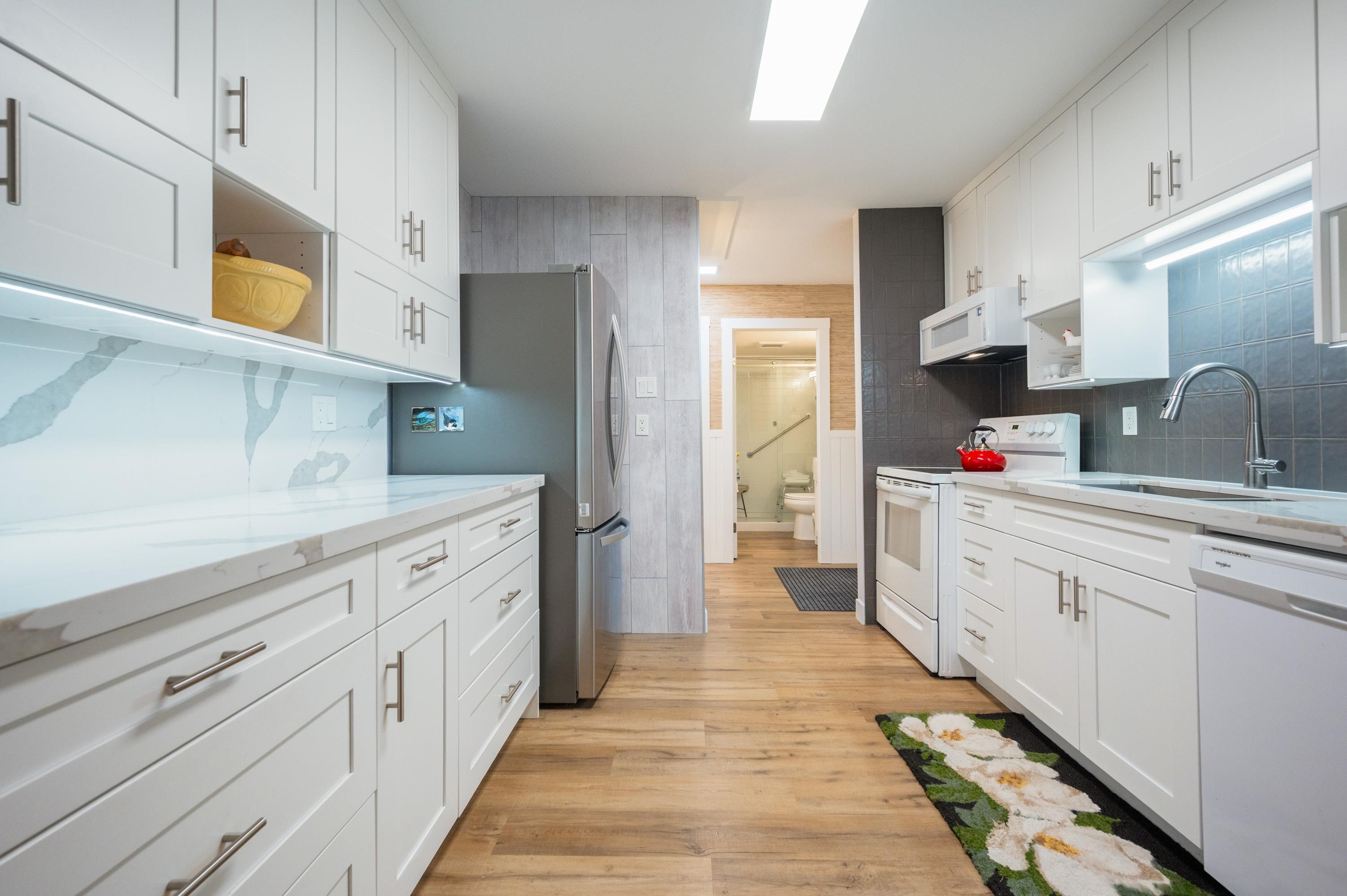 WELCOME HOME to this beautiful, professionally renovated unit in 55+ building. Stunning, personal touches to this 2 bed, 2 bath home make it unique and cozy! Kitchen reno includes carefully & mindfully designs including large, deep pull out drawers, upper cupboards lowered for easier access, storage/den with quartz feature wall & bench, large pull out drawers for storage; walk in shower with sliding glass door and multiple grab bars strategically mounted for safe maneuvering; side-by-side washer and dryer...