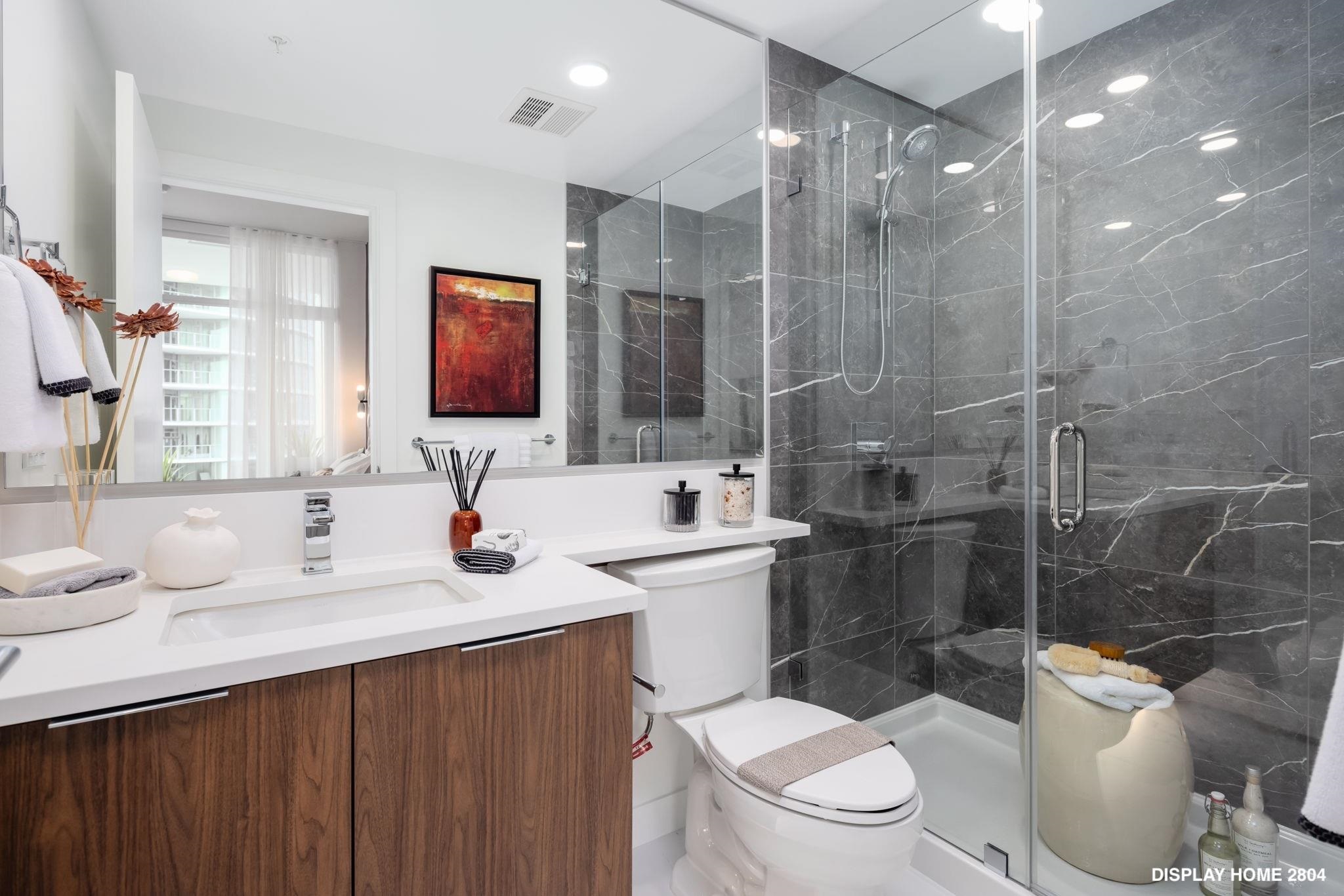 This garden-level corner home at Azure offers over 900 sq. ft. of well-planned living, highlighted by soaring 11-ft ceilings and a bright, vibrant colour scheme. The open layout features a thoughtfully designed kitchen with white cabinetry, full-size appliances, and elegant cabinets for added function. A spacious primary retreat includes a walk-in closet and double-sink vanity, and a den provides flexibility for a workspace or extra storage. The generous private patio is perfect for entertaining or a safe o...