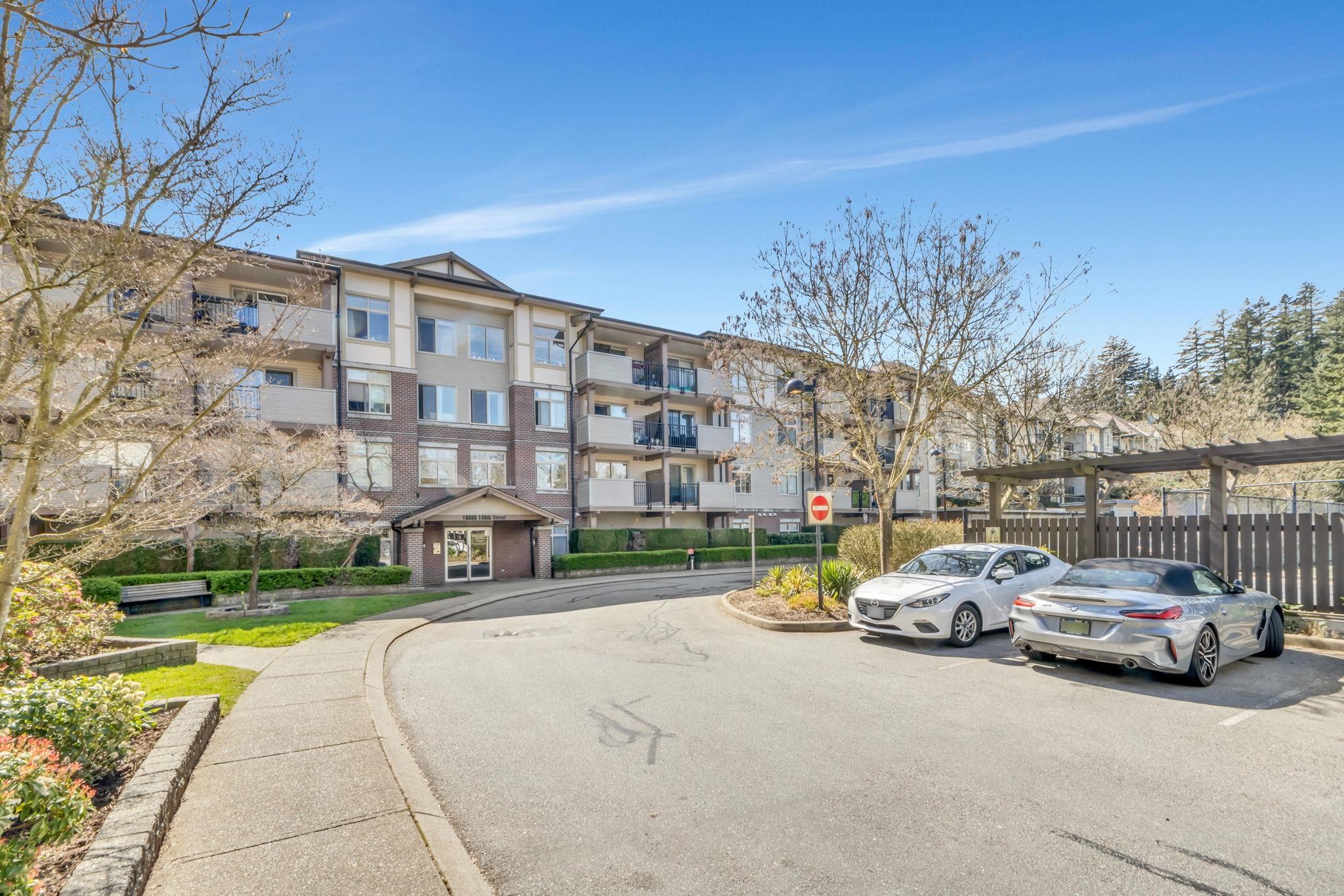 GROUNDFLOOR unit with 2 bedrooms + DEN and 2 full bath, perfect for a young family. 976 sq.feet of comfortable living space with high ceilings in Bloomsbury Court in the Guildford Park Place community with resort-style amenities. DEN can be used as a home office, and there is a large primary bedroom with an ensuite. Enjoy fantastic amenities, including a swimming pool, tennis court, a sauna, a clubhouse, and a full gym. This home is just minutes from Guildford Town Centre, Landmark Cinemas, Green Timbers U...