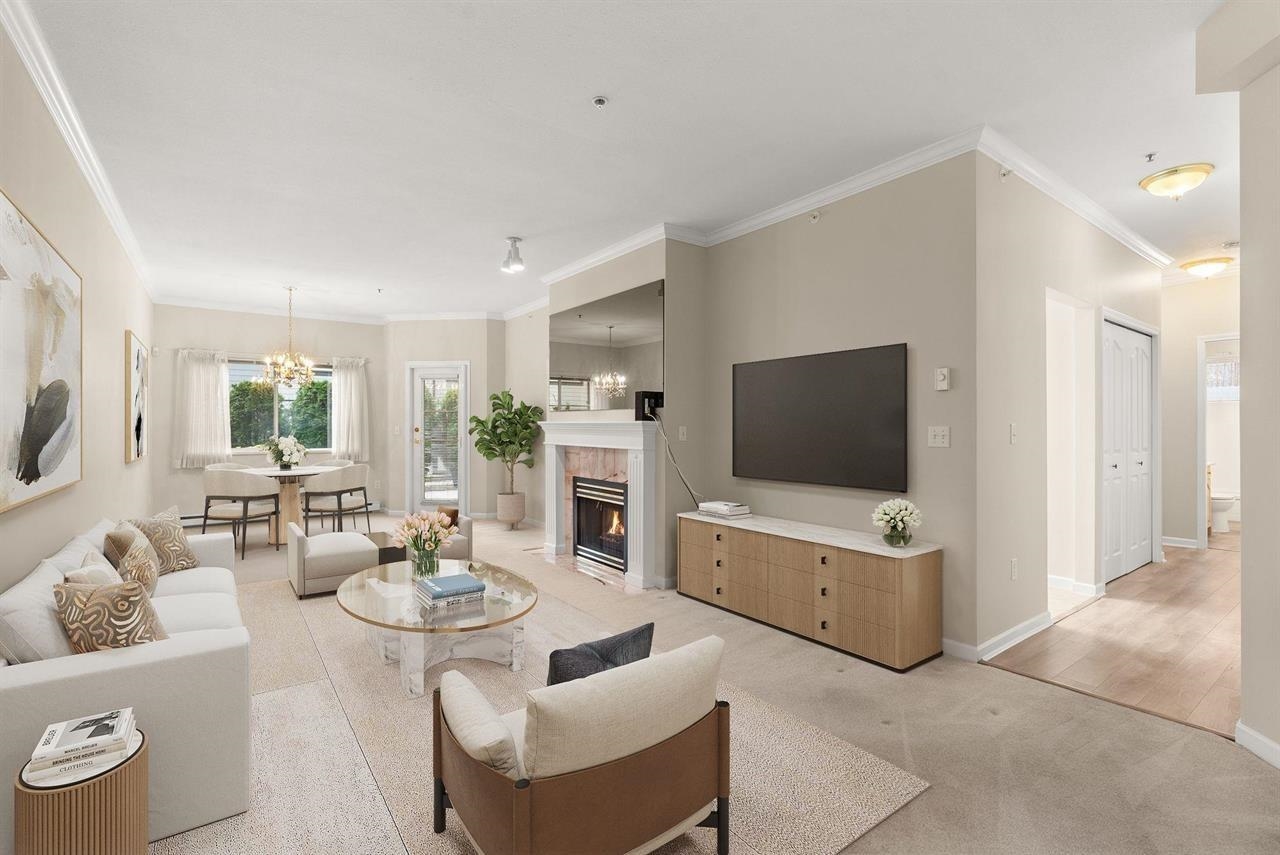 SOUTH-FACING 150 SQ FT PRIVATRE PATIO! This ground-floor condo offers rare rancher-style living with 3 spacious bedrooms plus a den, 2 full baths, and an expansive living and dining area that really fits full-size furnishings. Bright west-facing kitchen overlooks a sunny, private yard. Move-in ready and ideal for downsizers or those wanting space without compromise. Includes 2 side-by-side parking stalls (#44 & #45) and is pet-friendly. Prime location just minutes to town centre, Kinsmen Park, and amen...