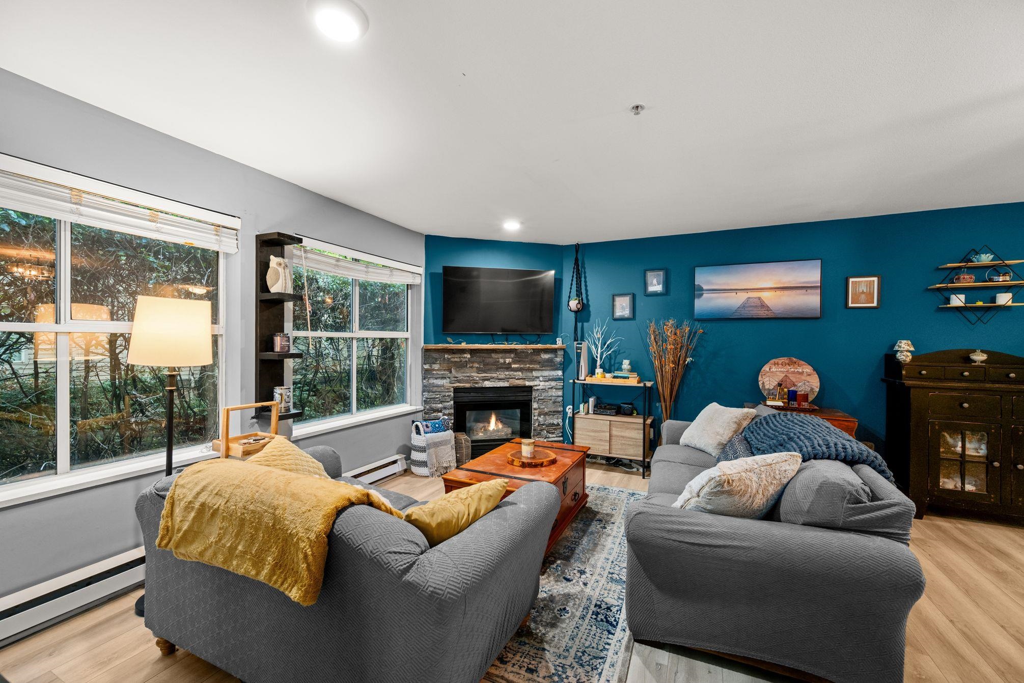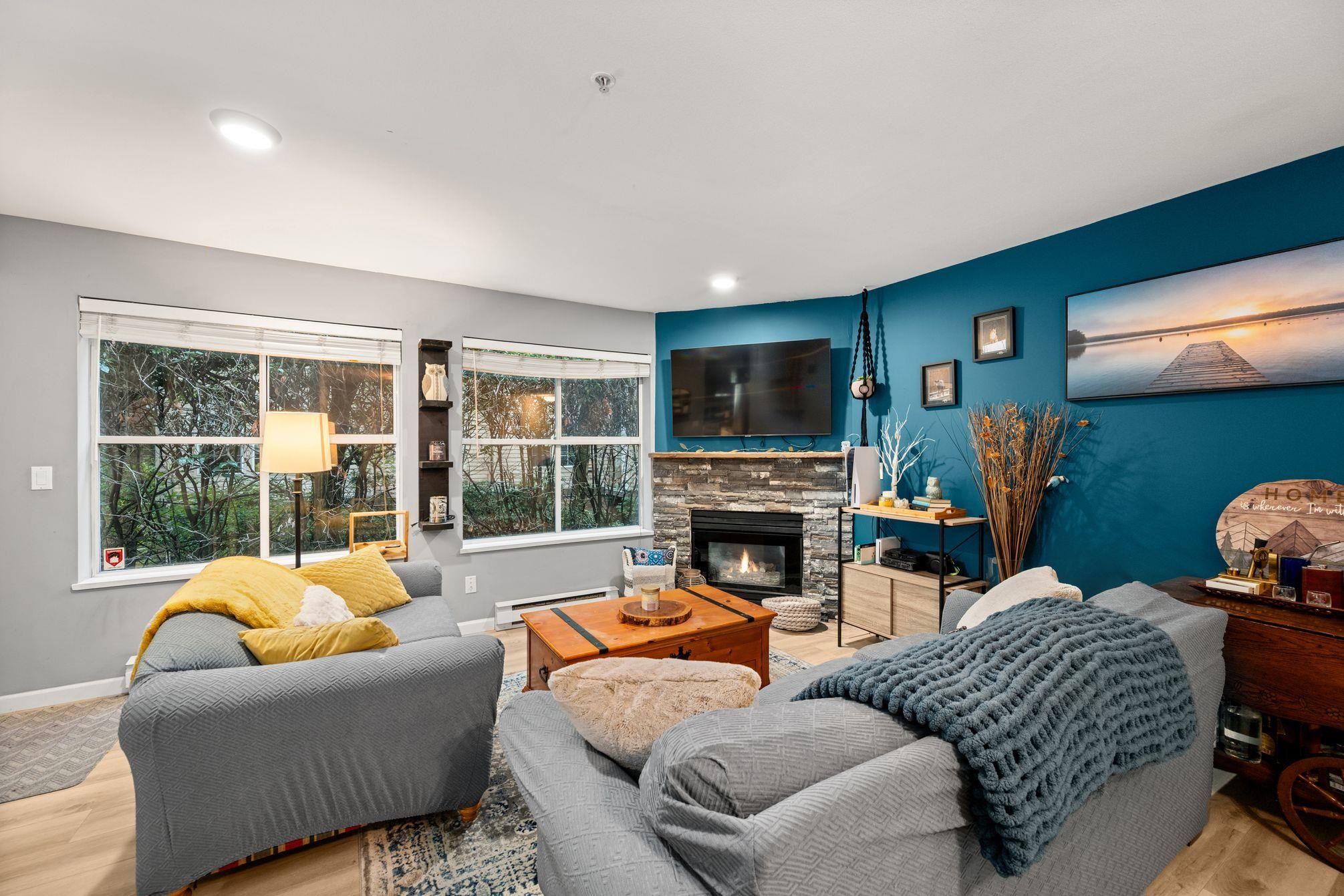 Welcome to Sunningdale! This beautifully updated 2 bed, 2 bath 1,036 sq ft CORNER UNIT is bright, stylish, and move-in ready. Filled with natural light, it features an ideal layout with separated bedrooms for added privacy, and a walk-in laundry/storage room. The sleek kitchen with granite counters and stainless steel appliances flows into a cozy living room with a gas fireplace, perfect for relaxing or entertaining. Thoughtful updates throughout, including flooring, paint, and beautifully refreshed bathroo...