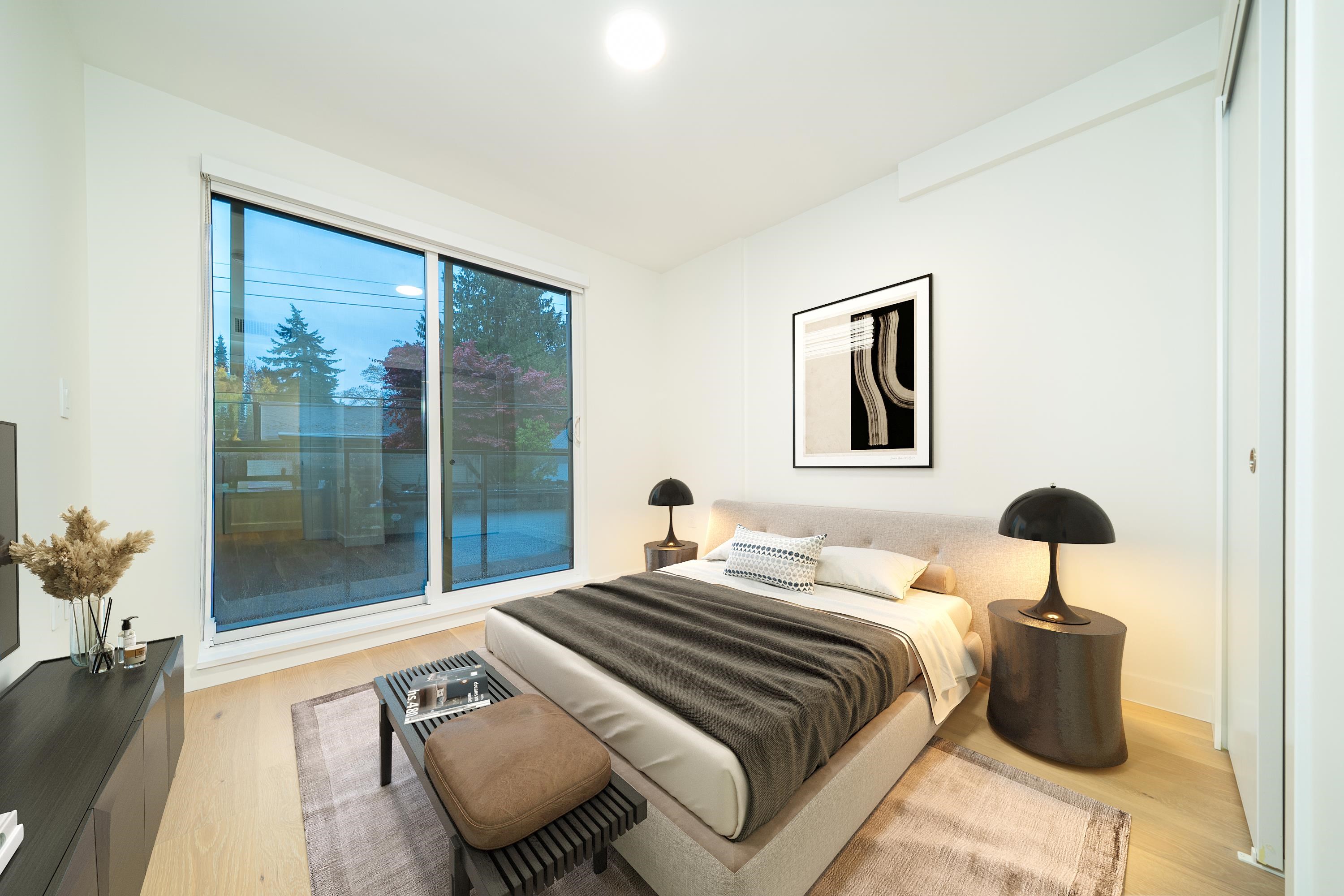 "Lina at QE Park" Located in Vancouver's popular Cambie Corridor, a 6-storey concrete building next to Queen Elizabeth Park. This 2bed l bath+Den+Flex unit features a spacious layout. Natural Oak hardwood flooring, Caeserstone kitchen countertops & backsplash, Miele appliances, contemporary walk-through shower with quartz linear drain, large niche & Hansgrohe brushed nickel shower outlet. Central air conditioning. Private resident's lounge with a spacious patio for entertaining & special functions. 2 Parkin...
