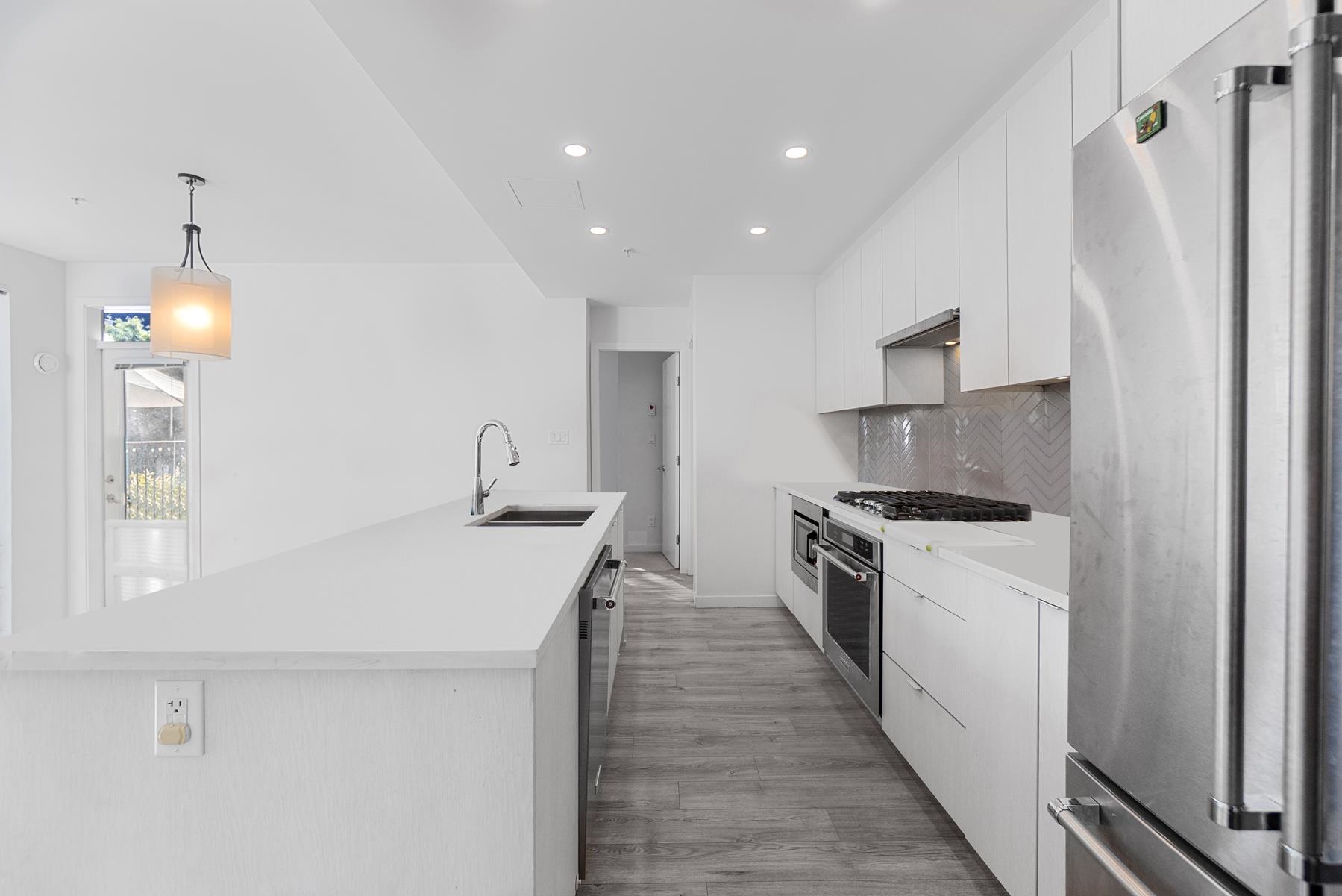 Experience modern living at SIMON by Otivo, a boutique residence in vibrant Burquitlam. This rare 3-bedroom, 2-bathroom ground-level home features 1,017sf of contemporary design with 9-ft ceilings, a bright open layout, and two large private patios 583sf for exceptional indoor-outdoor living. The kitchen showcases quartz countertops, stainless steel appliances, and a double-basin sink. The primary bedroom offers an ensuite and patio access, while two additional bedrooms provide comfort and flexibility. Enjo...