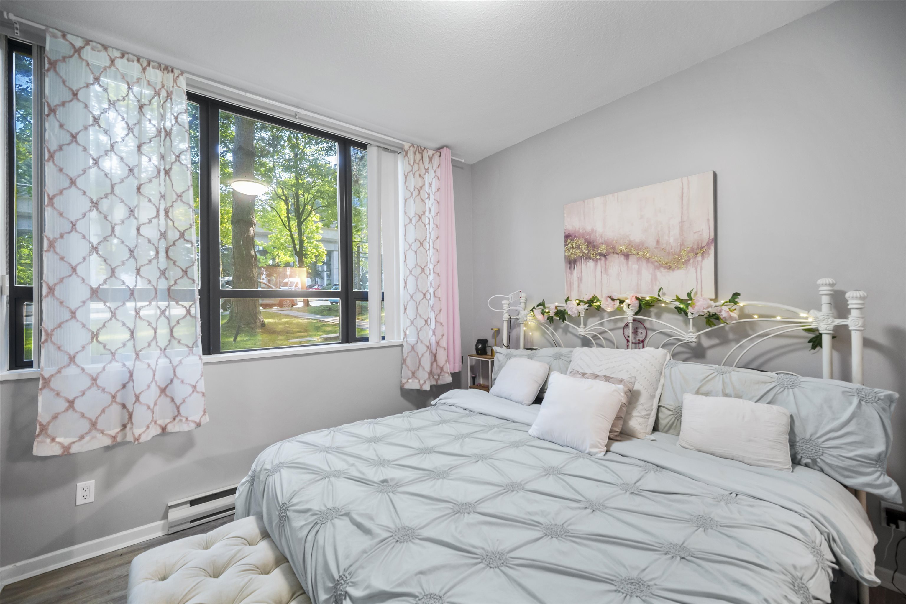 ONE OF A KIND recently updated and painted ground-floor corner 1 bed + den home in a solid concrete building. The spacious den is large enough to be used as a second bedroom or home office. Inside, you’ll find new flooring, updated kitchen cabinets, oversized in-suite storage, and a private walk-out patio perfect for entertaining or relaxing. Building amenities include a clubhouse, fitness centre, sauna and hot tub. All in a super convenient location just steps to Gateway SkyTrain, shopping and Whalley Athl...