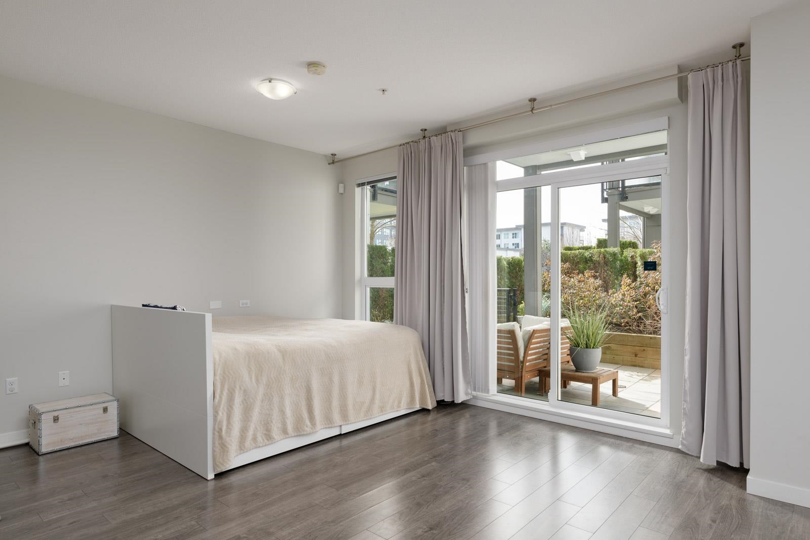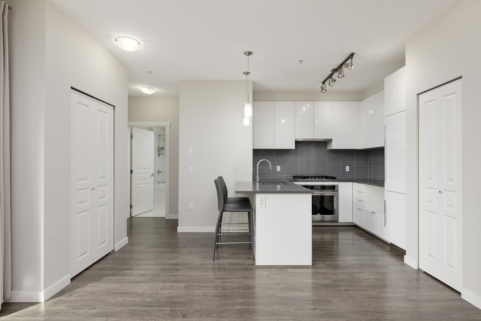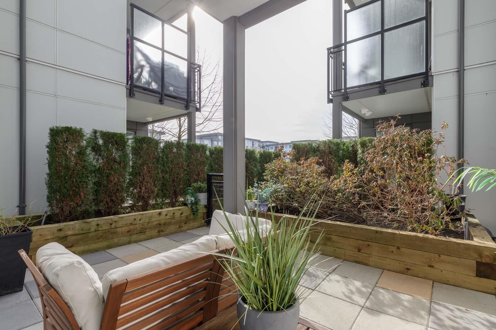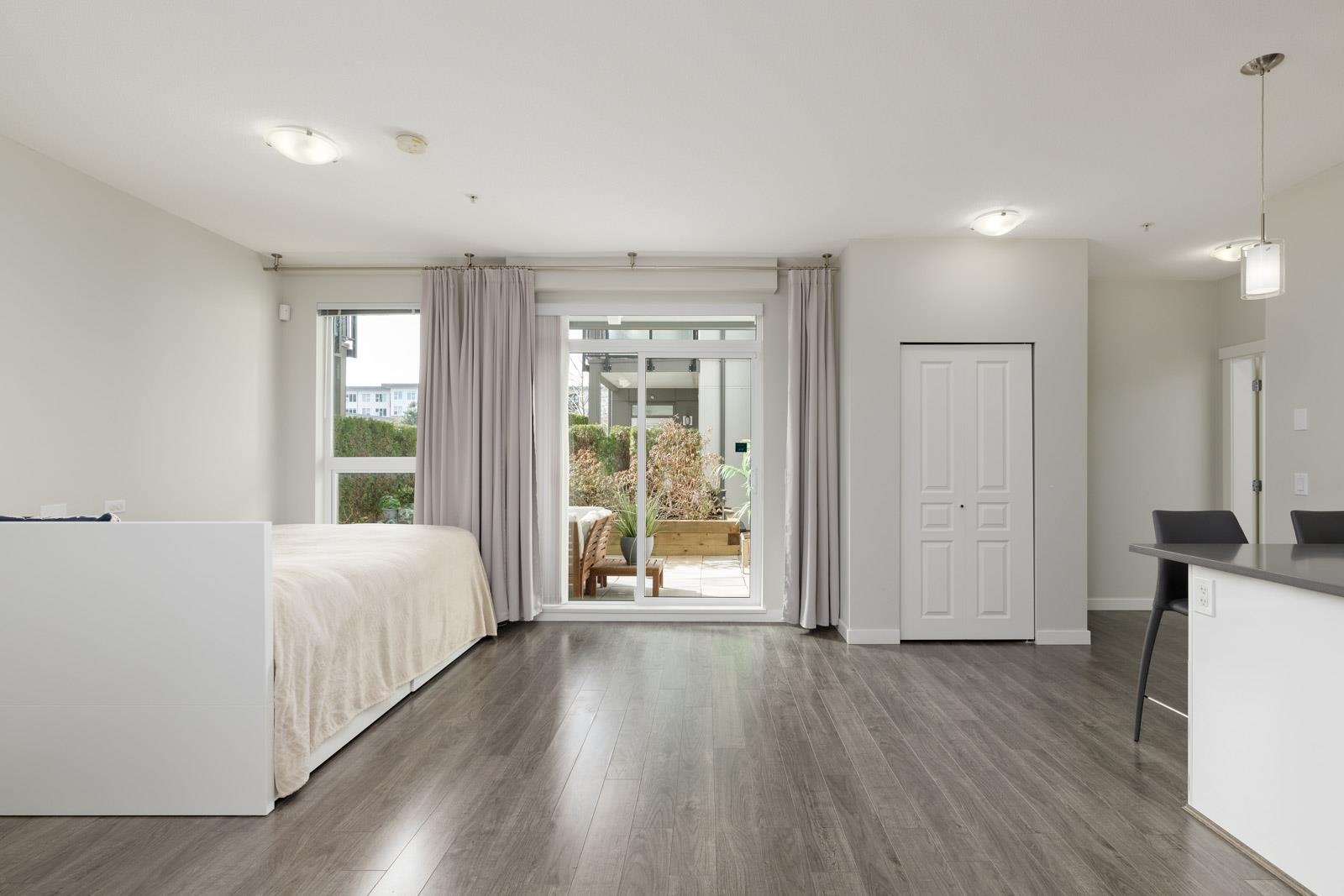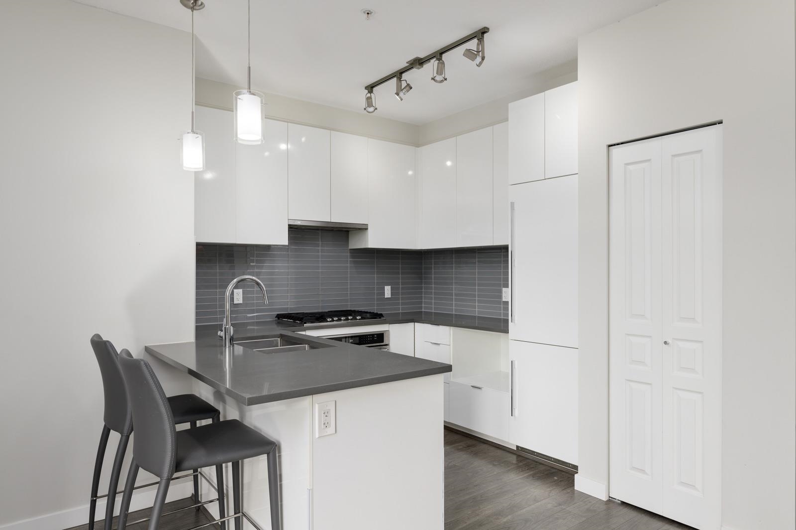 Welcome home to Alexandra Court, located in the highly sought-after Central Richmond area. This open-concept condo features high ceilings and floor-to-ceiling windows that fill the space with natural light. The gourmet kitchen features custom cabinetry with soft-close, integrated Kitchen-Aid appliances, including a gas range, and engineered stone countertops. The living area opens out onto a spacious ground-floor patio overlooking the community gardens, perfect for relaxing or extending your living space ou...