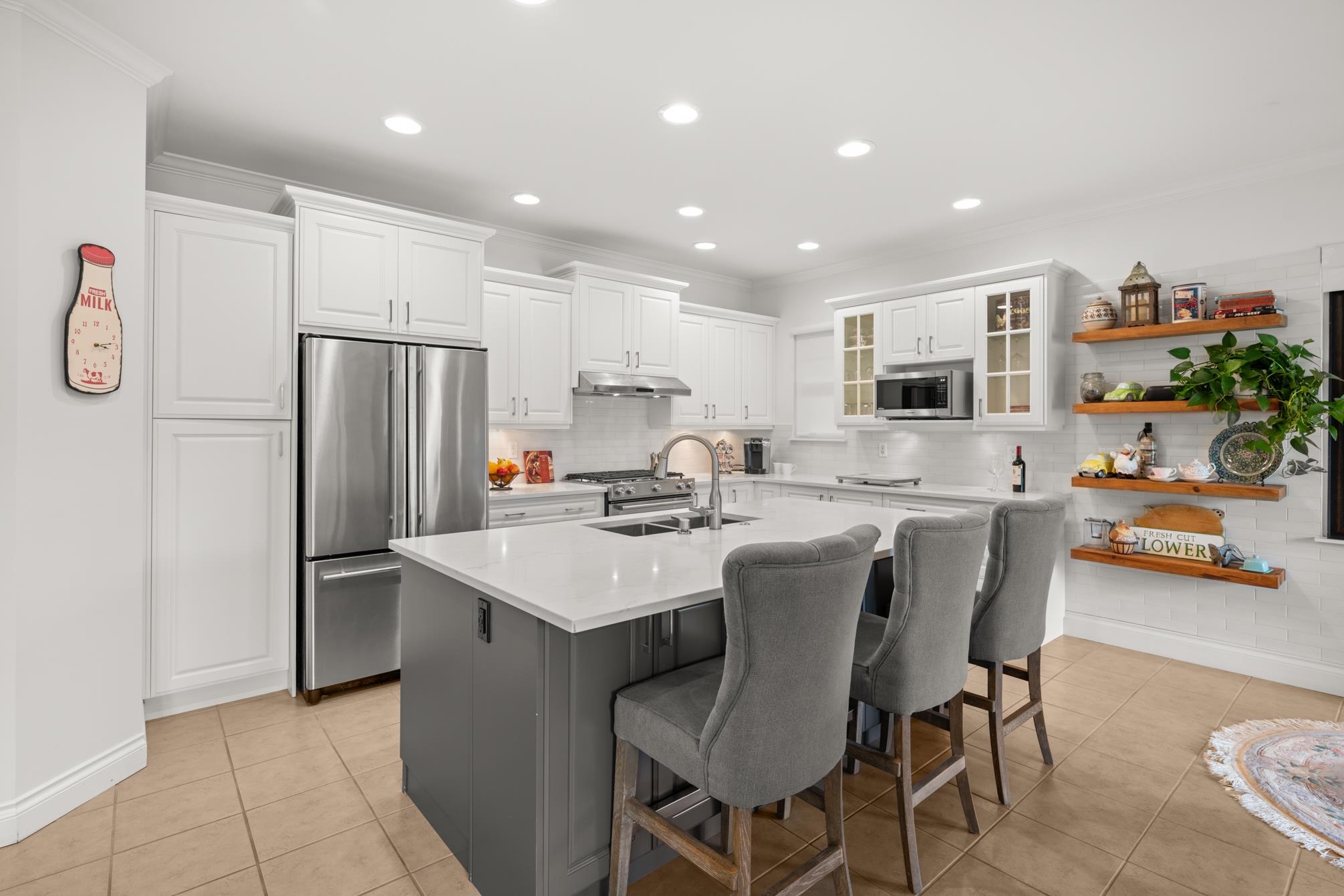 Welcome to Carriage Green, a prestigious gated community in the heart of Morgan Creek. Backing onto the 11th green, you will be taken in by the beauty inside & out of this recently updated home, just under 4000 sq ft with 4 bdrms & 4 baths. Soaring ceilings & an open floorplan is an entertainer's dream. Walk out to the peaceful backyard to enjoy the golf course views. Newer appliances, updated cabinets & large island grace this gorgeous kitchen. New carpet in 2025. The upper level has 3 bdrms, including a l...
