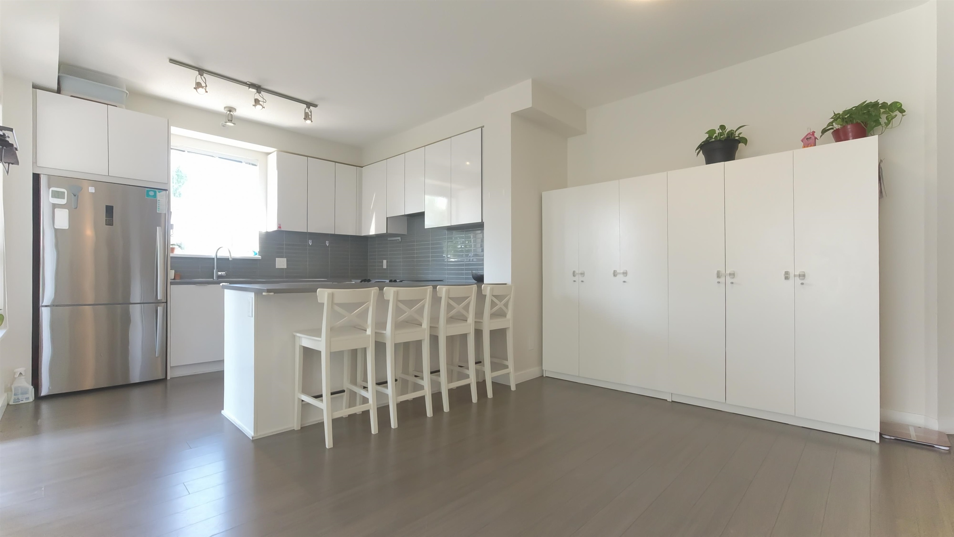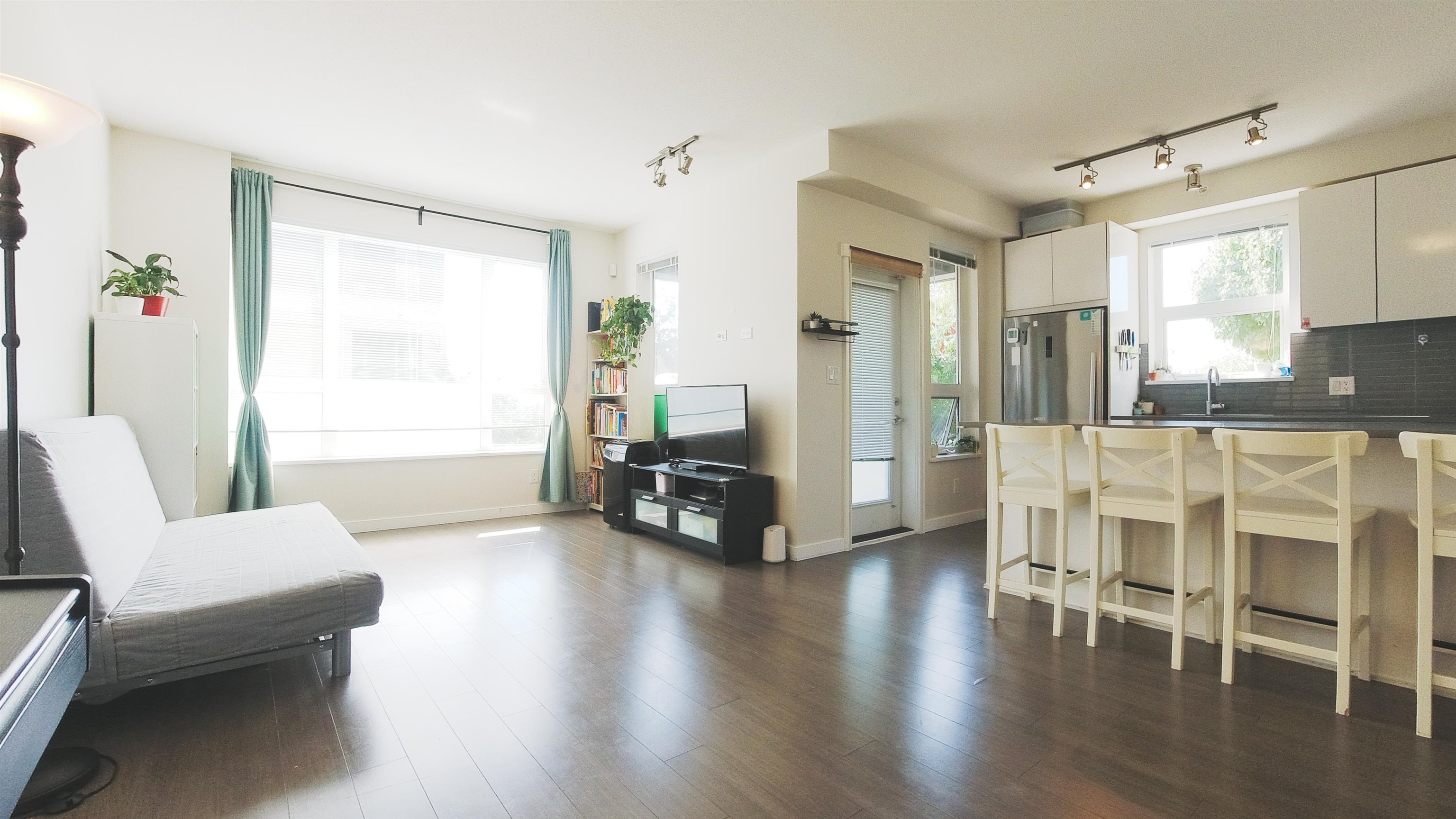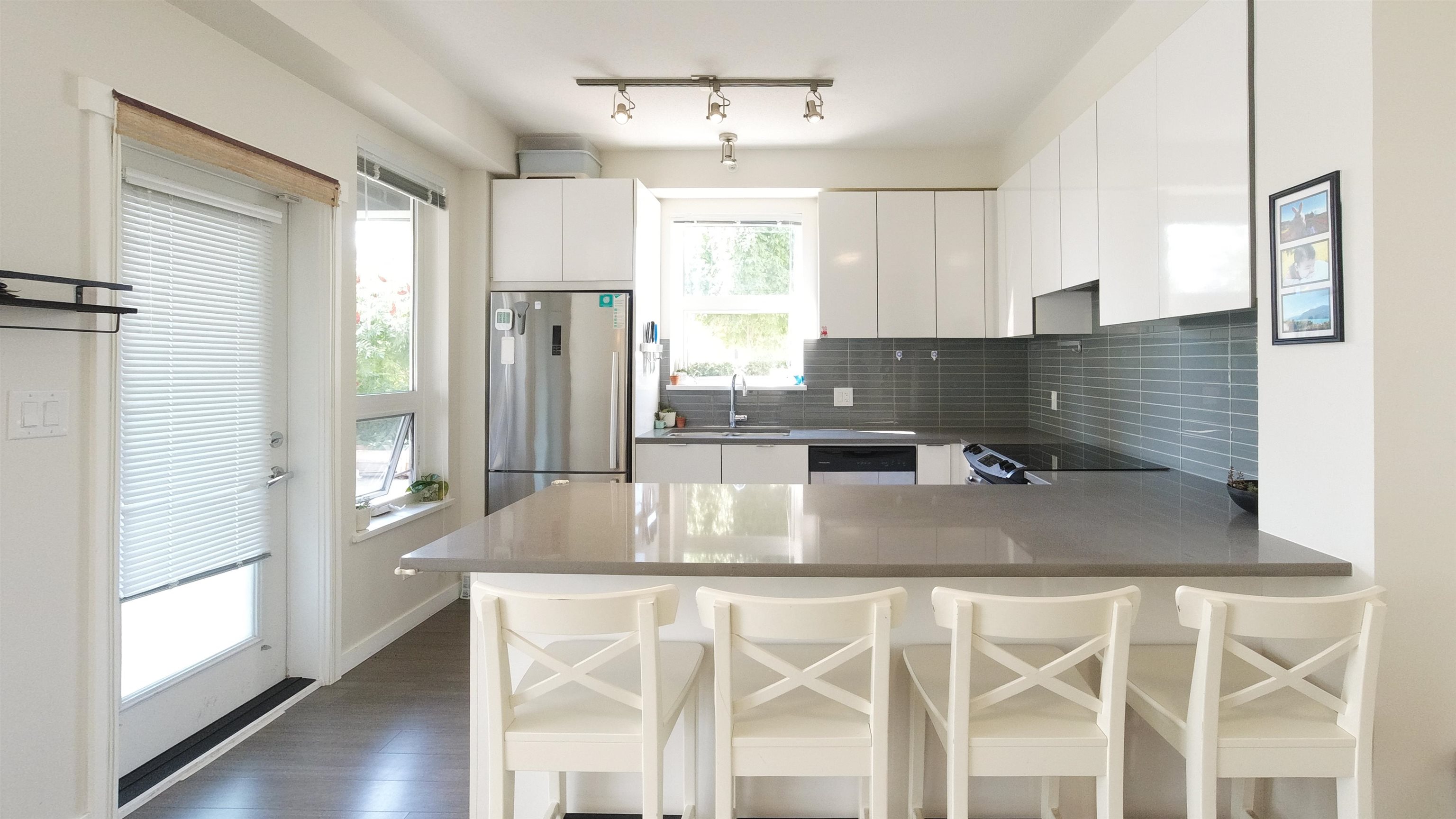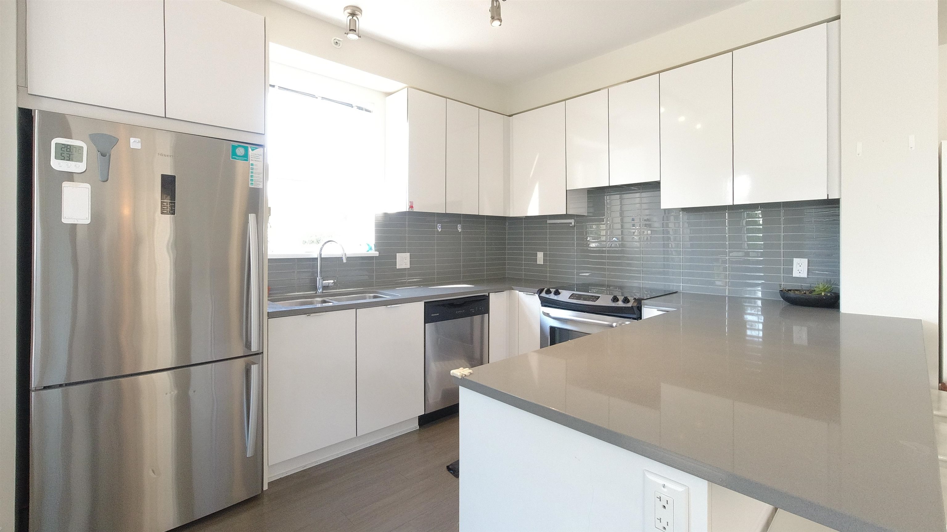 VERITAS BY POLYGON! Rare chance to own this 2bed2bath CORNER unit w GATED PRIVATE HUGE YARD(230sqft)!RADIANT FLOOR HEATING,CONCRETE GROUND, SEPERATED 2 BEDRM,9 ft ceilings, spa-inspired bathrooms with engineered stone countertops. Warm laminate wood flooring throughout kitchen, living and dining, kitchen fit for a chef w added breakfast bar, huge dining area & open living room area. S/S appliances and full-sized stackable washer and dryer. Steps to SFU, Daycare, elementary school, transit, Nesters Market, S...