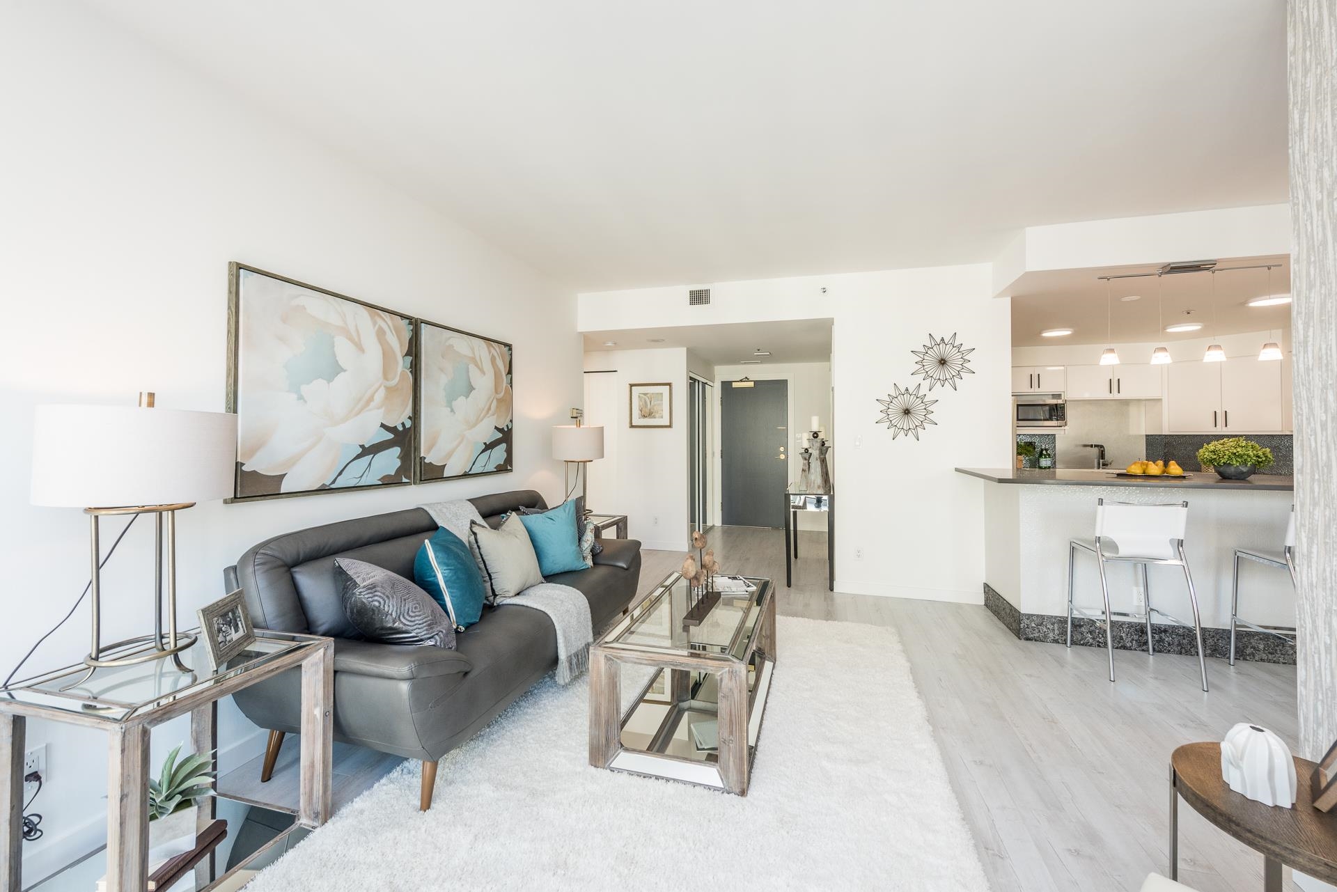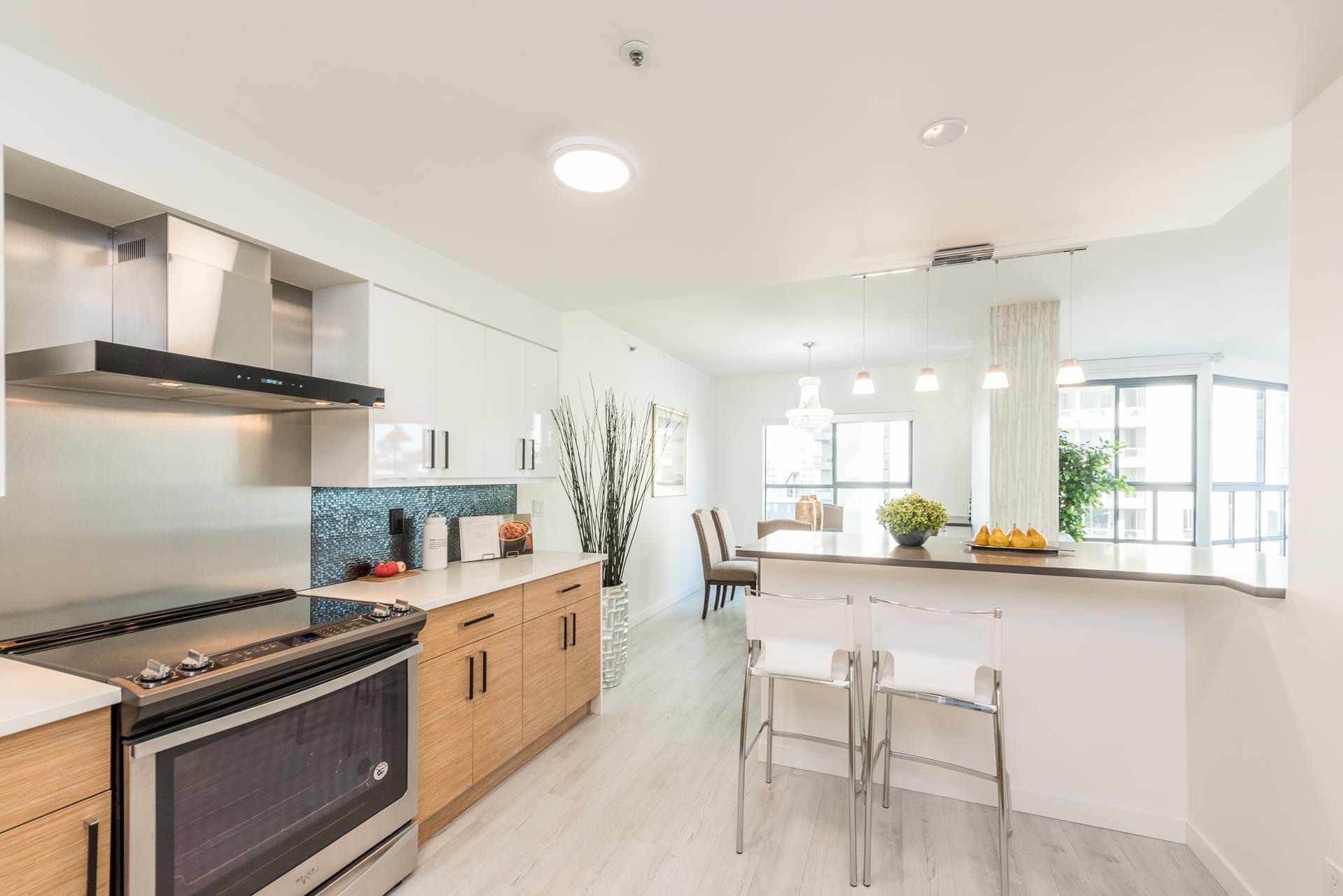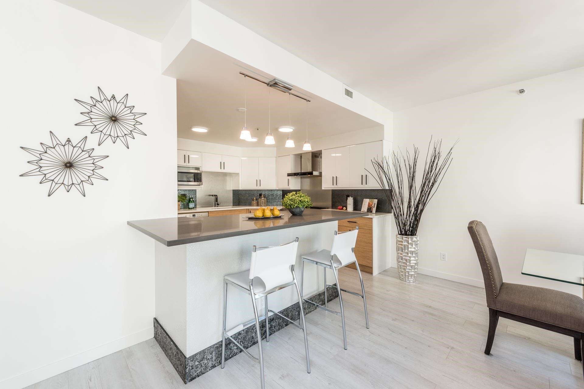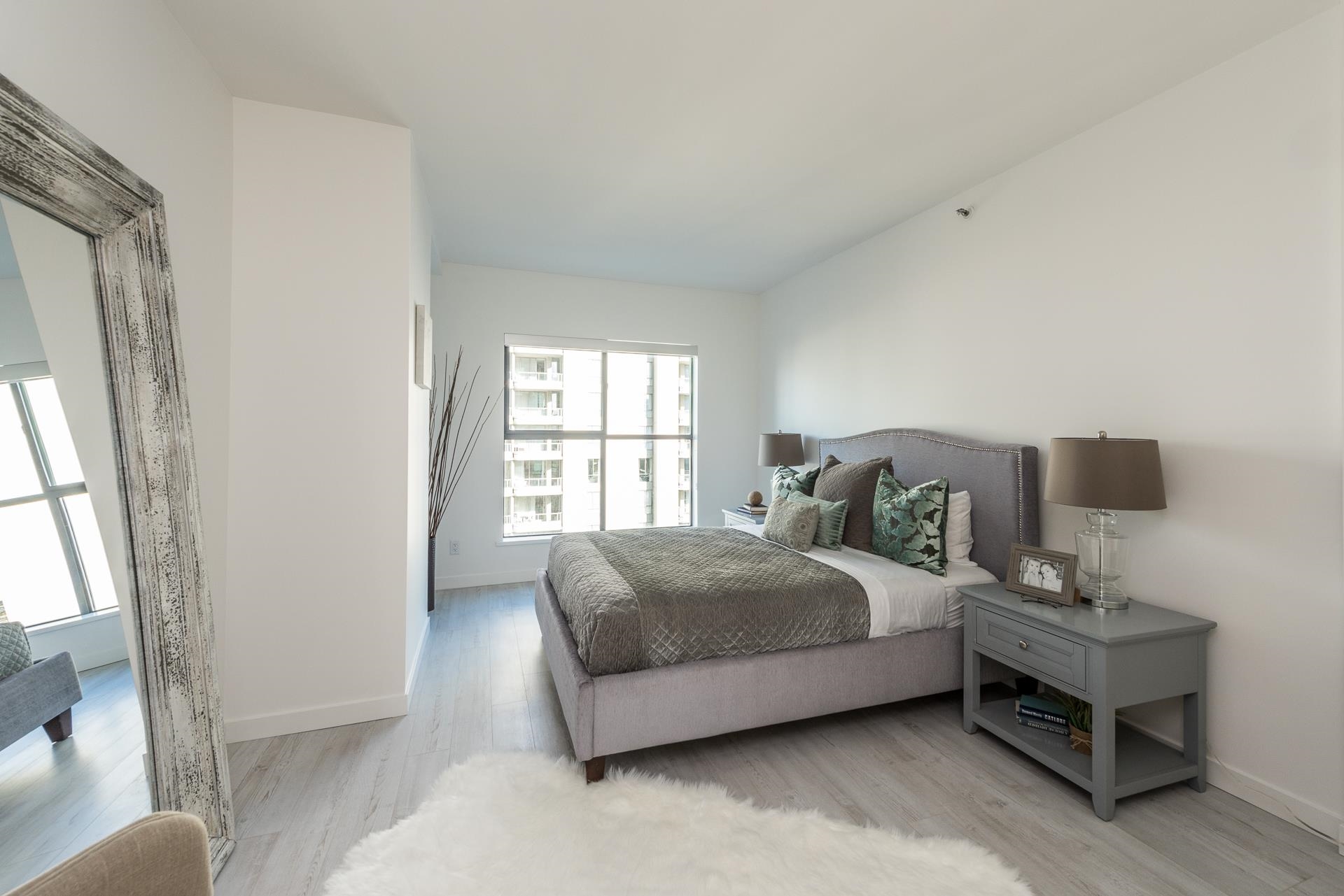 Welcome to this beautifully renovated home at Vancouver Tower in the heart of downtown Vancouver. This bright 1,270 sq.ft. residence features a spacious open-concept layout with two bedrooms, two full bathrooms, and a versatile den—perfect for a home office or extra storage. The unit is tastefully updated with laminate flooring, LED lighting, quartz countertops, and a built-in bar with a bar fridge. Large windows bring in abundant natural light and offer stunning city views, while air conditioning ensures y...
