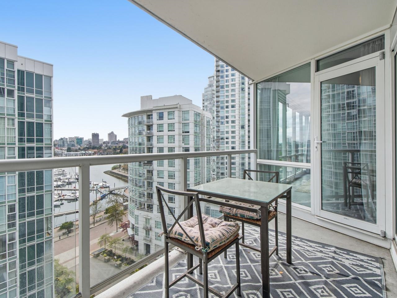 Fully furnished 2 bed + den, 2 bath waterfront residence at Marinaside in the heart of Yaletown. This bright 1,050 sq ft home features an open-concept layout, large windows, and a private balcony with marina and city views. The gourmet kitchen offers a full appliance package and the suite includes in-suite laundry, portable A/C, and one secure underground parking stall. Well-maintained building with concierge, indoor pool, and fitness centre. Just steps to the Seawall, Urban Fare, SkyTrain, cafés, and Yalet...