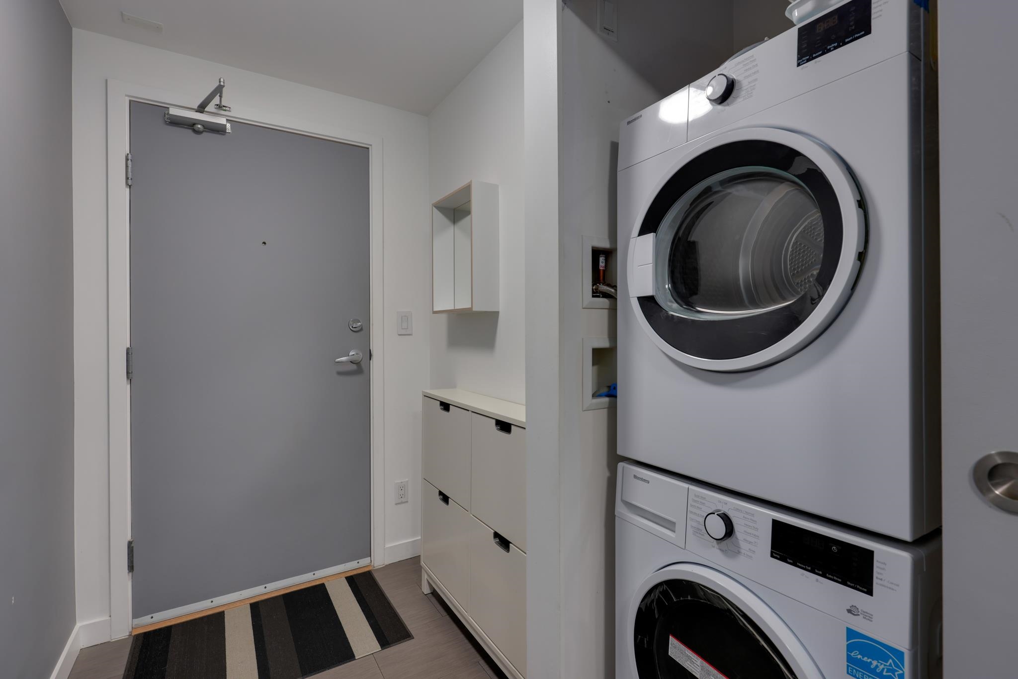 Welcome to 66 West Cordova by Westbank, a boutique, worry-free concrete building in the heart of Gastown. This bright 2-bedroom, 2-bath corner home features a stunning custom kitchen renovation with premium upgrades throughout. Enjoy SE-facing floor-to-ceiling windows, abundant natural light, and cityscape views from your wrap-around covered balcony. Strata fees include heat and hot water, with easy in-suite laundry hookup and rental parking available. The building offers a rooftop patio with panoramic wate...