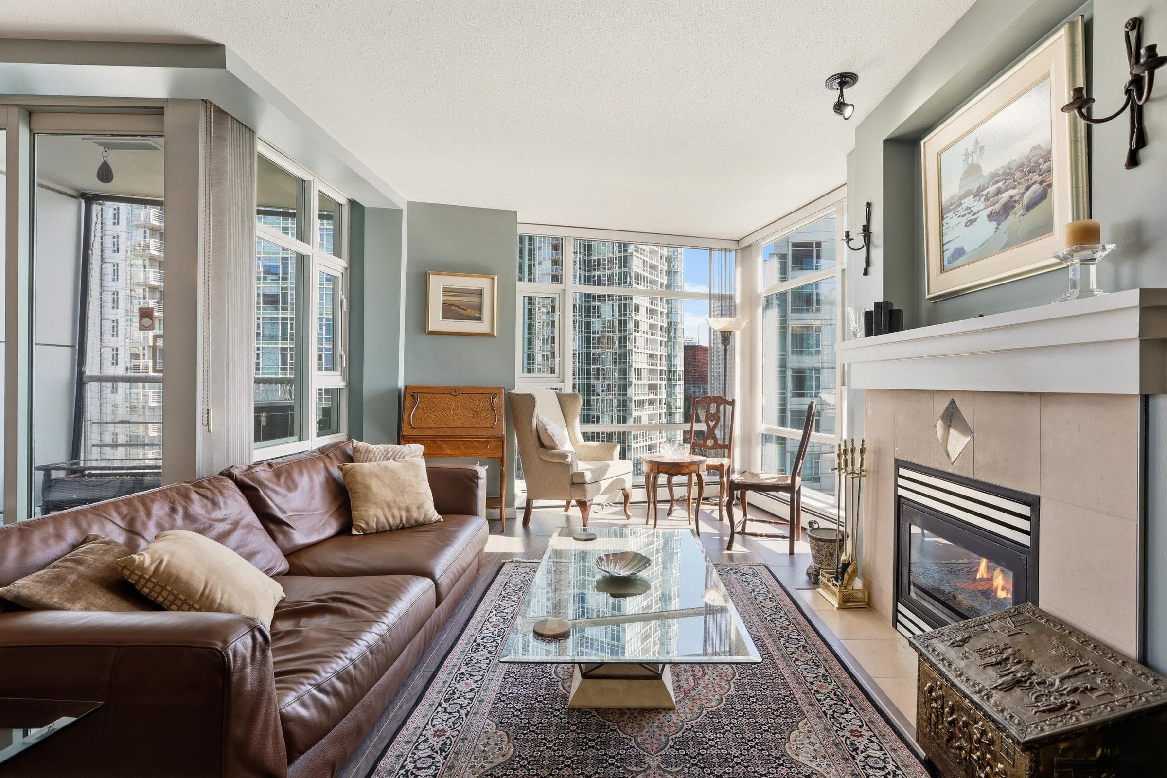 Amazing Opportunity! Prestigious Aquarius 1 in Yaletown! Open plan w/panoramic views of False Creek, Marina, city & inner courtyard! Lovingly maintained by current owner w/added bonus of Mitsubishi Air Conditioning by Ashton in living rm & primary bedroom, updated lighting, marble bathrm flr & fixtures! Quality renos in 2016 by previous owner, kitchen cabs, S/S appls, gas range, updated baths, laminate & tile flrs. Building upgrades include lobby, common hall carpets & decor. Resort-style spa amenities, sal...