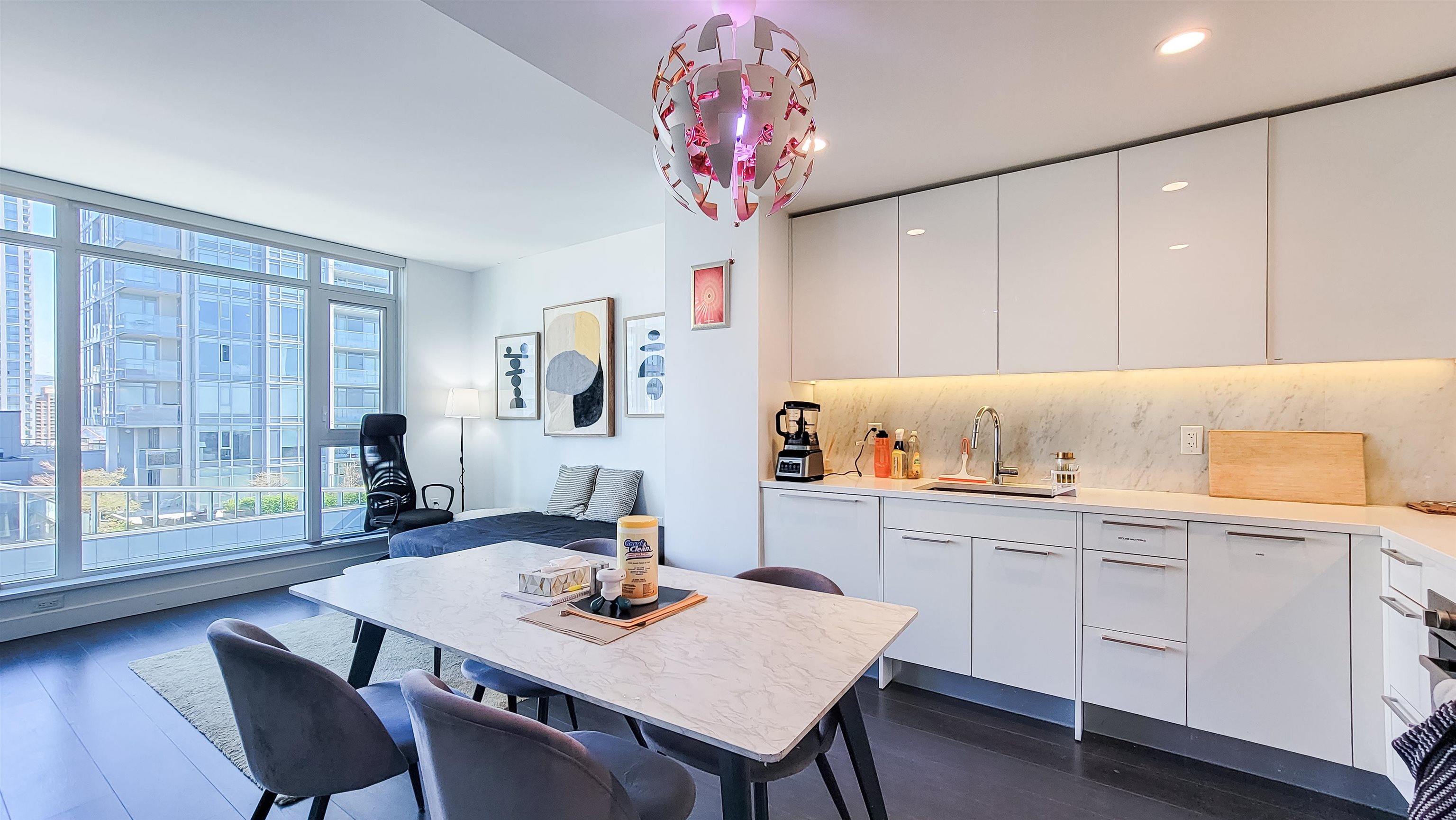 Experience ultimate urban convenience at Sun Tower 2. This bright 1 bed + den features an efficient layout with a full-size kitchen fitted with Bosch appliances, a generous living area, and a versatile den ideal for work or storage. Just a short walk to Metrotown Station, Metropolis, and Crystal Mall, yet tucked away for added peace and privacy. Enjoy access to the Solaris Club with an indoor pool, badminton court, golf simulator, sauna, hot tub, study room, music room and more. This is the perfect blend of...