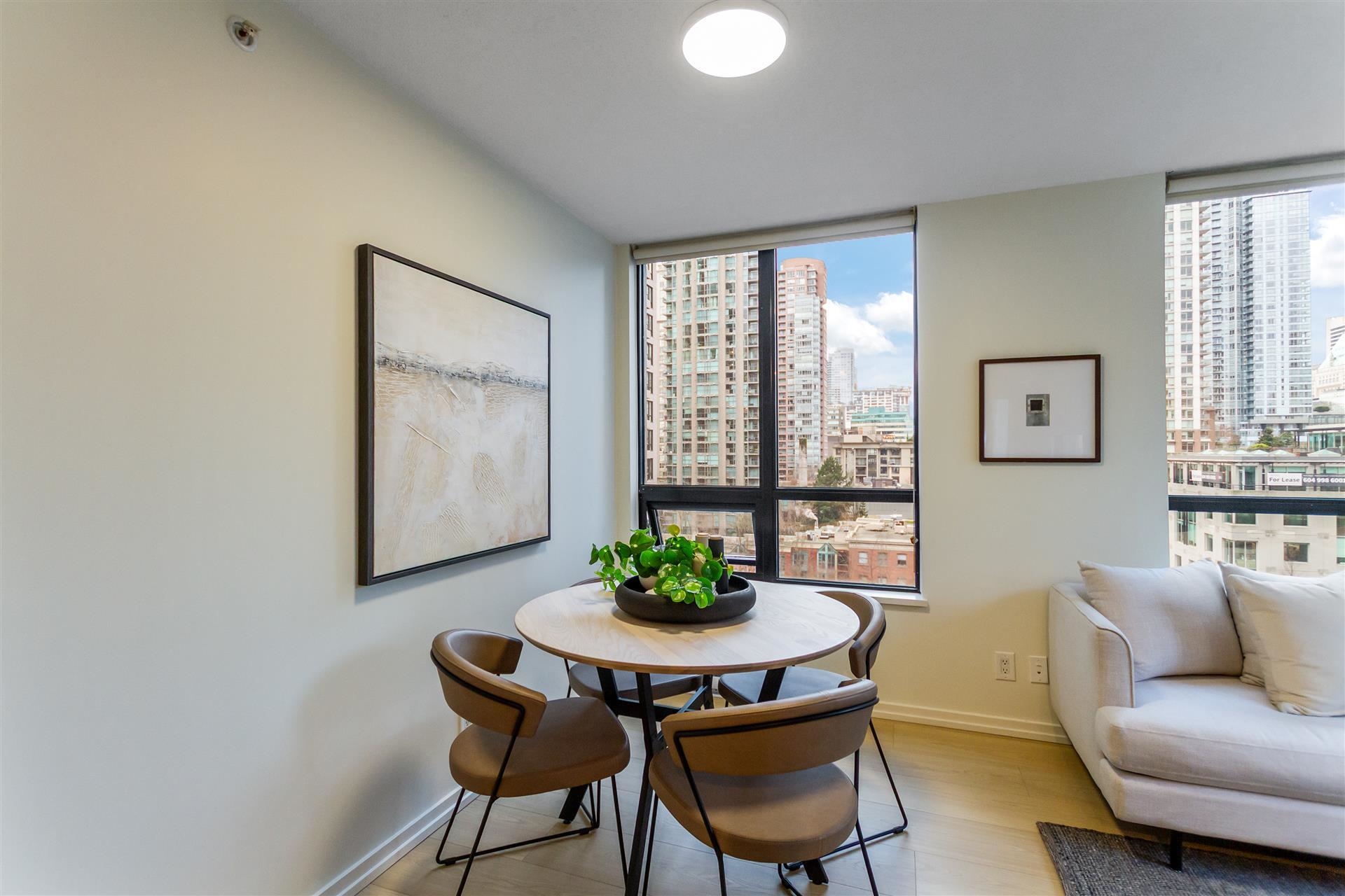 Welcome to this well-designed 1 bedroom + den residence in the heart of Yaletown,offering an ideal blend of functionality,comfort, and urban convenience.Located on a higher floor,this home features a smart, efficient layout with excellent separation between living and sleeping areas. The open-concept living and dining space is filled with natural light and flows seamlessly to a modern kitchen equipped with BRAND NEW APPLIANCES,ample cabinetry and stone countertops.The den is a versatile space,ideal for a ho...