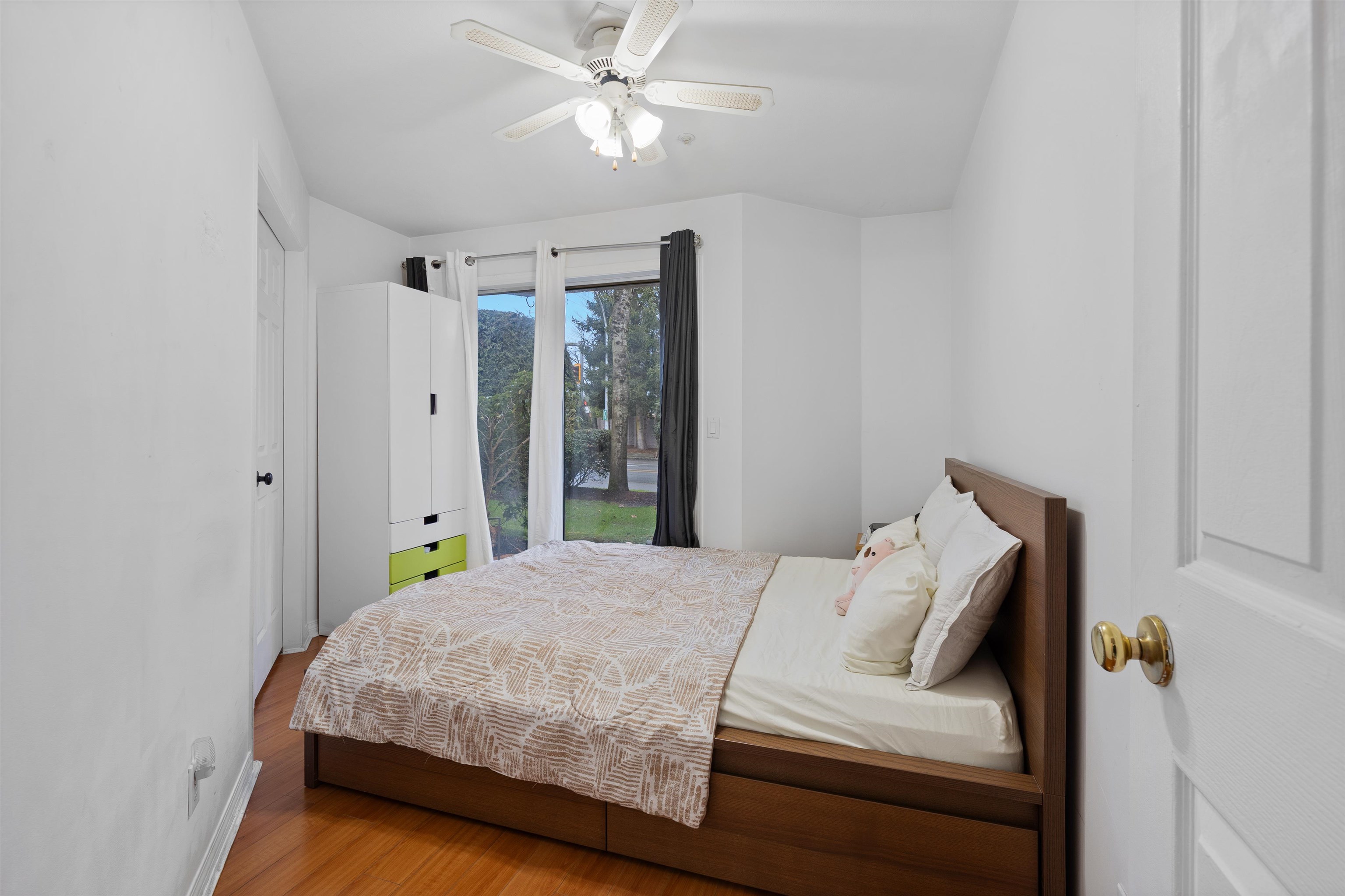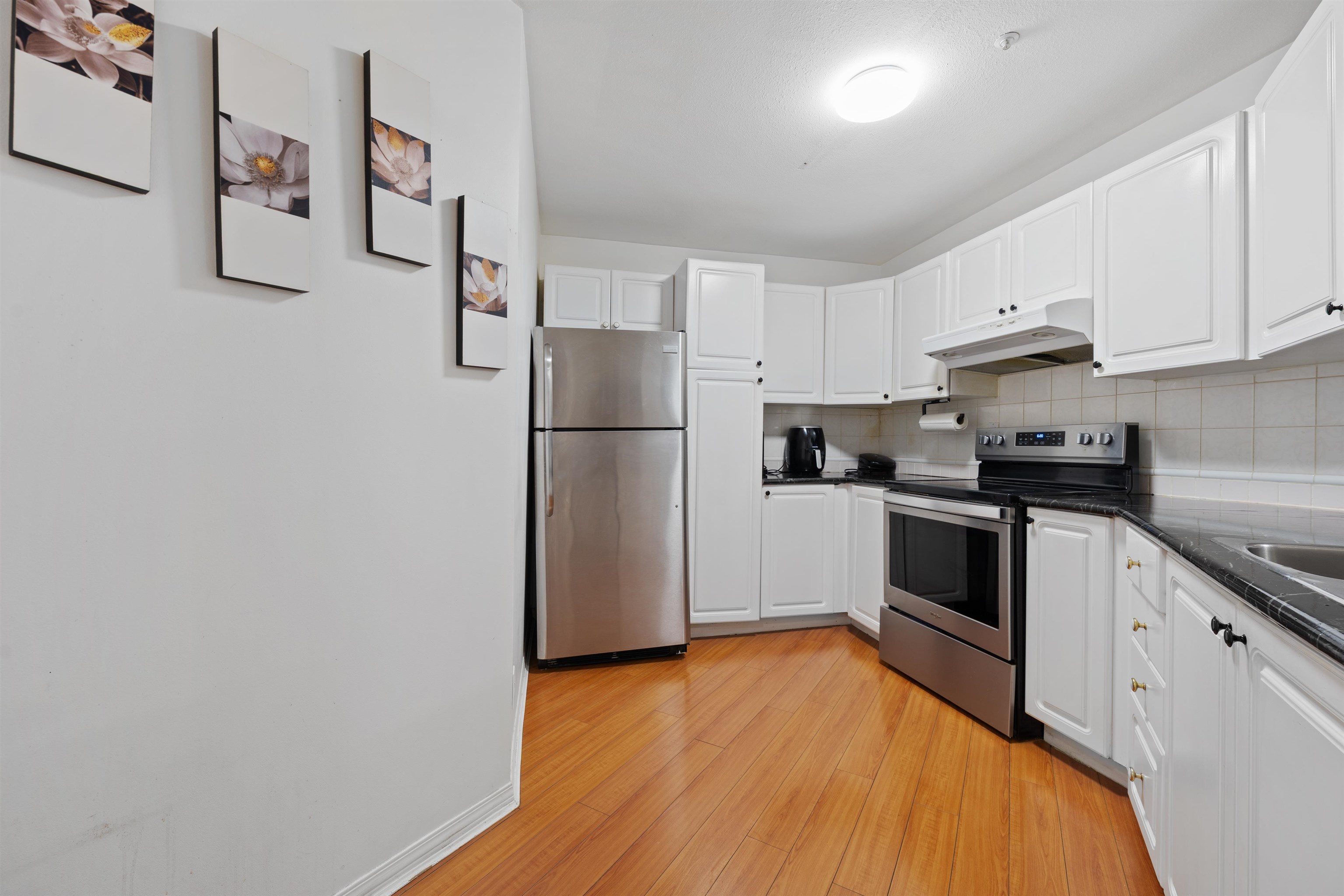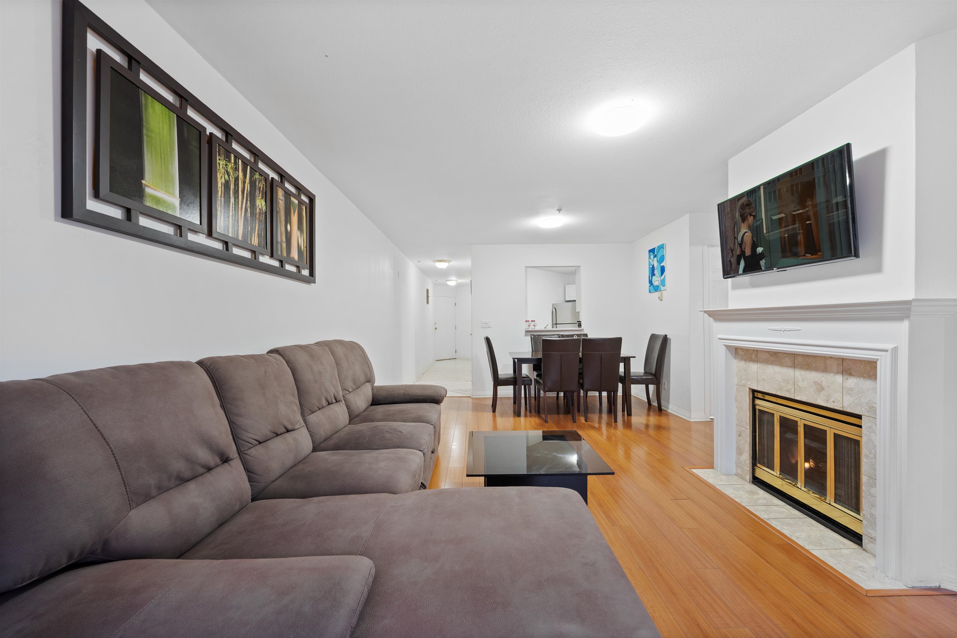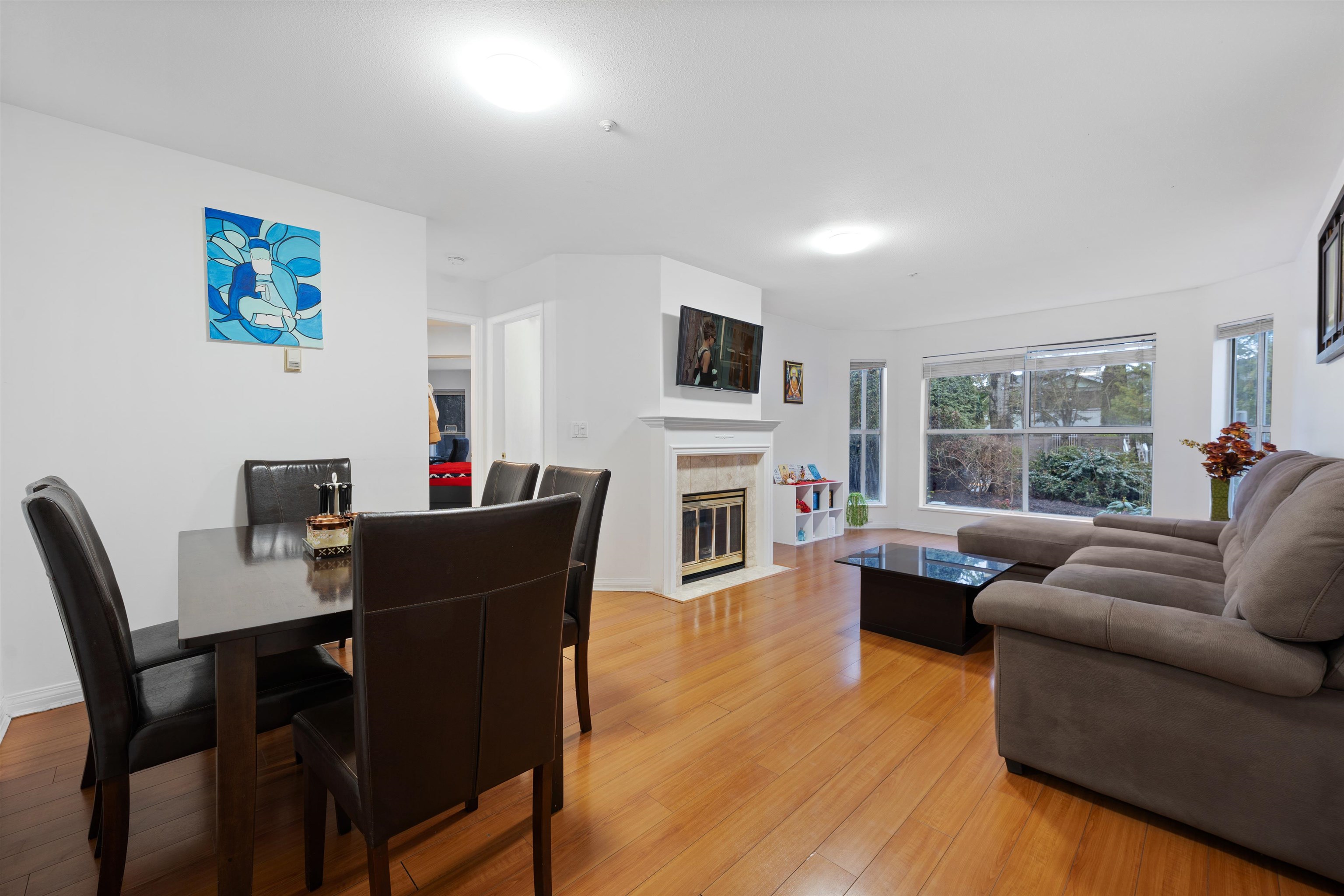 Beautiful and spacious ground-level corner condo offering 2 bedrooms and approximately 1,000 sq. ft. of living space. This home features a bright living room with a natural gas fireplace and comfortable radiant heating. The unit includes a functional kitchen, dining area, in-suite laundry, and a private patio to enjoy outdoor space. One covered underground parking stall and a storage locker are included. The building offers great amenities such as an elevator and garden area. Conveniently located in a centr...