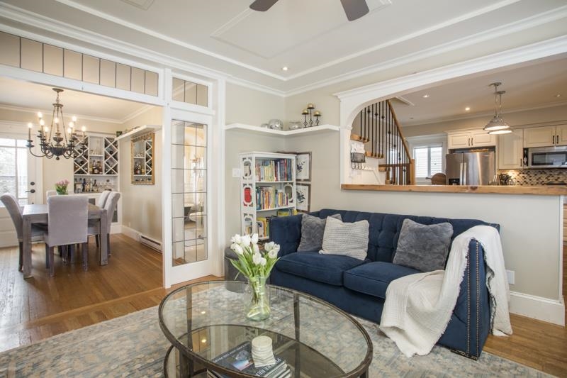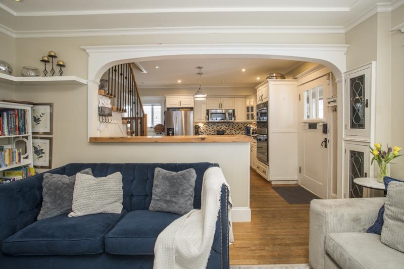 Beautifully restored character home. The main floor features a functional layout with a well-equipped kitchen including double ovens, a 6-burner cooktop, and a large island with excellent prep space and storage. The living and dining areas showcase Douglas fir flooring, custom millwork, and built-ins framing a gas fireplace. A 450 sq ft south-facing deck. A bedroom and elegant bathroom on the main floor provide flexible living options. Upstairs offers two bedrooms, full bathroom, and bonus storage. The lowe...