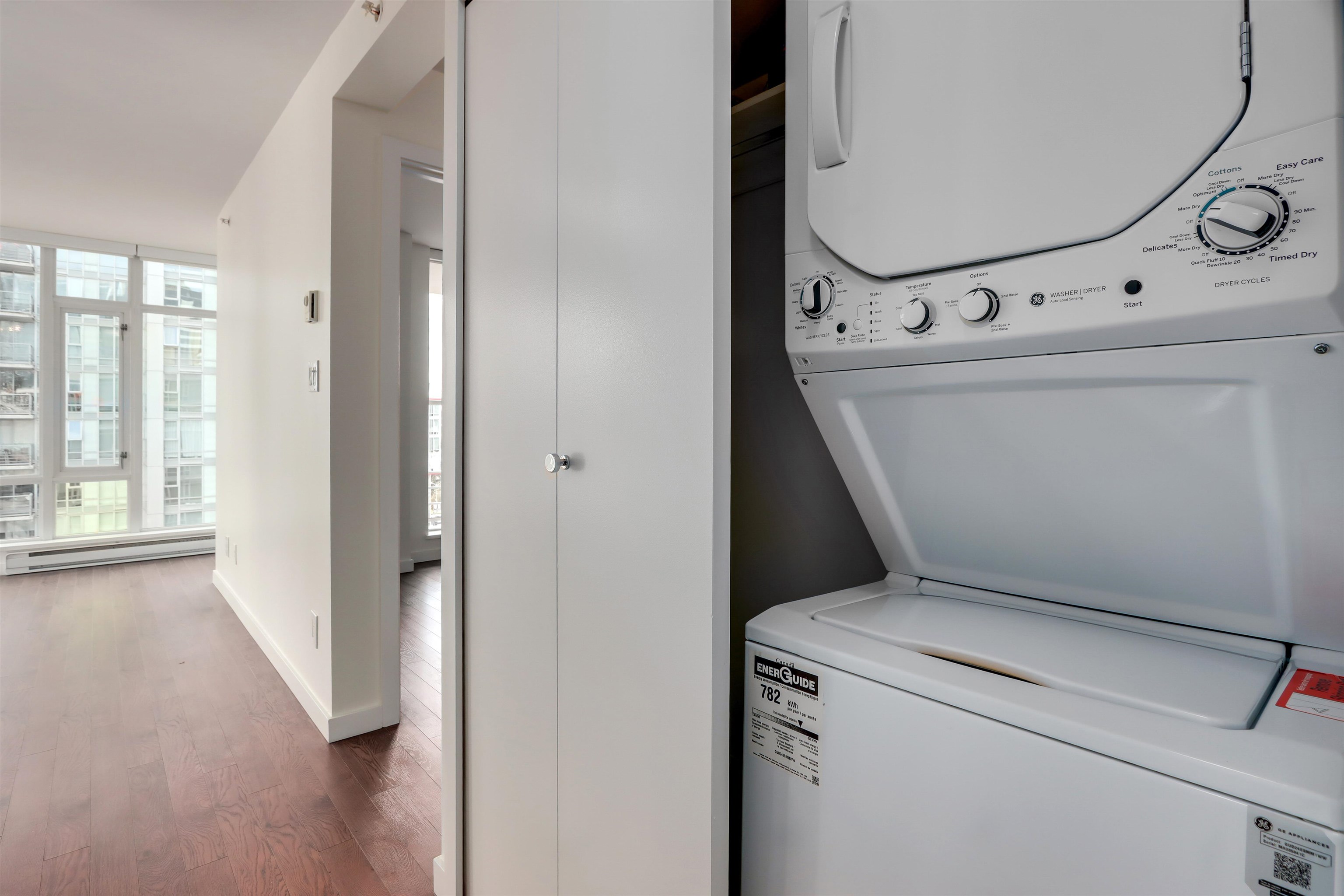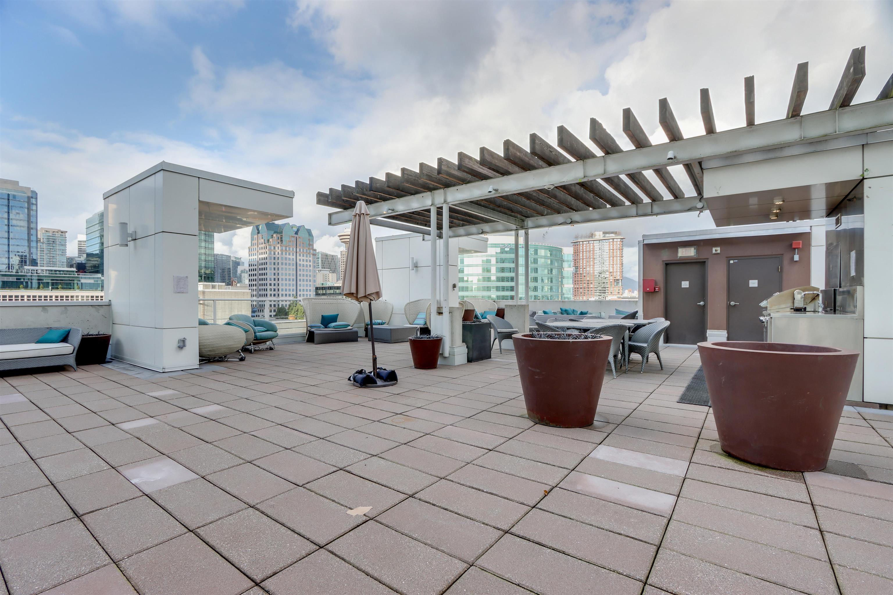 Discover downtown living at its finest in this exceptional corner 1-bedroom + den sub-Penthouse. Enjoy expansive floor-to-ceiling windows showcasing stunning city vistas & partial water/mountain views. Designed by architect James K.M. Cheng, this residence reflects modern West Coast style with an airy open-concept layout, 9' ceilings, new WR vanity, new W/D, a sleek kitchen featuring new surfacing on cabinetry & recently painted throughout. Built by Concord Pacific, this concrete tower offers resort-style a...