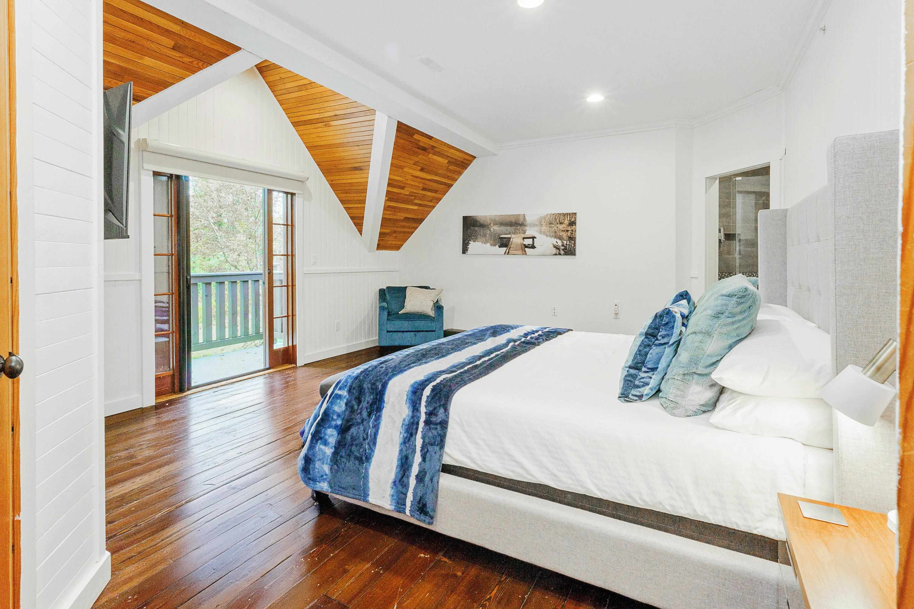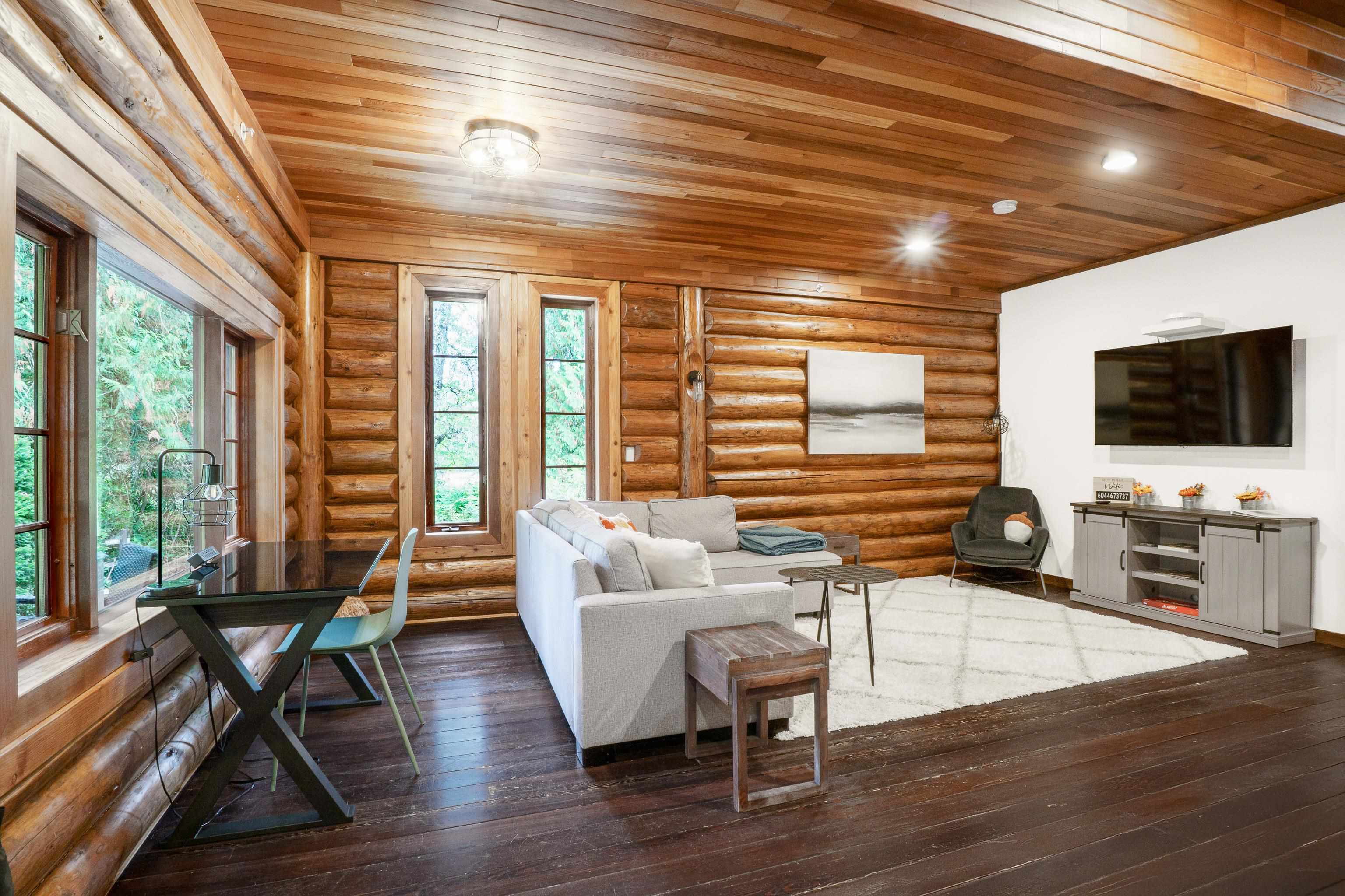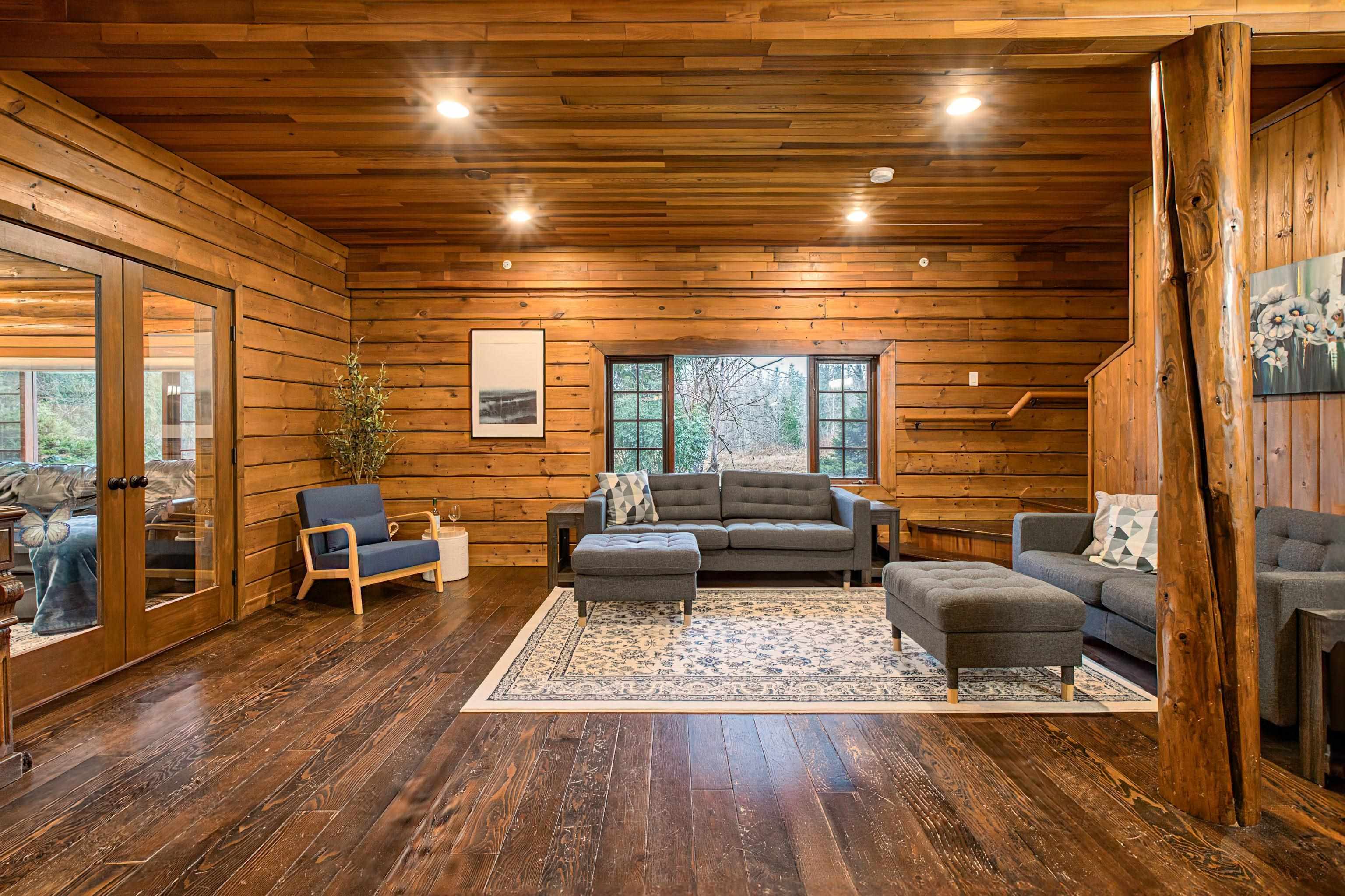 2 family living!! Custom home on tranquil 3.72 acres, surrounded by forest on a quiet no-thru road. Circular driveway with ample parking. Features radiant in-floor heat & 9' ceilings throughout. Currently configured as 2 self-contained homes with no interior connection, easily rejoined. Main home: Great room with kitchen, den, laundry & living room; upper level with primary bedroom & 4 pc ensuite, additional 4 pc bath & 4 more bedrooms. Secondary home: Kitchen, living & dining area, laundry 4 pc bath; upper...