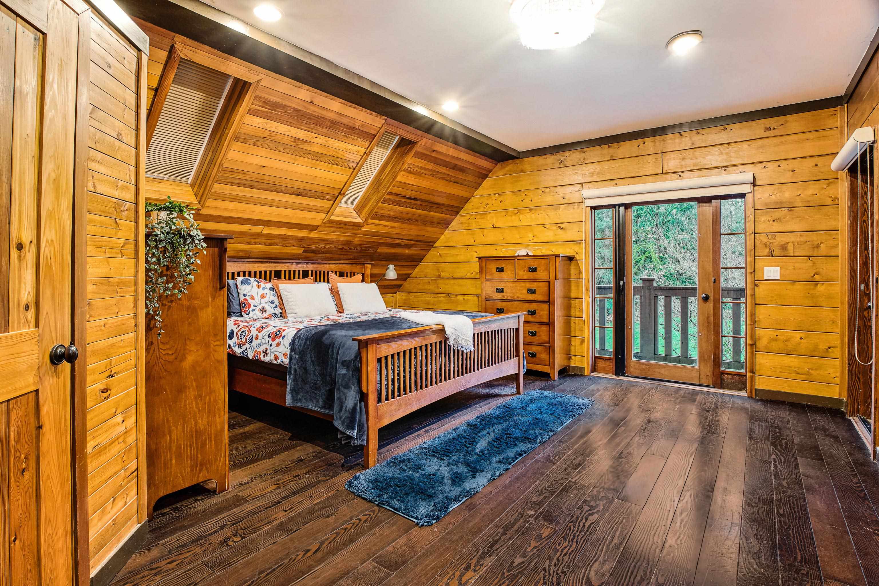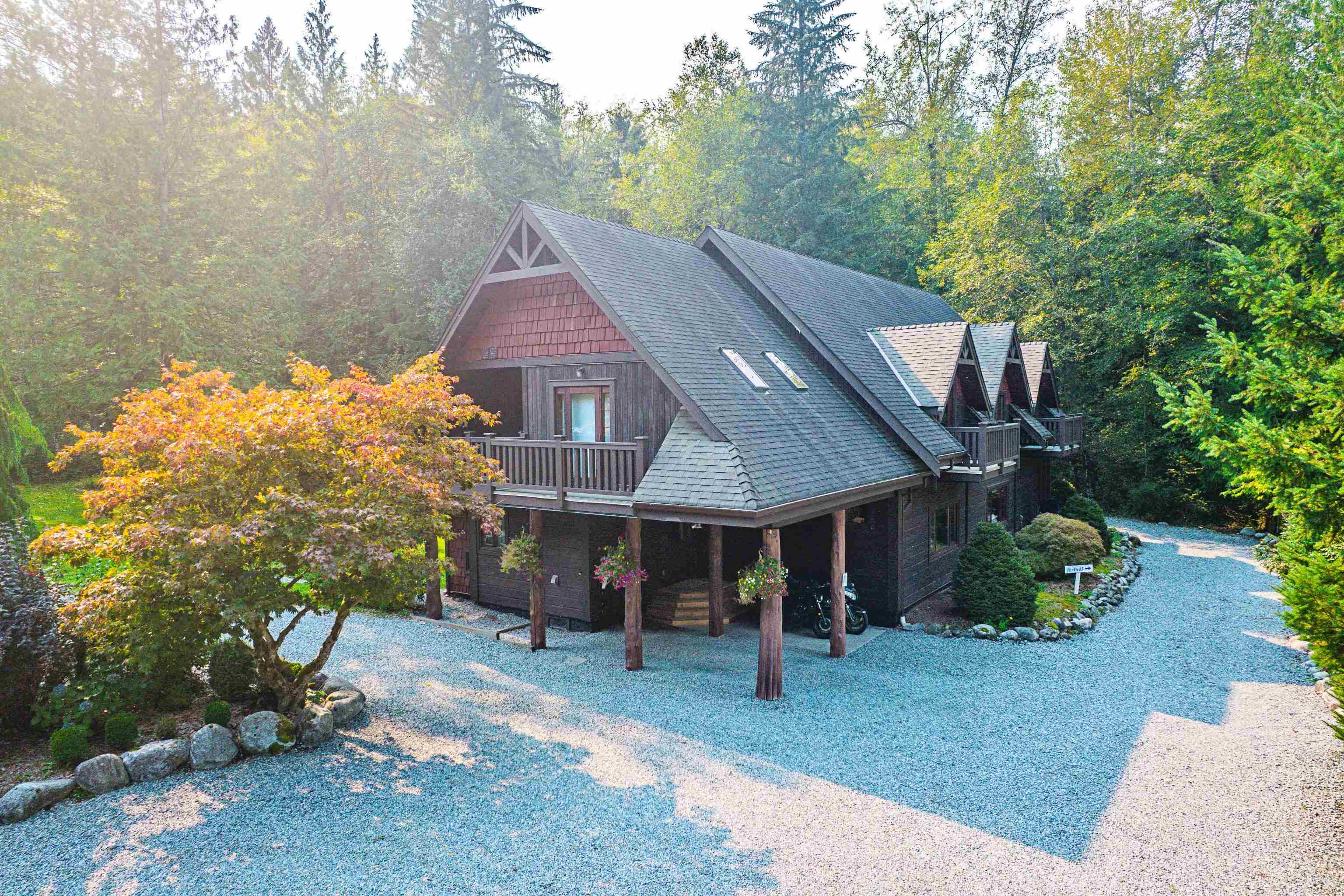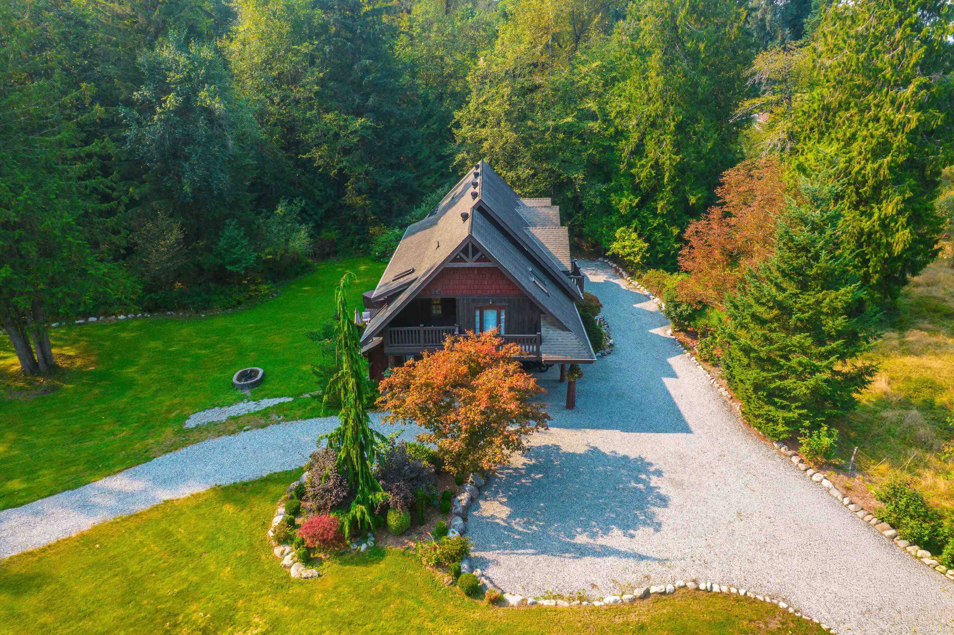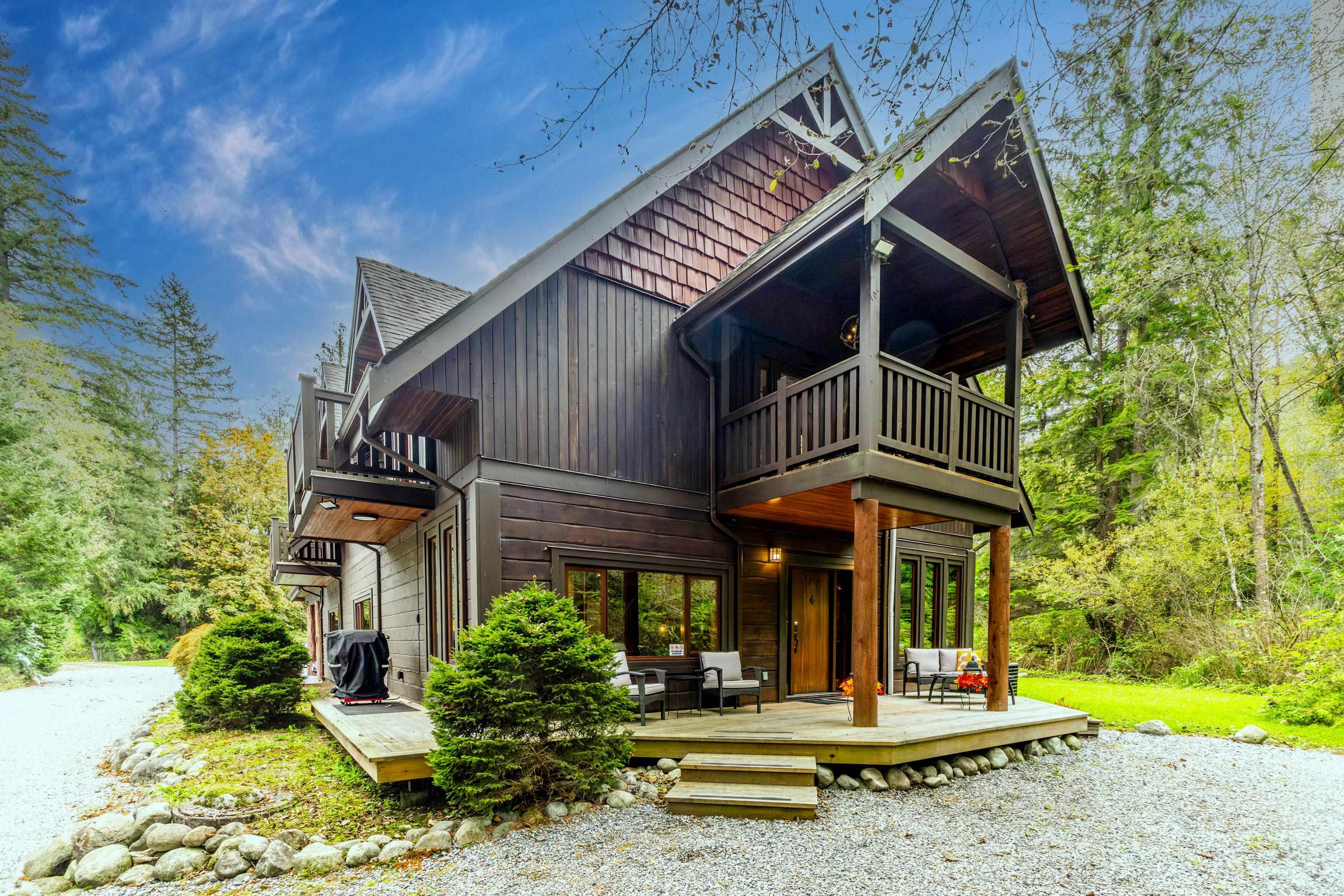 2 family living!! Custom home on tranquil 3.72 acres, surrounded by forest on a quiet no-thru road. Circular driveway with ample parking. Features radiant in-floor heat & 9' ceilings throughout. Currently configured as 2 self-contained homes with no interior connection, easily rejoined. Main home: Great room with kitchen, den, laundry & living room; upper level with primary bedroom & 4 pc ensuite, additional 4 pc bath & 4 more bedrooms. Secondary home: Kitchen, living & dining area, laundry 4 pc bath; upper...