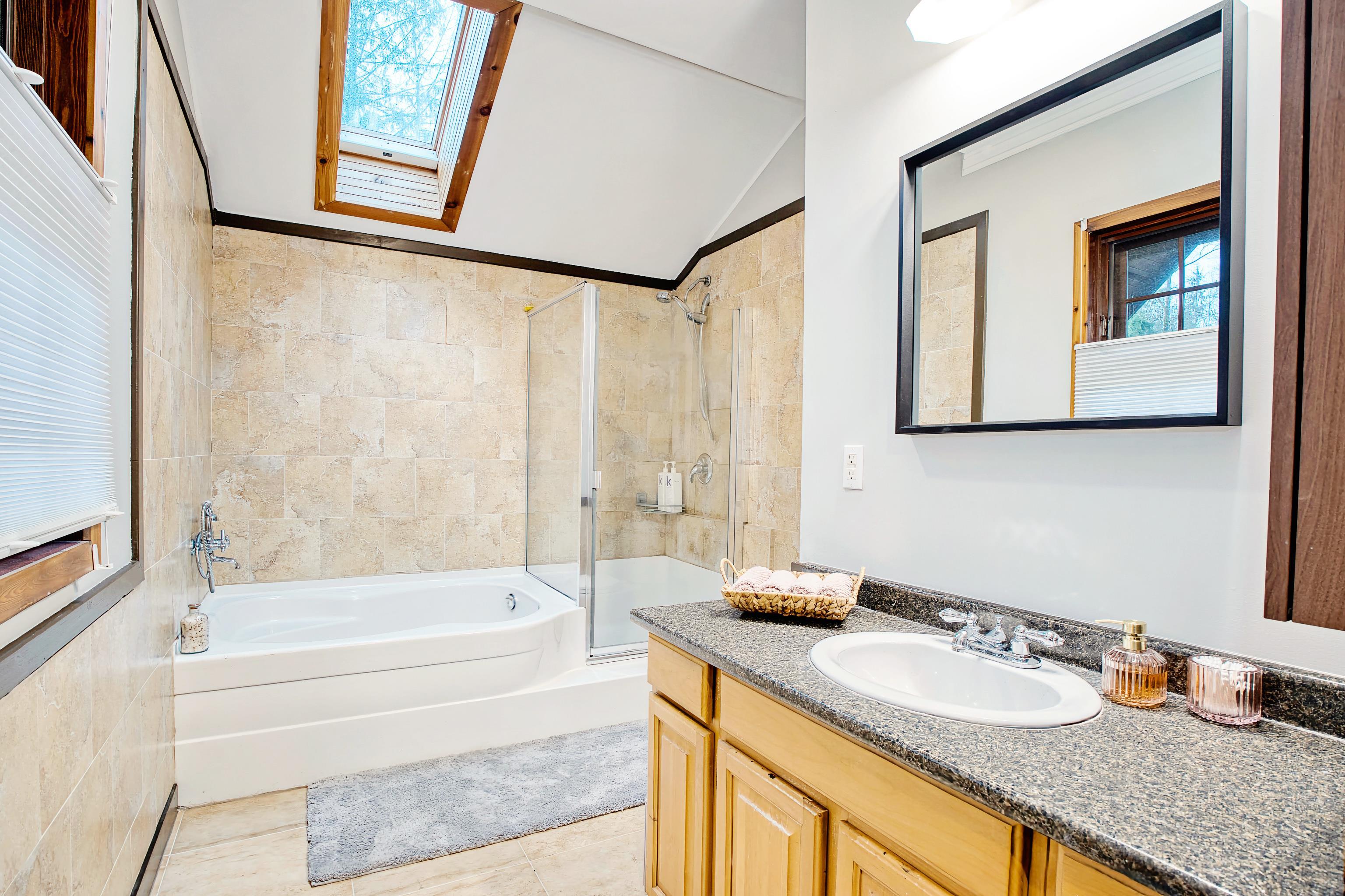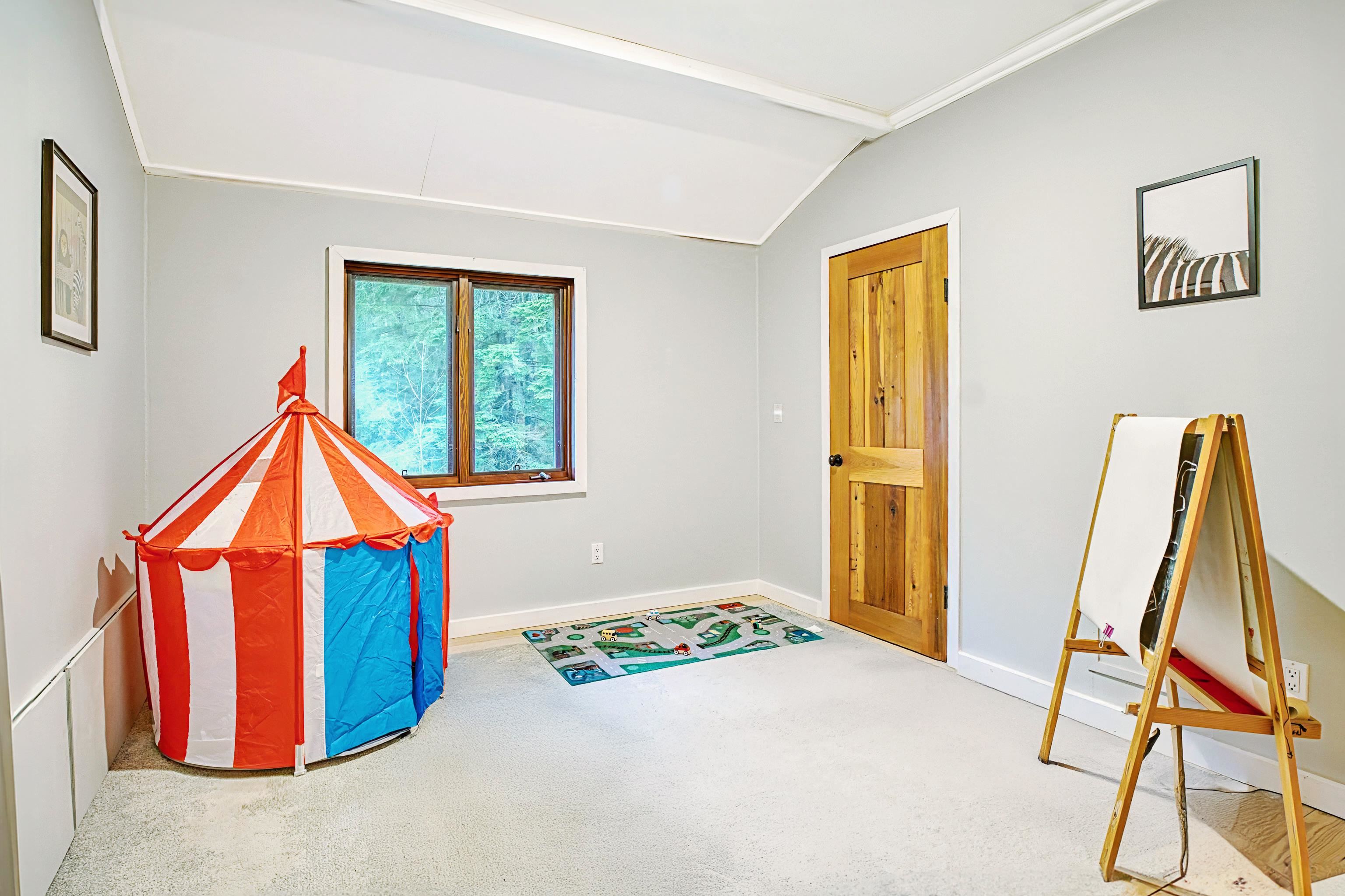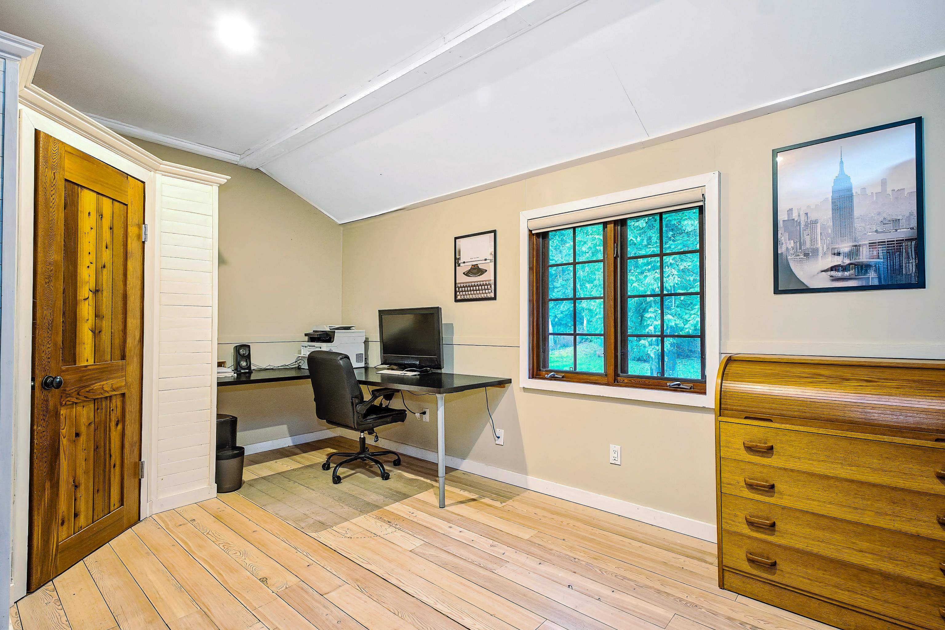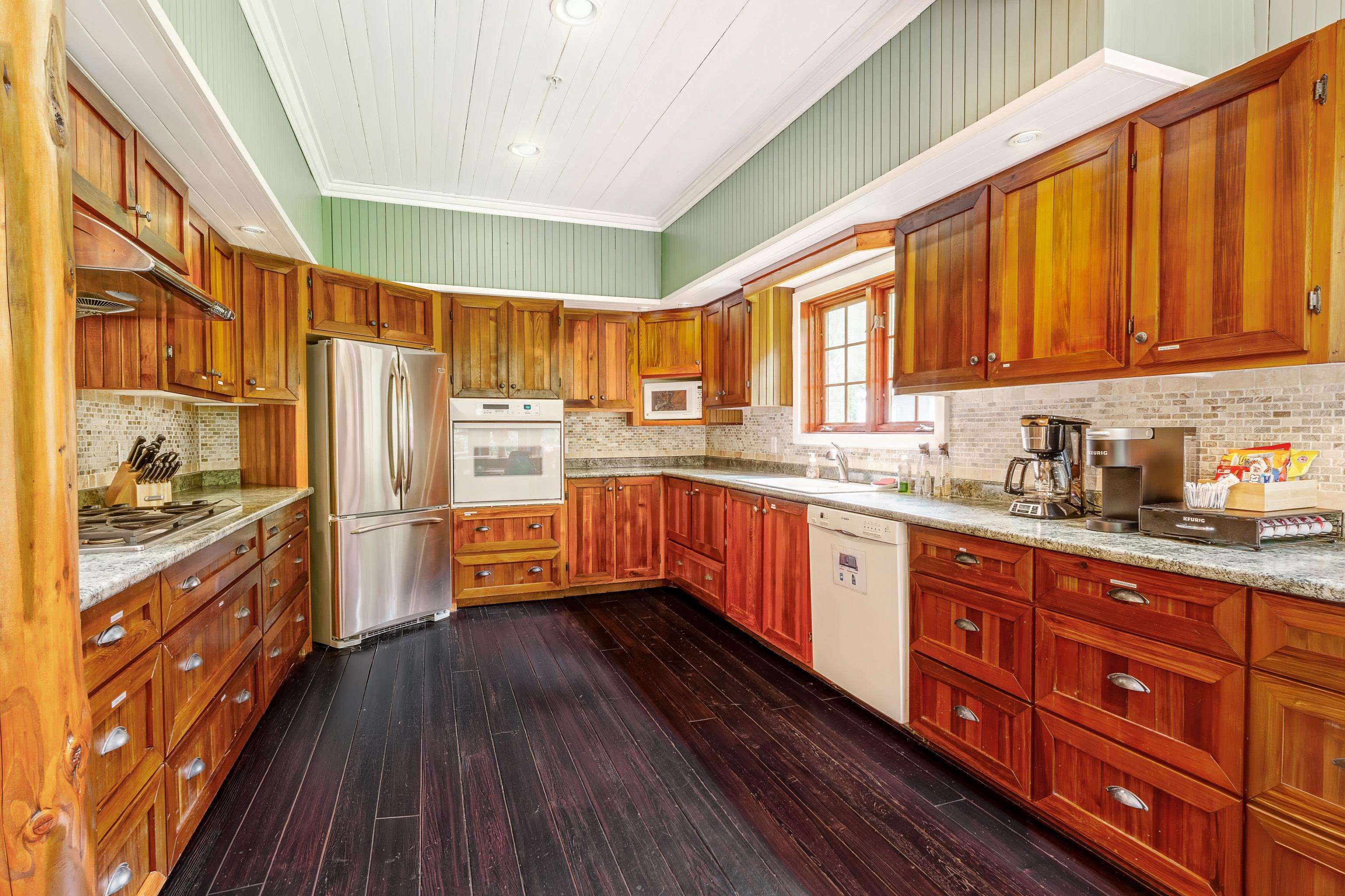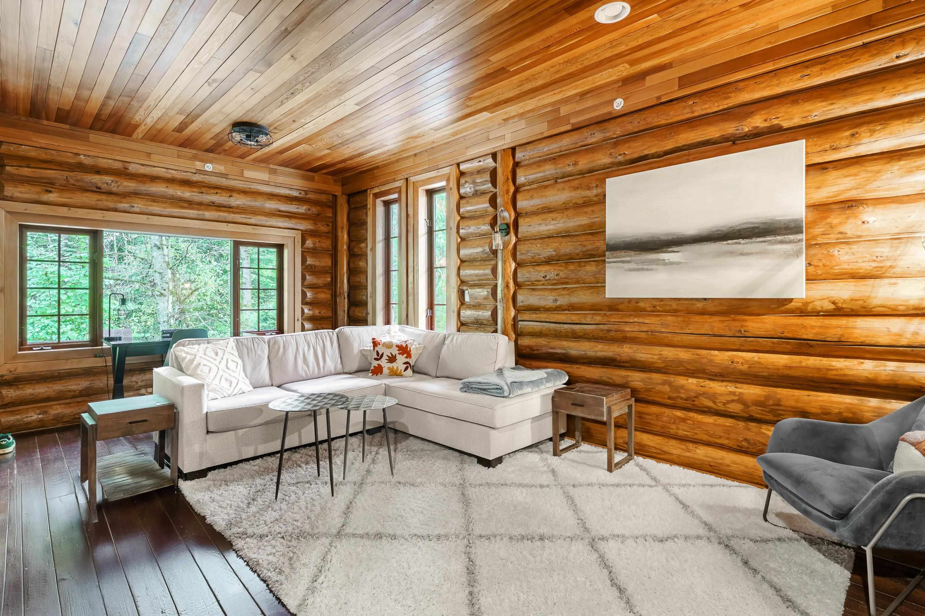 2 family living!! Custom home on tranquil 3.72 acres, surrounded by forest on a quiet no-thru road. Circular driveway with ample parking. Features radiant in-floor heat & 9' ceilings throughout. Currently configured as 2 self-contained homes with no interior connection, easily rejoined. Main home: Great room with kitchen, den, laundry & living room; upper level with primary bedroom & 4 pc ensuite, additional 4 pc bath & 4 more bedrooms. Secondary home: Kitchen, living & dining area, laundry 4 pc bath; upper...