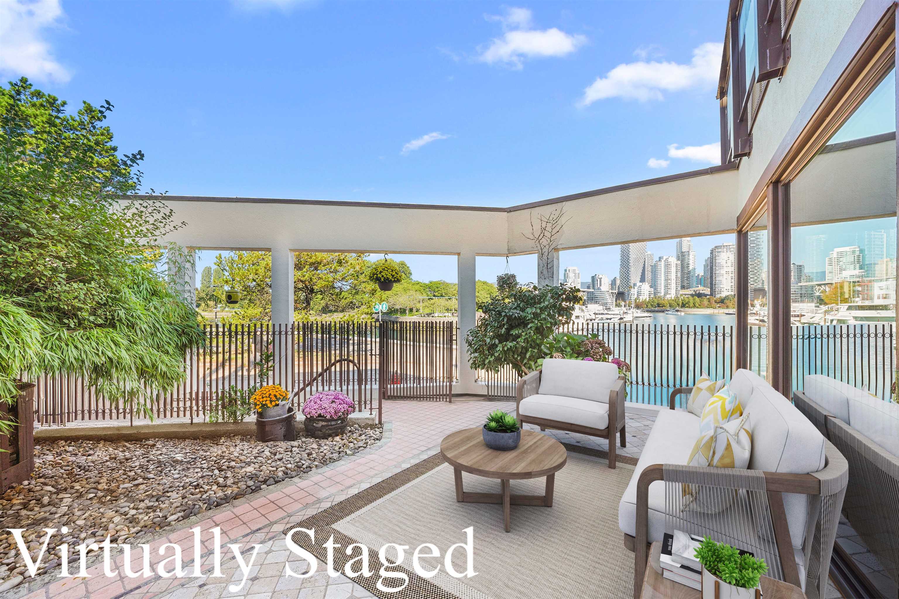 Discover serene, single-level living in one of Vancouver’s most sought-after waterfront locations. This 2bed home where the 2nd bedrm can easily be converted to an office or den, open living space + a stunning 378sf Terrazzo patio w/ panoramic water, marina, city, & mountain views. Step right out your front door onto the False Creek Seawall. Walk to Granville Island in minutes or enjoy a scenic stroll to Olympic Village. This home delivers the perfect mix of urban convenience & tranquility in a lush, garden...