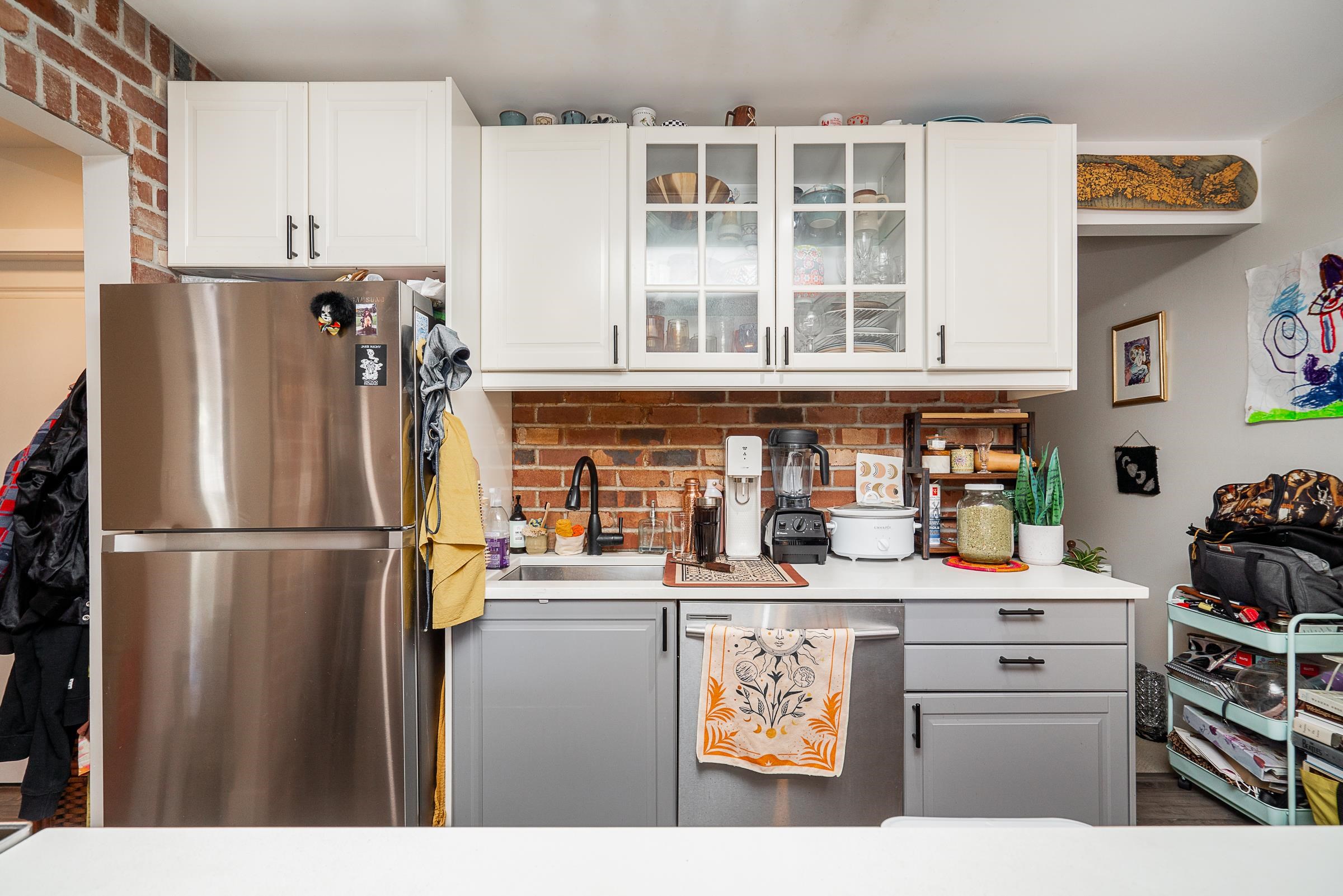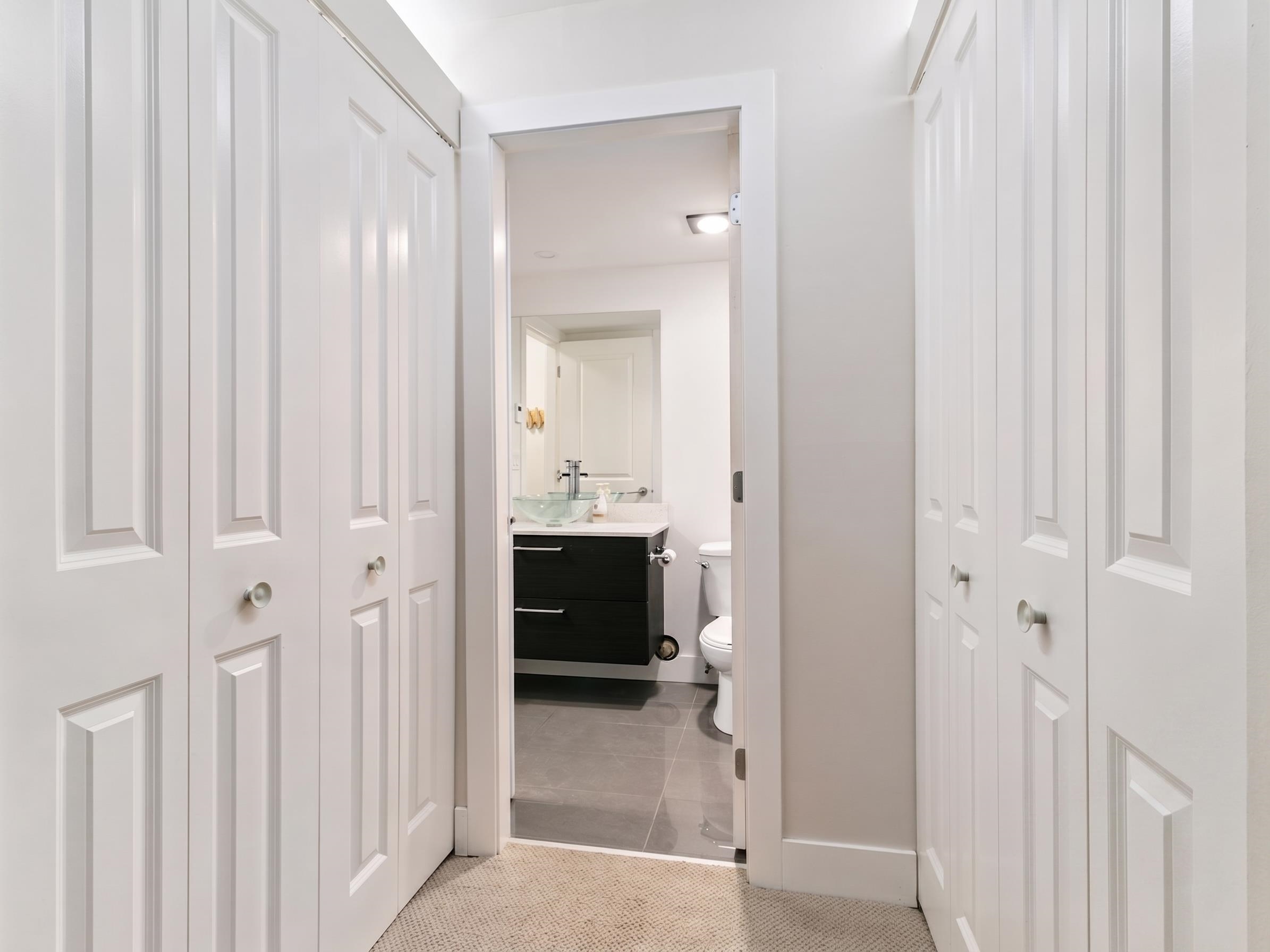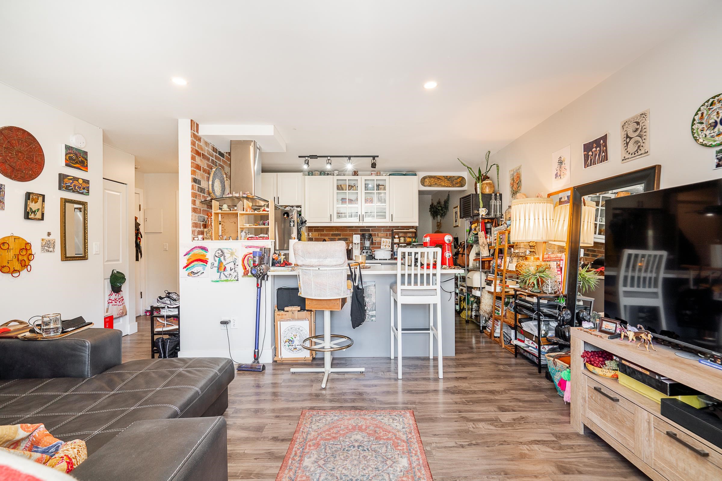 Step into this beautifully renovated 1 bed, 1 bath home in vibrant Hastings Sunrise. This 521 sqft residence features a rare 200 sqft private south-facing patio—perfect for relaxing and entertaining. The open-concept layout showcases a brand-new gourmet kitchen with island, stainless steel appliances, and exposed brick. Floor-to-ceiling windows fill the space with natural light, complemented by warm modern flooring. The bedroom offers a stylish barn door, walk-in closet, and cheater ensuite. Located steps t...