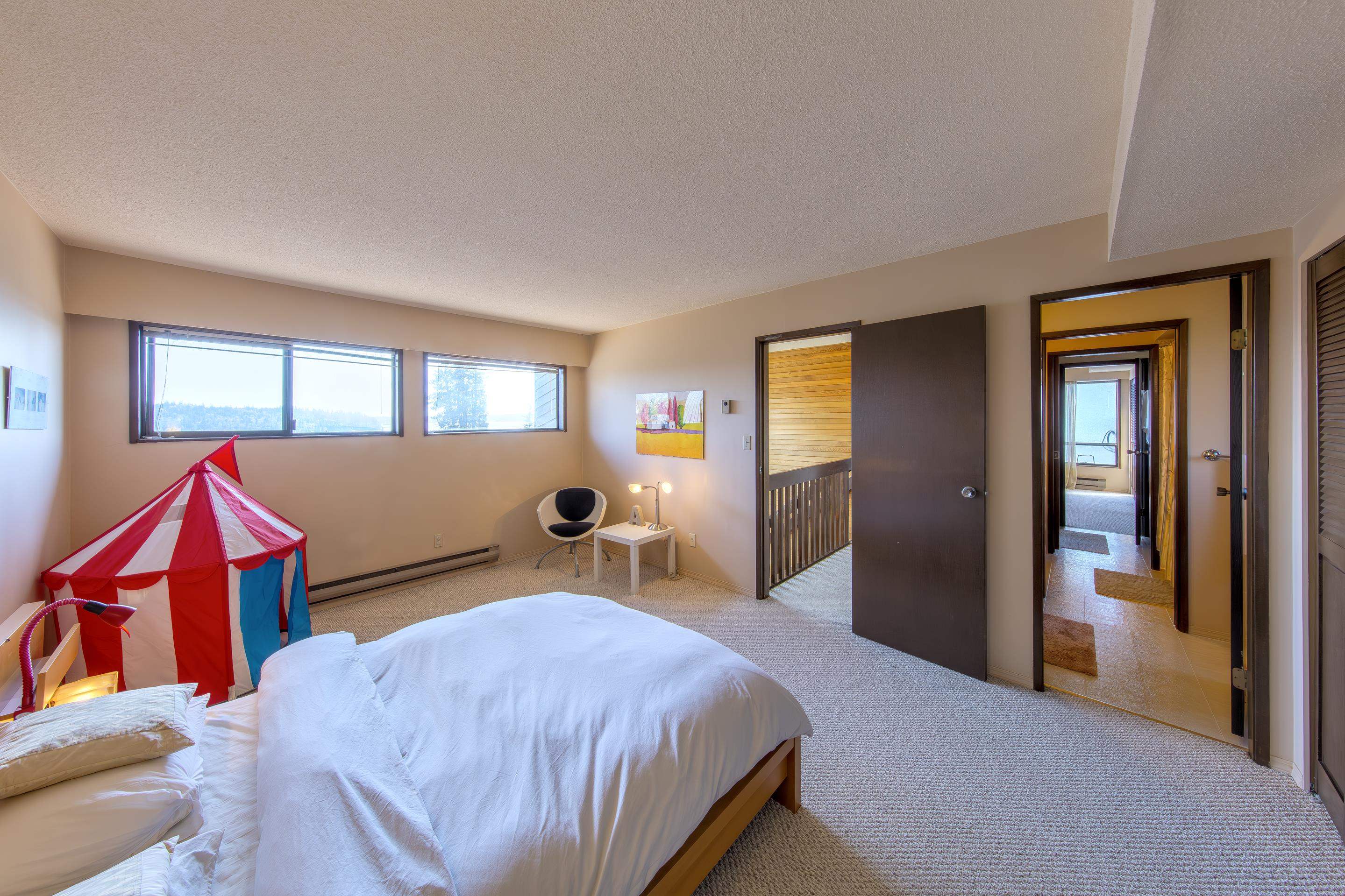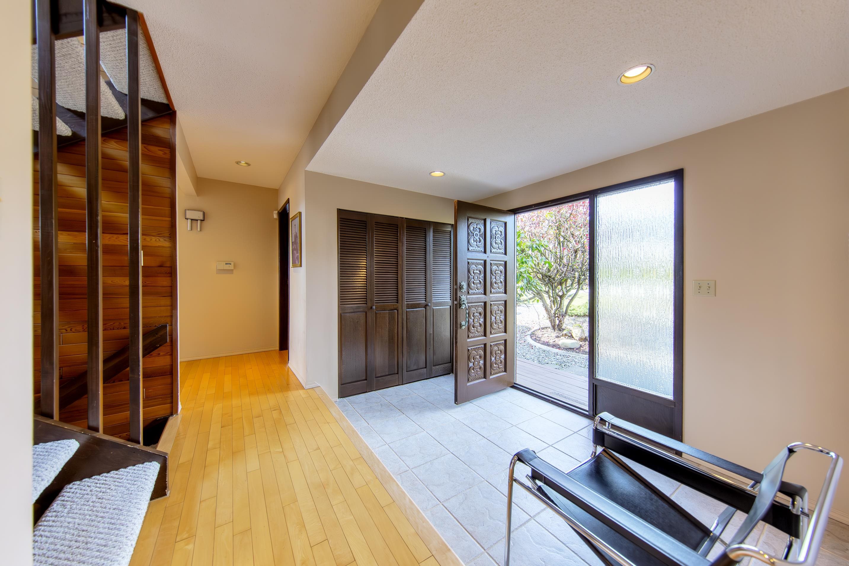 This authentic 1970s West Coast Contemporary is rich in architectural character, positioned to capture beautiful outlooks toward Burrard Inlet and the Vancouver skyline from a sun-filled flat property. Dramatic A-frame rooflines, exposed beams, a striking open-riser staircase, and a spacious main-level deck create seamless indoor-outdoor living with exceptional volume and light. Meticulously maintained with permitted updates in the early 2000s, the home retains its original design integrity, including vinta...