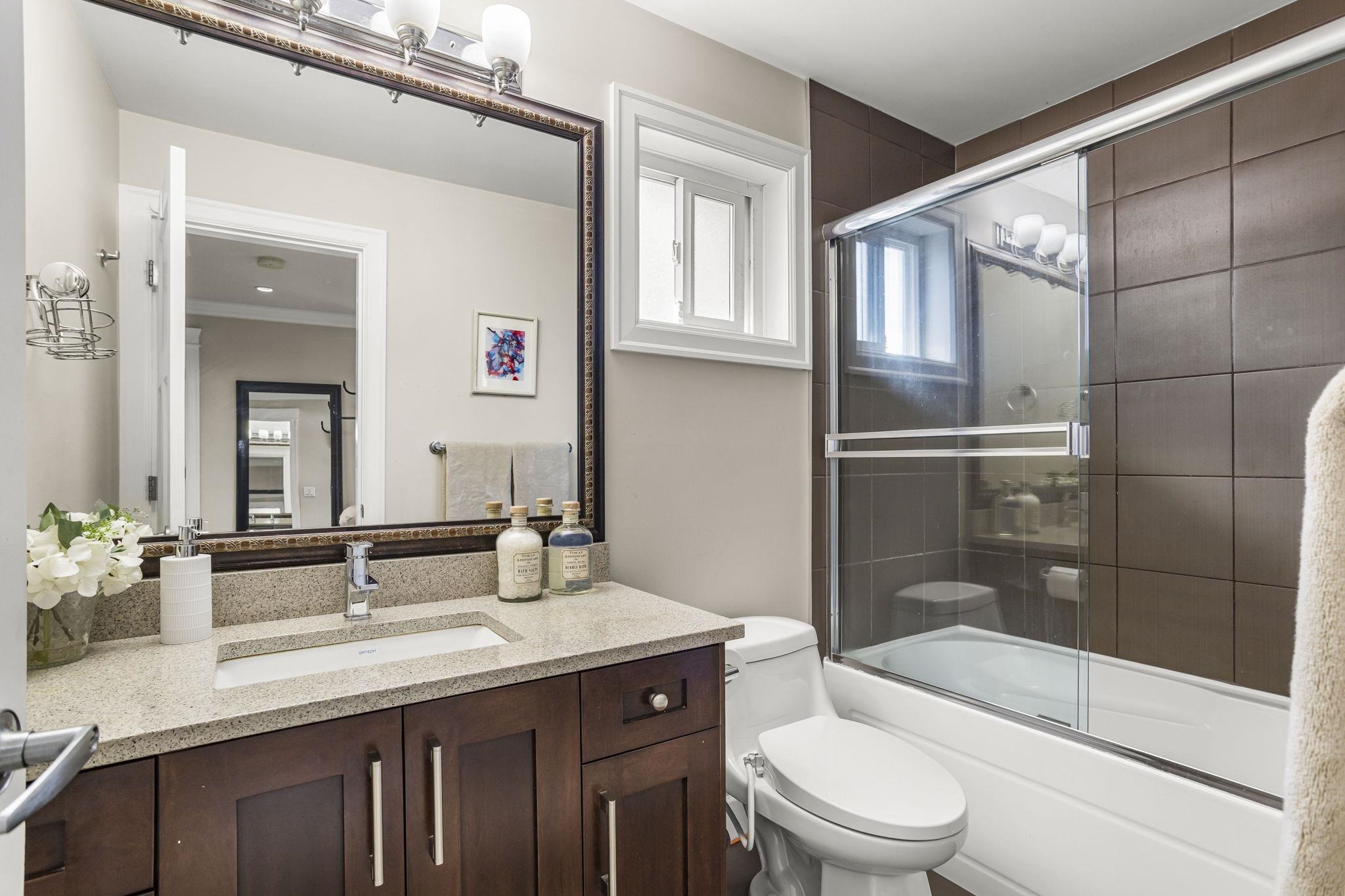 Rare opportunity offering corner duplex in prime location! Enter into a spacious, bright, open layout featuring a spacious living and dining area with a gas fireplace. The main floor includes a bedroom with a full ensuite with separate entrance, ideal for extended family or guests, plus a bonus office/nook and a powder room. The chef's kitchen has s/s appliances, a large island, soft-close cabinetry, and ample storage. Upstairs offers three generous bedrooms, including a spacious primary suite with a full e...