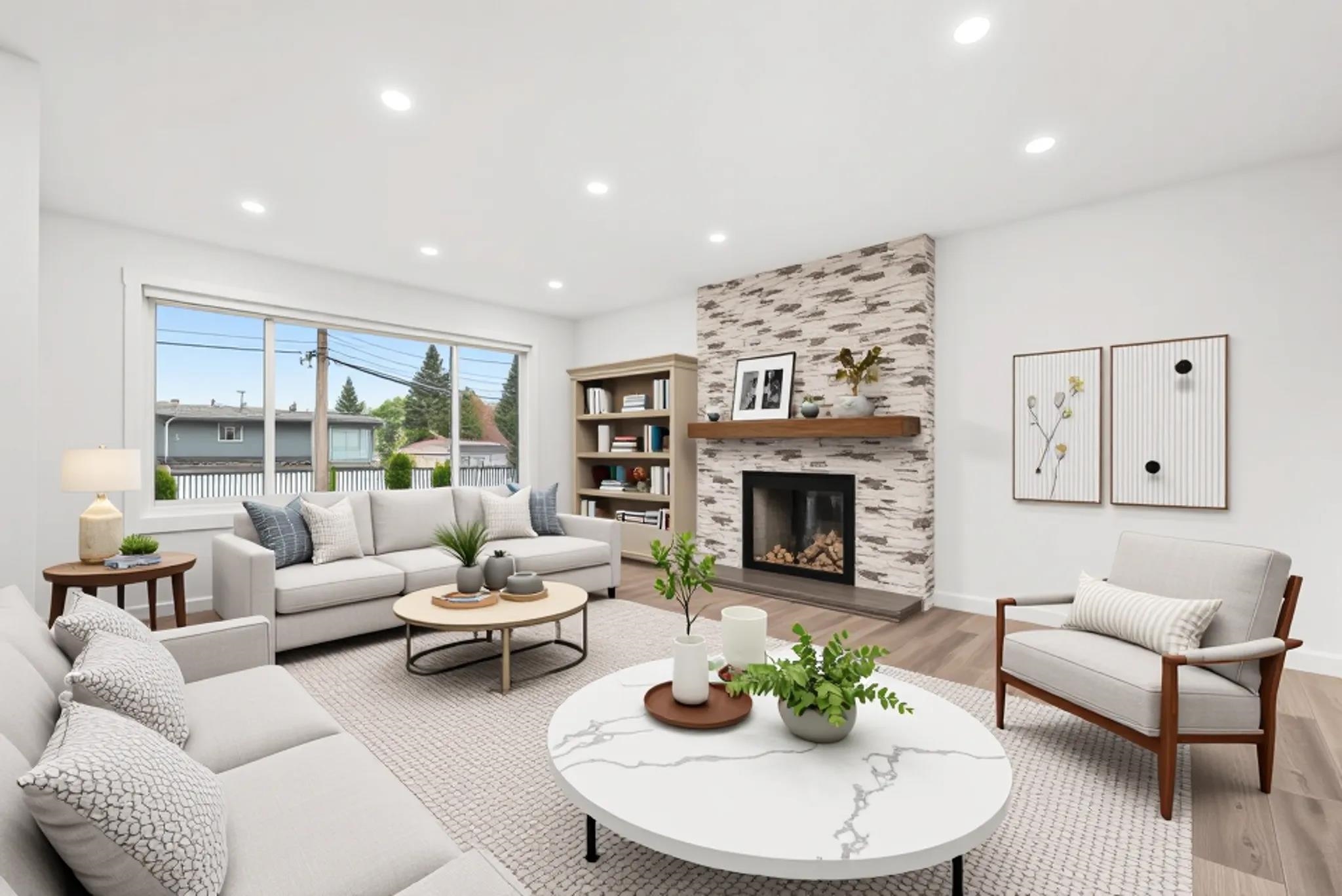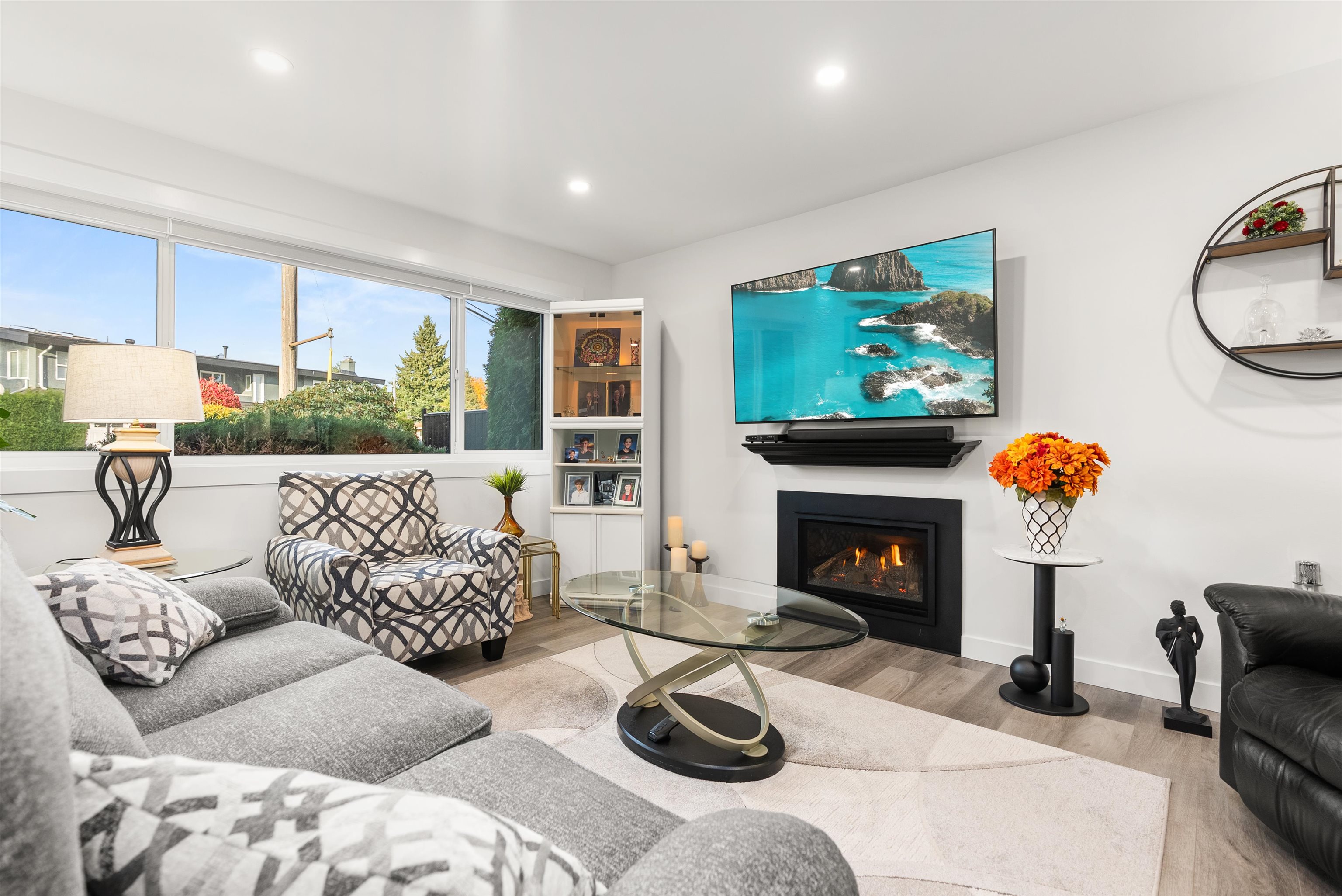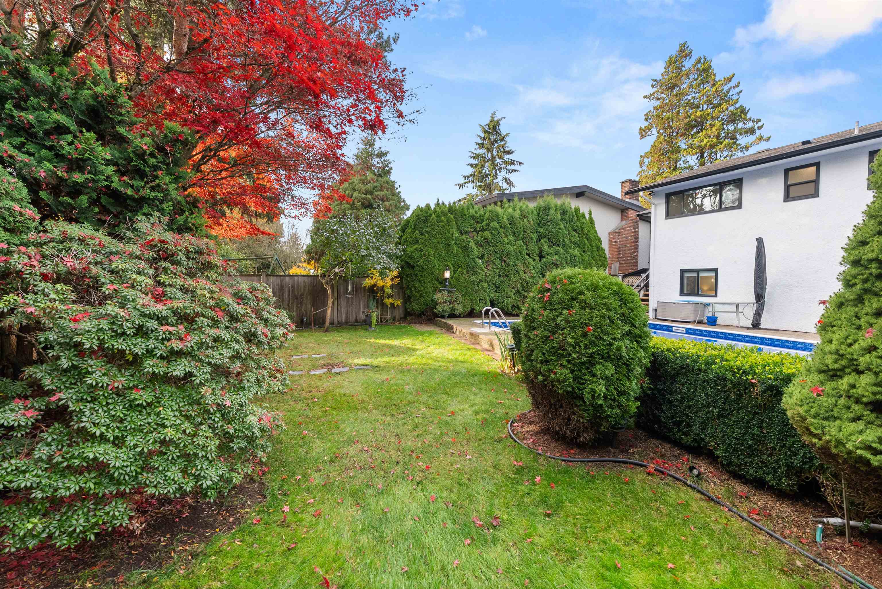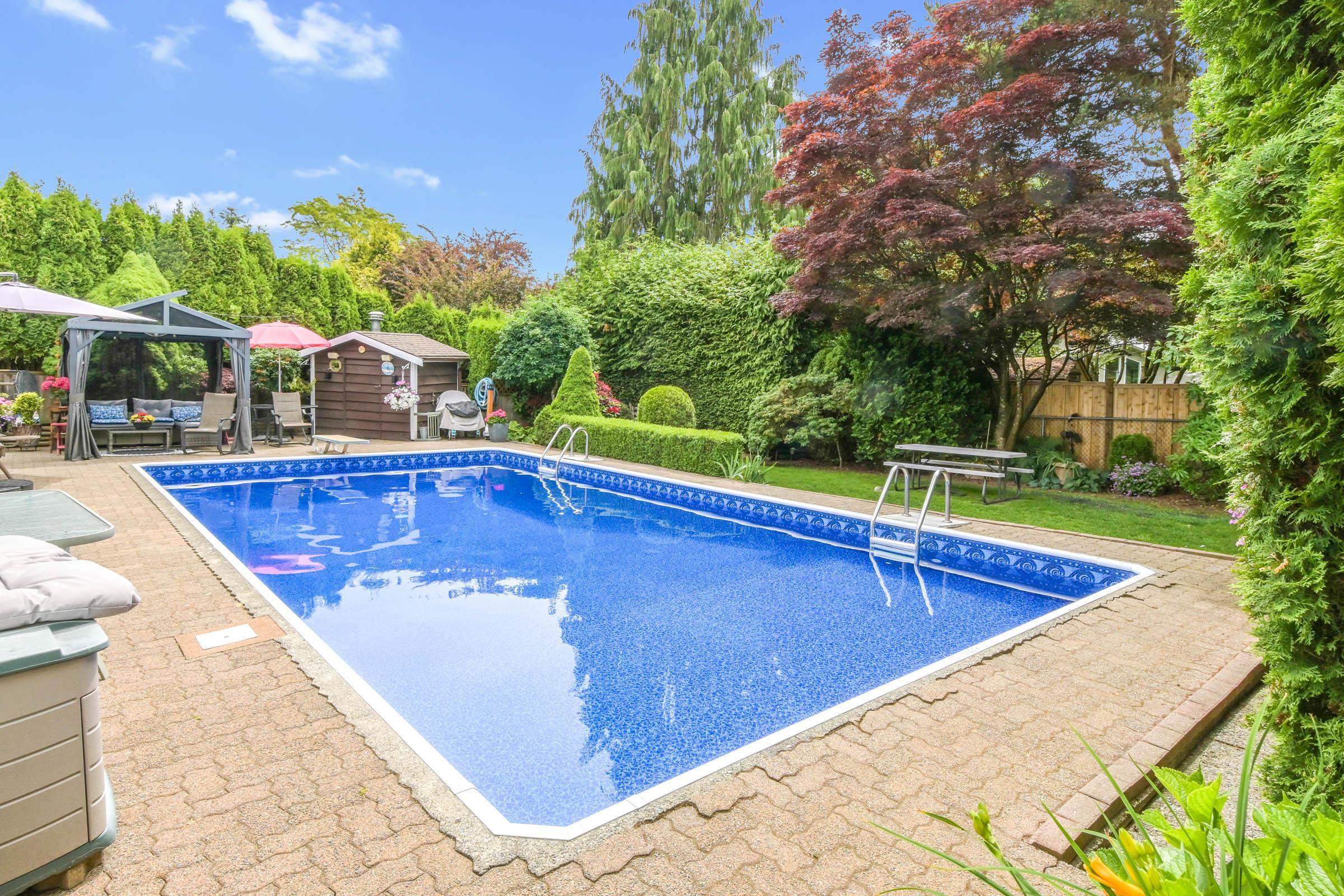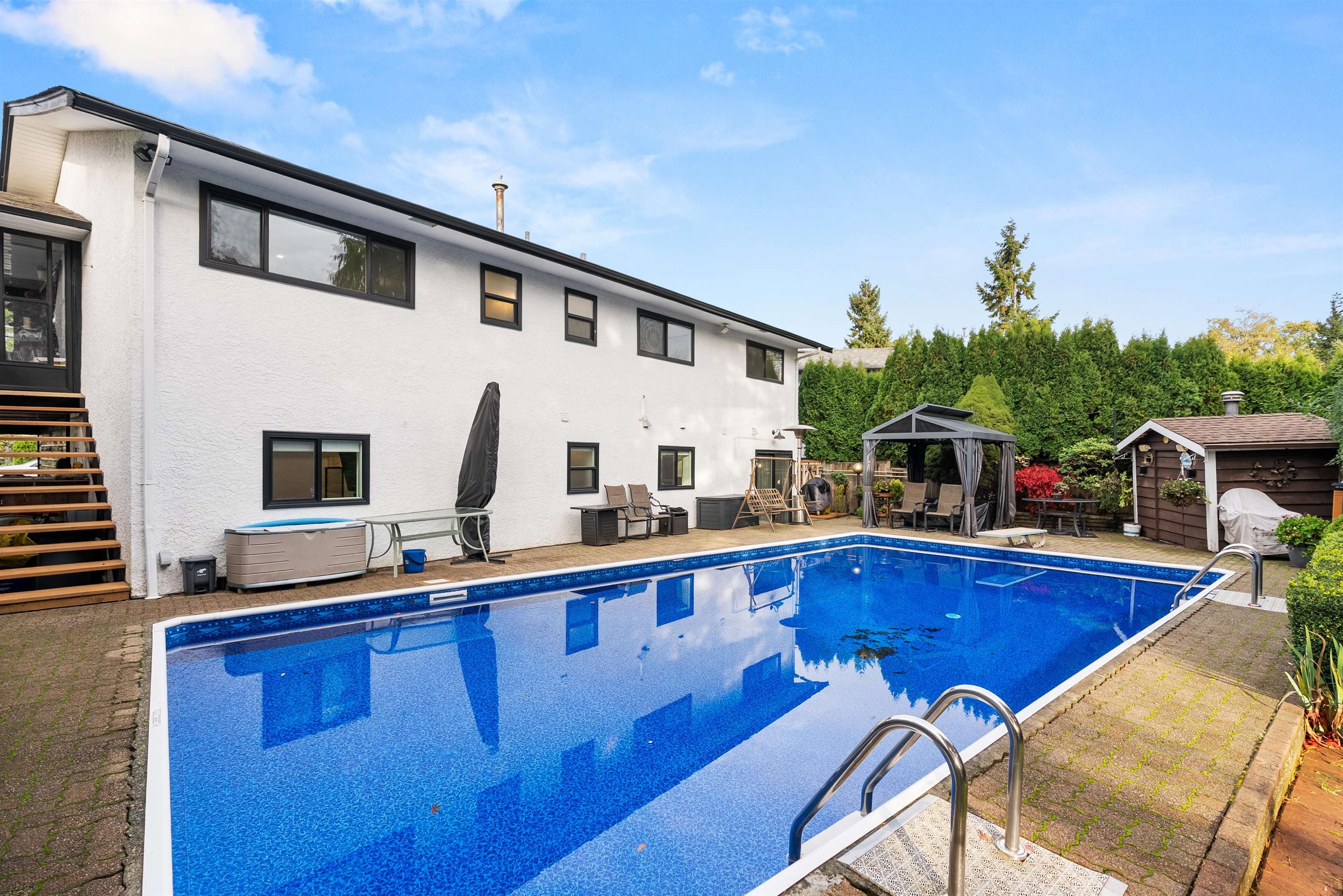 Welcome to this beautifully renovated 2 level home with 3 bdrms upstairs and a professionally finished legal 1-bedroom suite. Features a backyard oasis with sparkling pool and lush landscaping plus a bonus enclosed sundeck. Quality redesigned with intention, it is a perfect two family home, offering privacy, style, and modern comfort. Each suite enjoys its own entrance, updated kitchens with quartz counters, and cozy fireplaces. Extensive upgrades include freshly painted outside trim, sound and fireproofing...