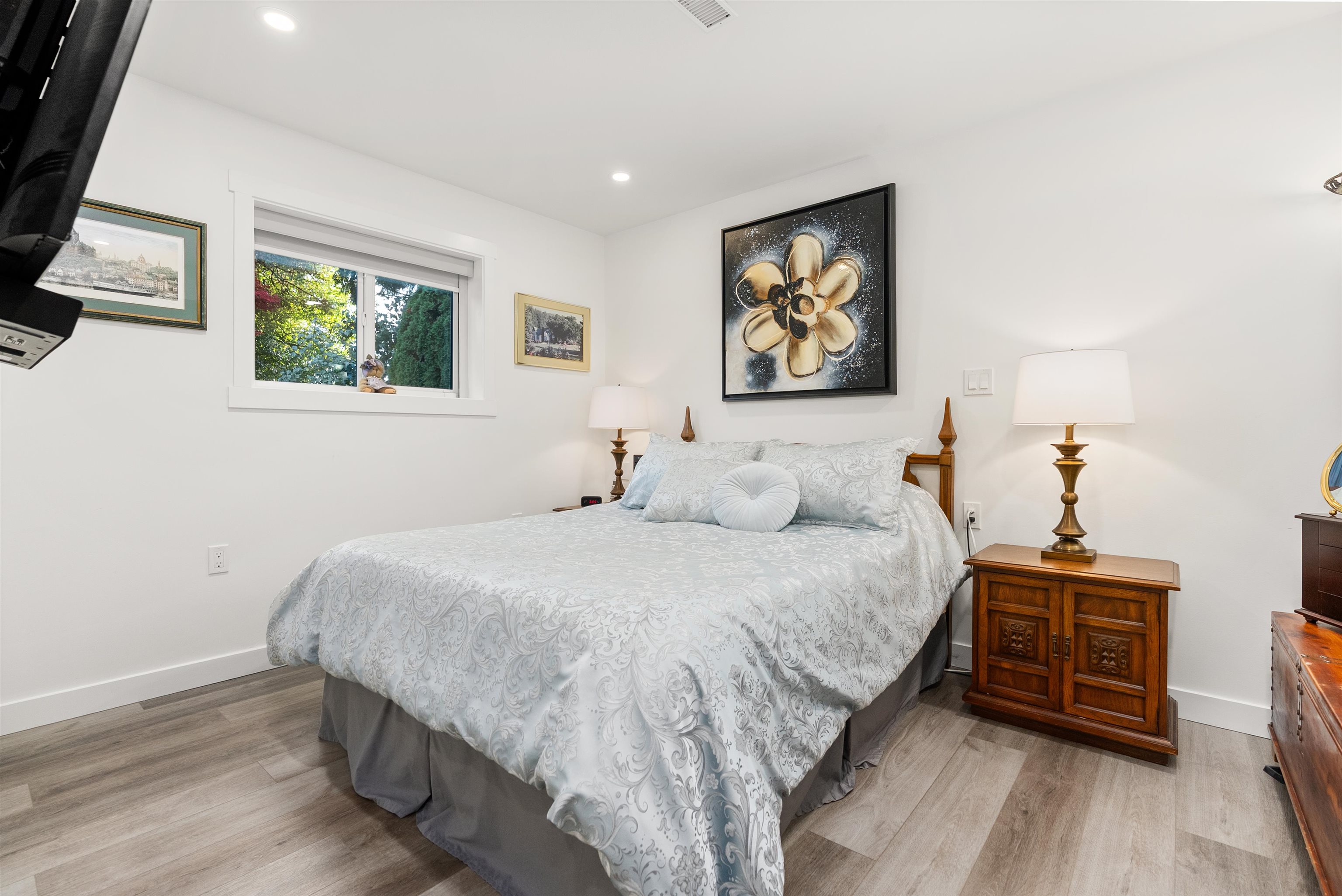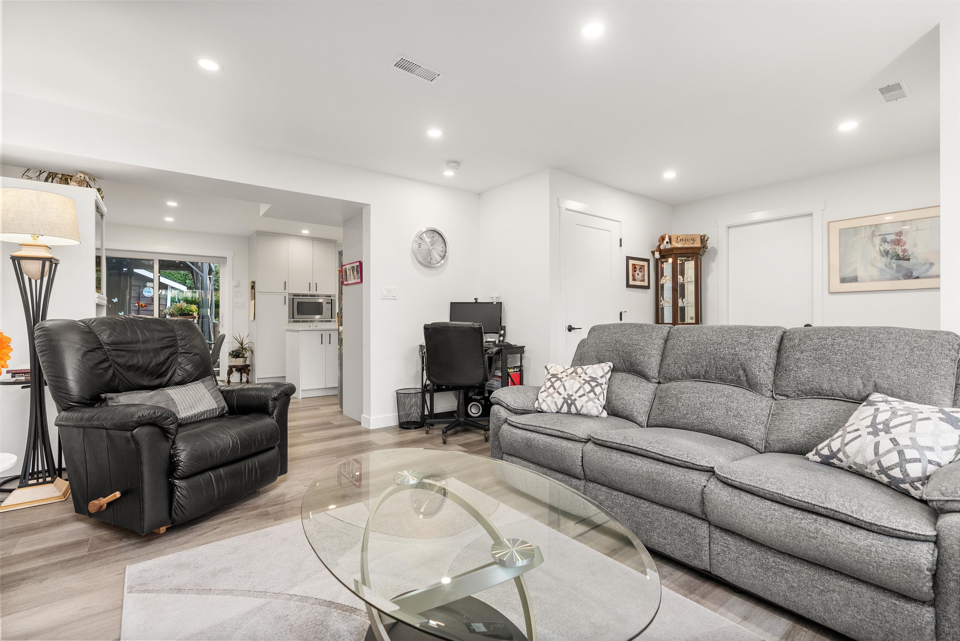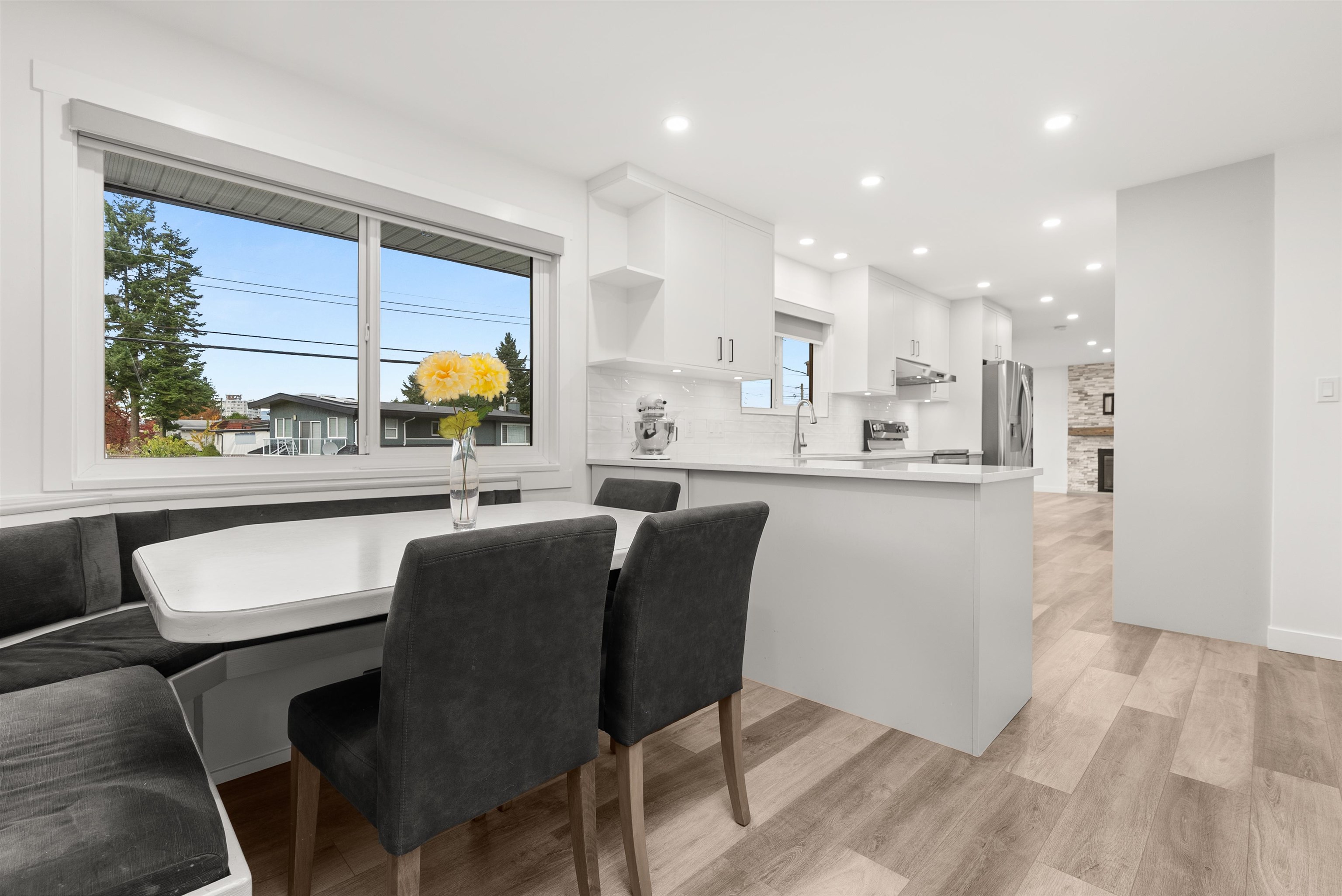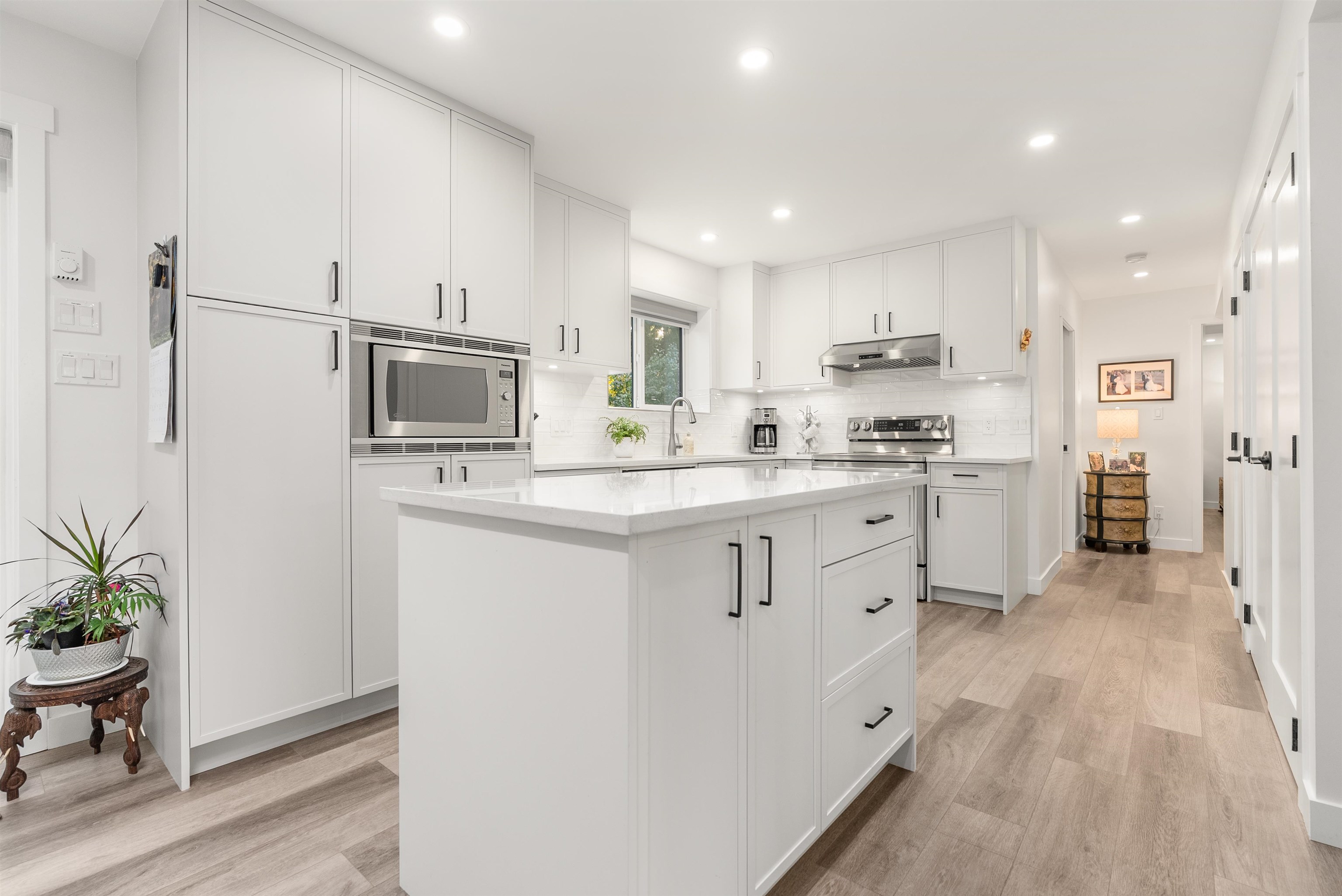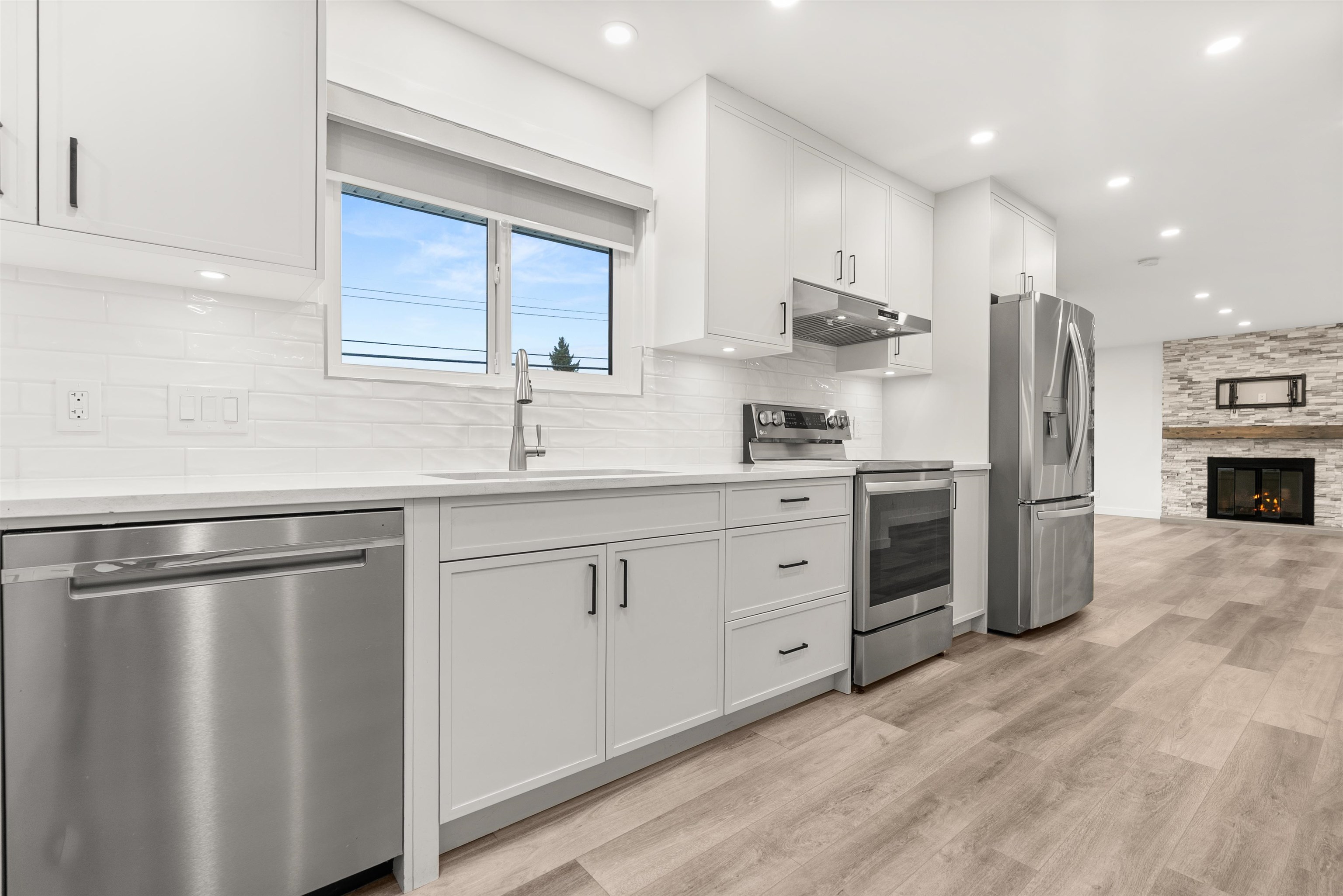 Welcome to this beautifully renovated 2 level home with 3 bdrms upstairs and a professionally finished legal 1-bedroom suite. Features a backyard oasis with sparkling pool and lush landscaping plus a bonus enclosed sundeck. Quality redesigned with intention, it is a perfect two family home, offering privacy, style, and modern comfort. Each suite enjoys its own entrance, updated kitchens with quartz counters, and cozy fireplaces. Extensive upgrades include freshly painted outside trim, sound and fireproofing...