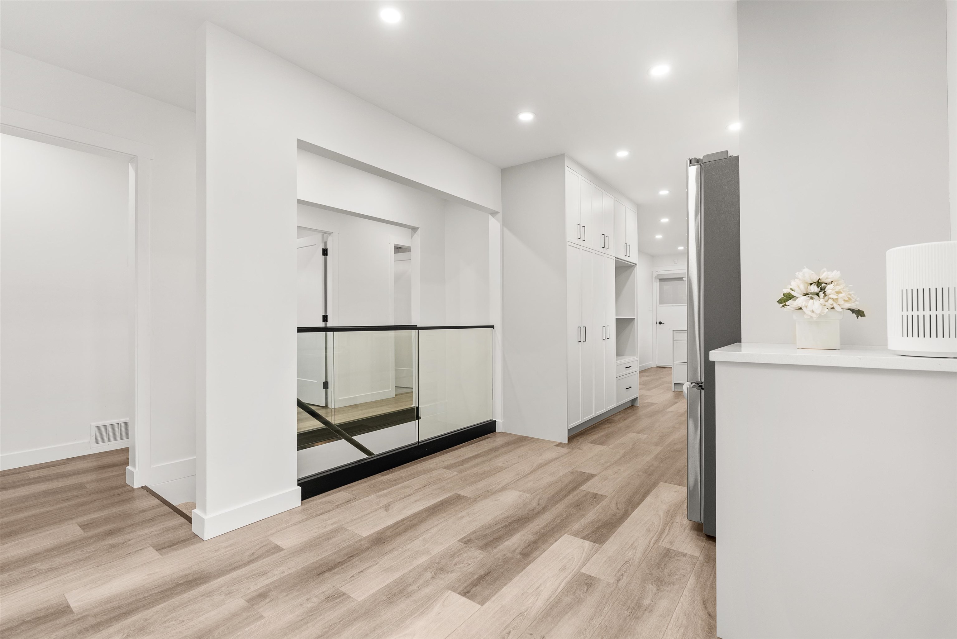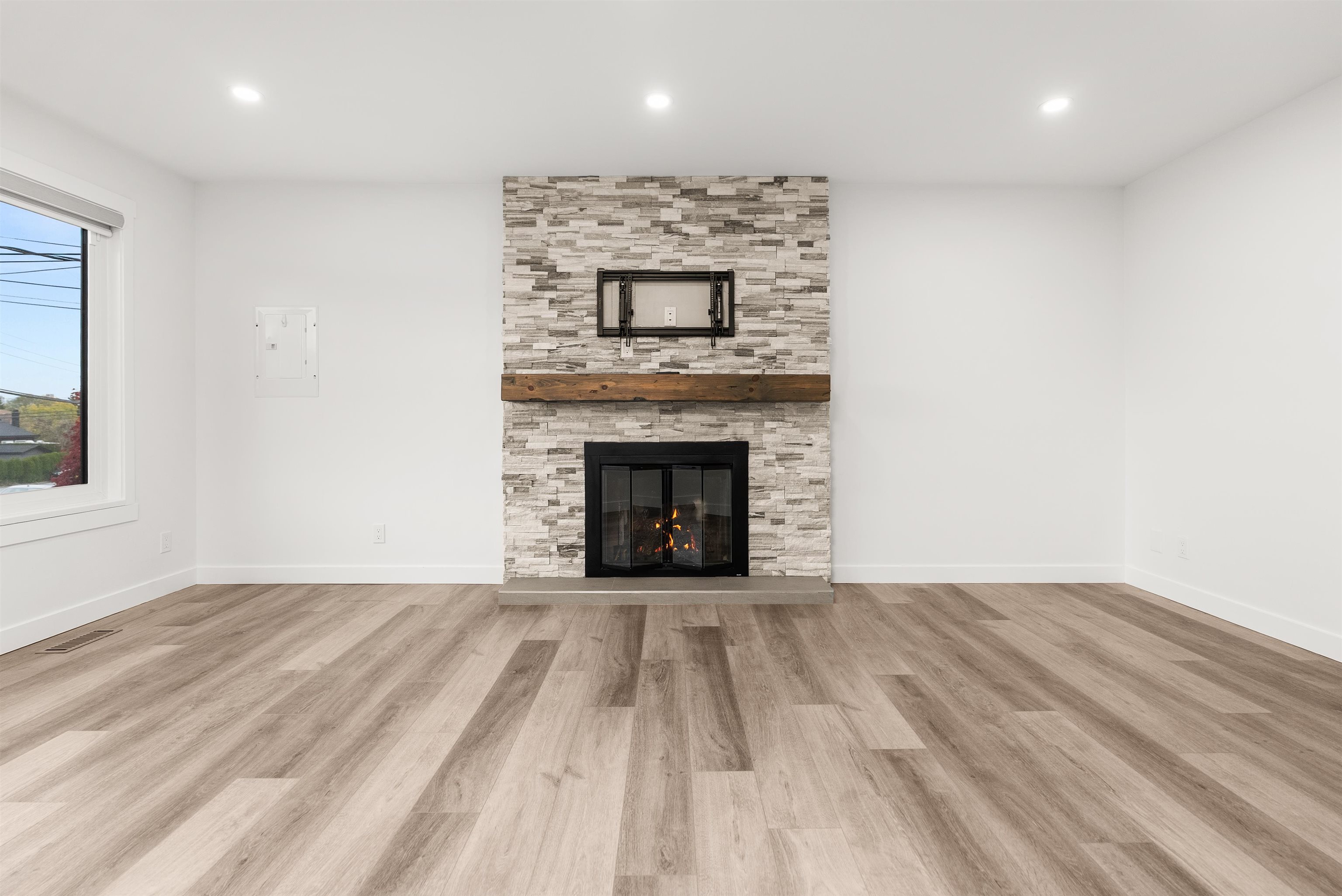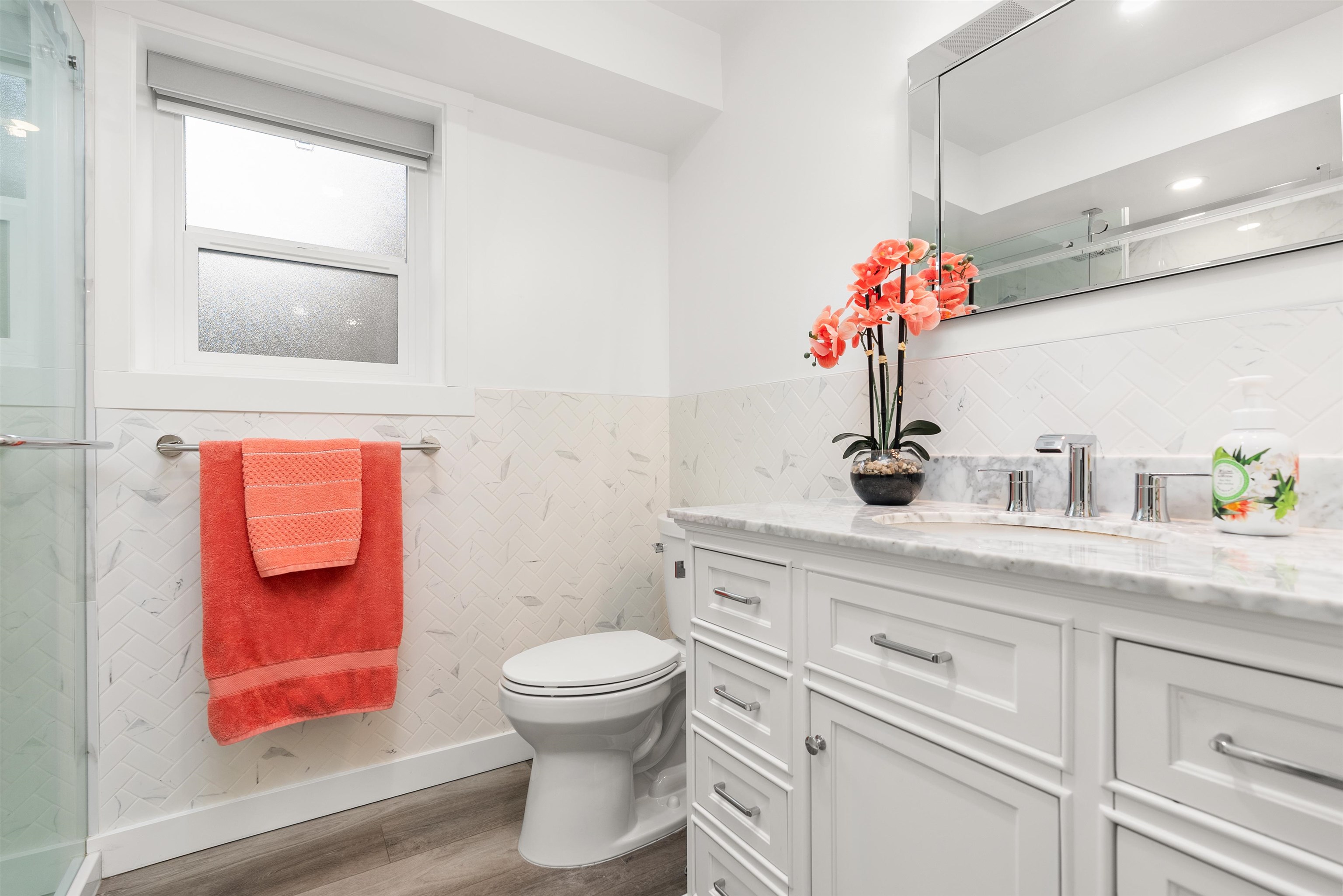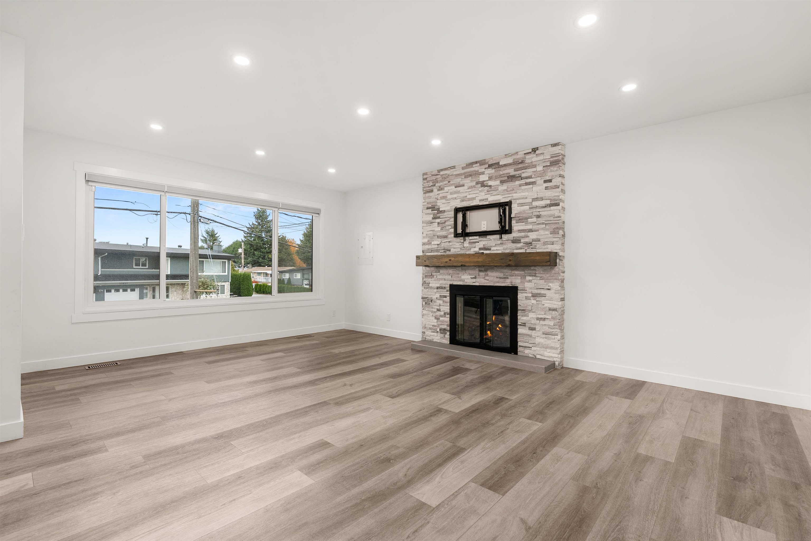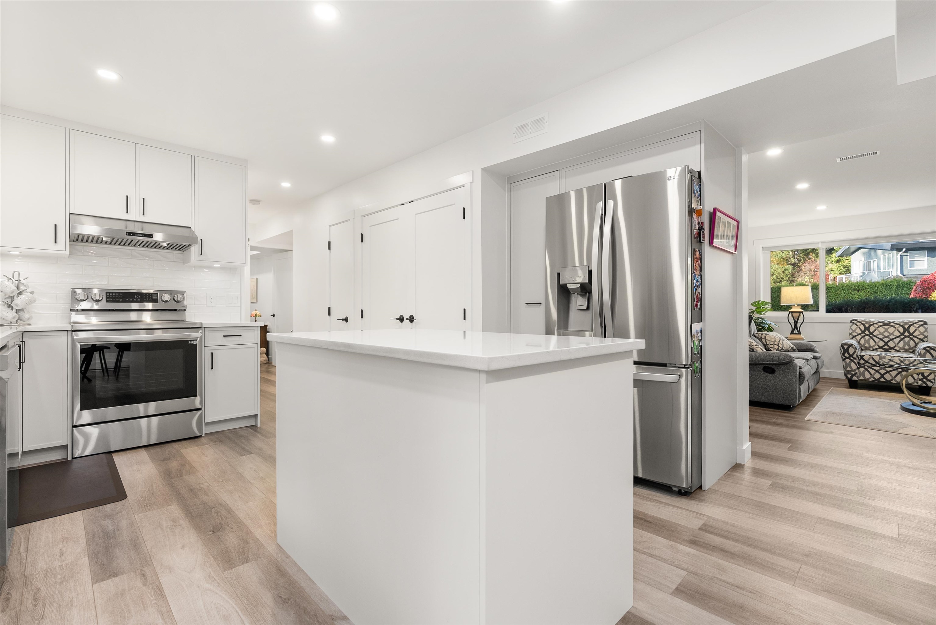 Welcome to this beautifully renovated 2 level home with 3 bdrms upstairs and a professionally finished legal 1-bedroom suite. Features a backyard oasis with sparkling pool and lush landscaping plus a bonus enclosed sundeck. Quality redesigned with intention, it is a perfect two family home, offering privacy, style, and modern comfort. Each suite enjoys its own entrance, updated kitchens with quartz counters, and cozy fireplaces. Extensive upgrades include freshly painted outside trim, sound and fireproofing...