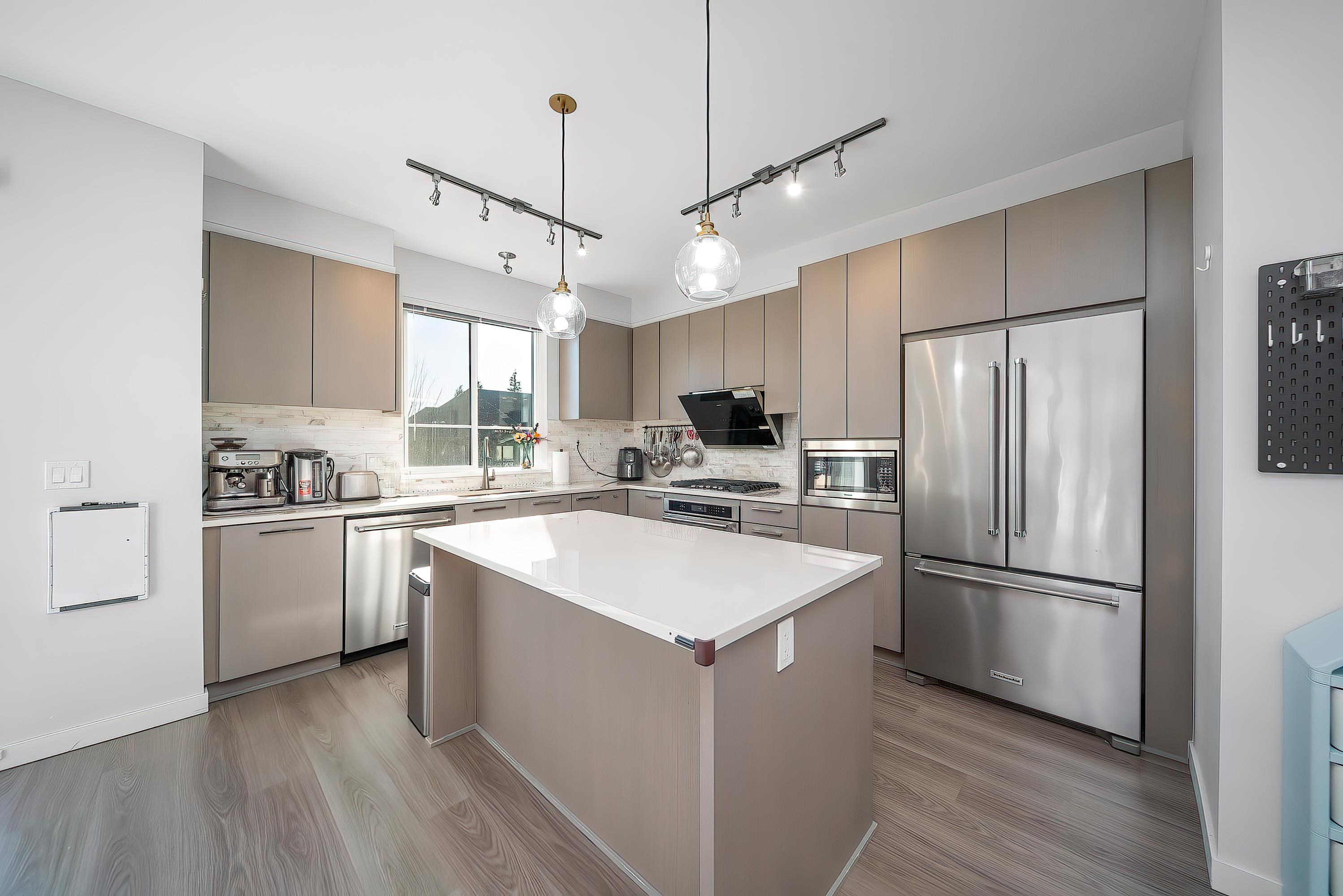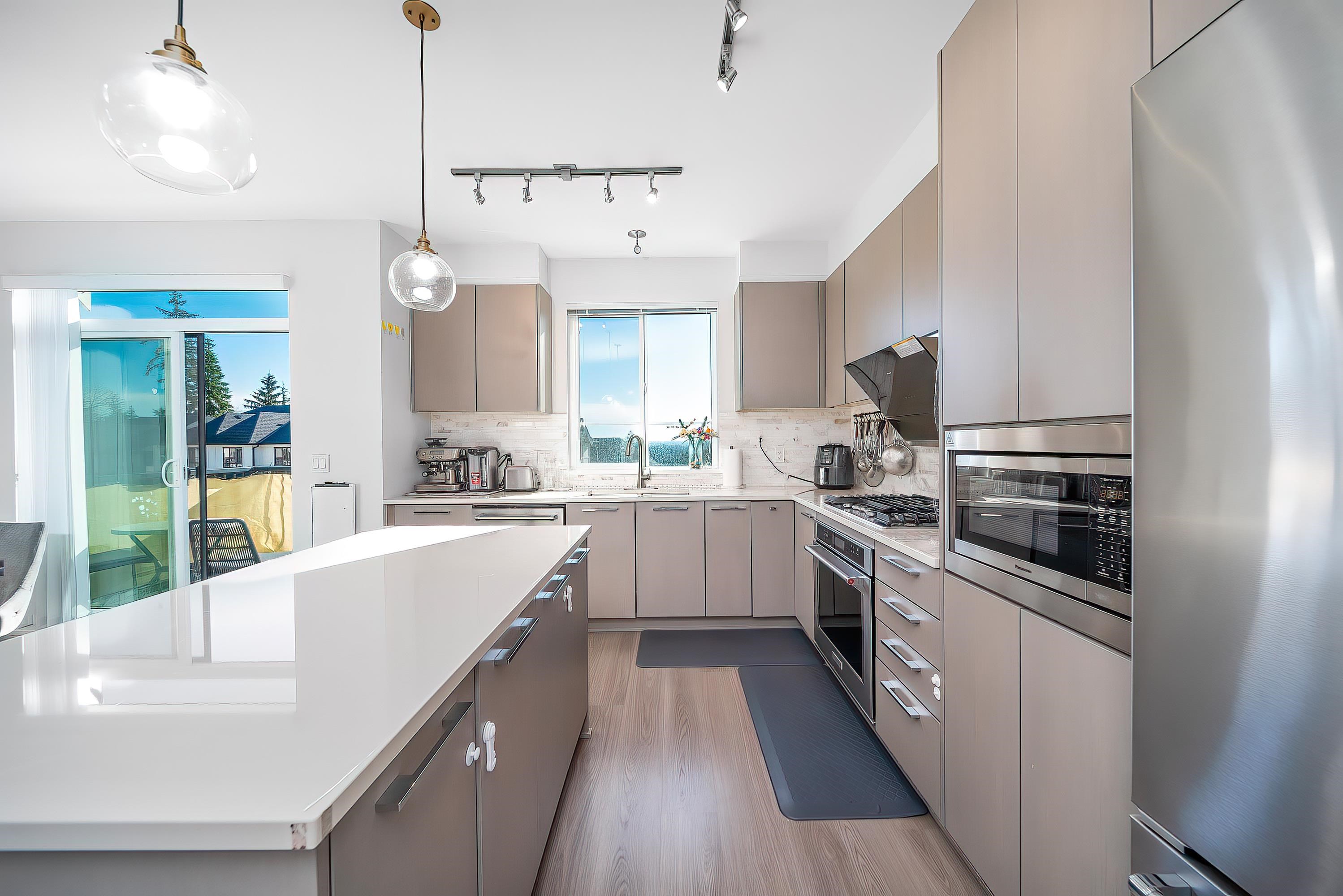 End Unit! Side by Side DOUBLE garage+2outdoor parking! South-North Facing! Stunning View! Well maintained Polygon 3 level town home for sale! Fenced front yard led to open concept mail floor features over height ceiling, bright living room surrounded with windows allows plenty of natural lights in, cozy dinning room connected to two balconies, Chef-favourite gourmet kitchen with custom-designed cabinetry, stainless high end appliances, large island and quartz countertops . Upper floor offers spacious master...