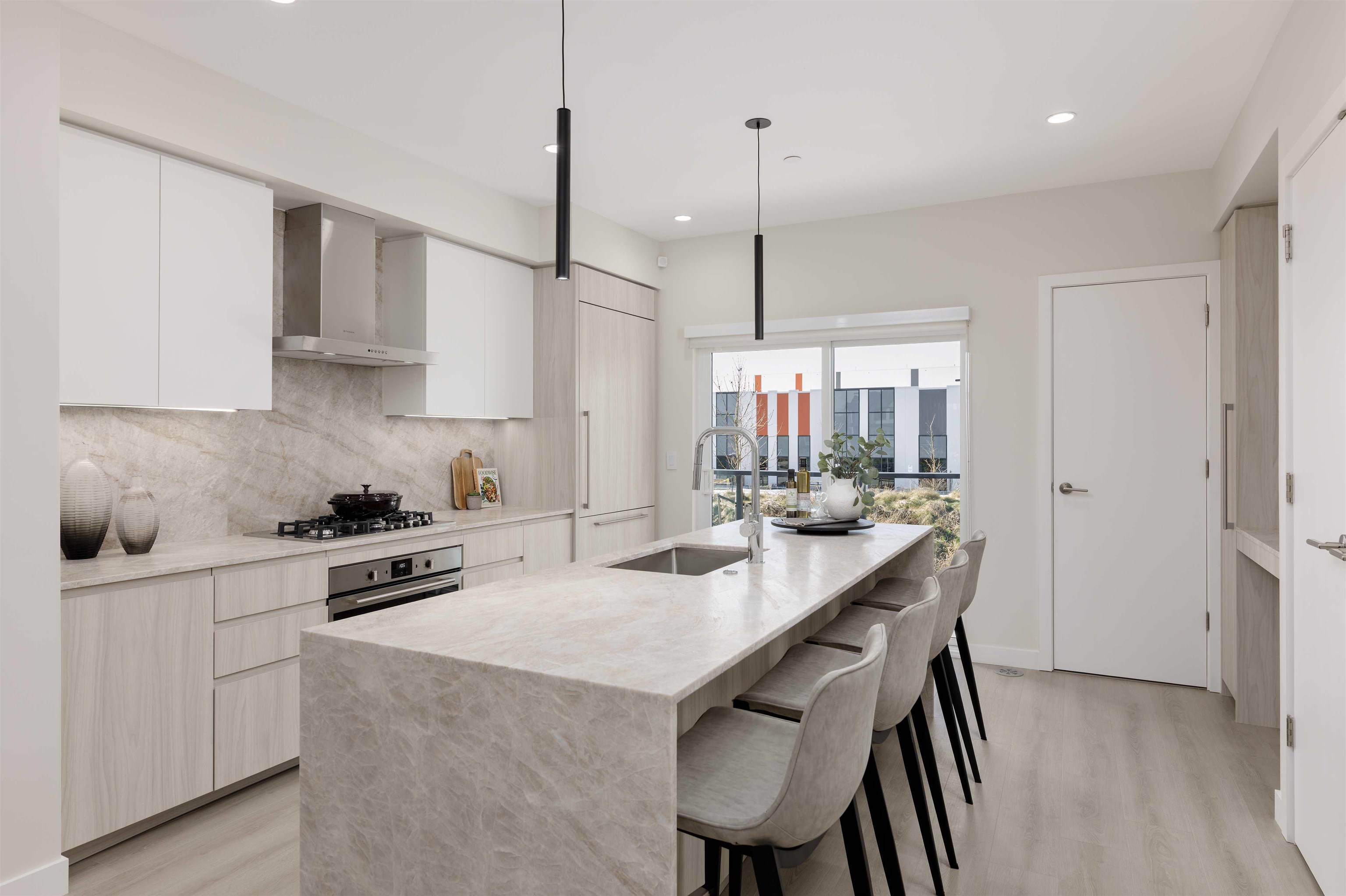 Craftsman inspired TH 120 1348 SF 3 bed 2.5 bath with a balcony and private yard in a well established community. Features include A/C, Laminate flooring throughout, on-demand hot water system, and overheight ceiling in living, kitchen and dining area with vaulted ceiling in the bedrooms make this home the perfect place to relax or entertain. Chef inspired kitchen features premium appliance package with 36" integrated Fulgor Milano fridge, 5-burner Fulgor Milano stove integrated with natural stone counter t...
