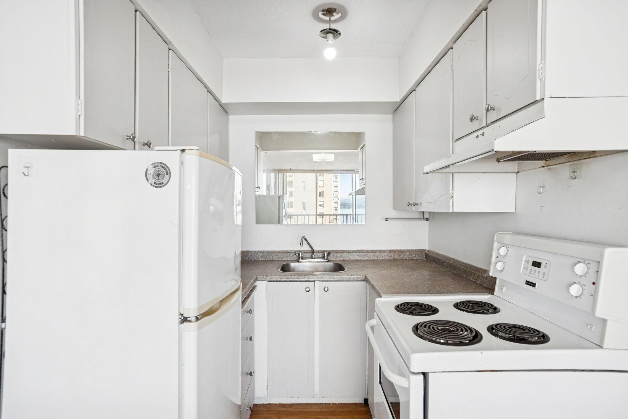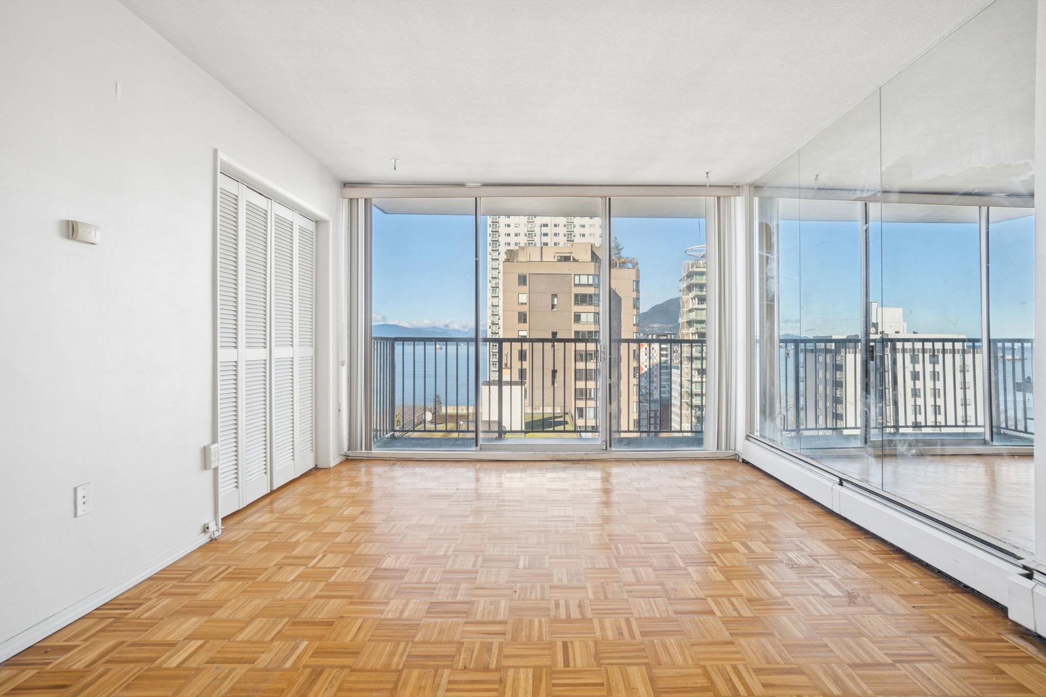 Charming 1 bedroom, 1 bath condo with picturesque water views of English Bay awaits your personal touch. Bask in the abundant natural light and invigorating ocean breezes in this well-priced gem. Situated just steps from the beach, this ideal location offers convenience to Denman and Davie street shops, cafes, and restaurants. The building boasts amenities including an indoor pool and sauna for your relaxation. Recent plumbing upgrades and parkade resurfacing have been done. Don't let this enchanting opport...