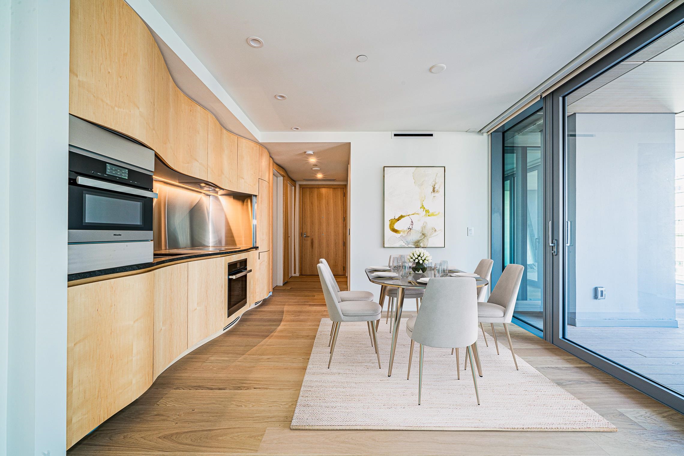 THE ALBERNI! Modern Masterpiece designed by renowned Japanese architect Kengo Kuma, The Alberni is an architectural icon in DT Vancouver. This SE-facing 2-bed residence offers breathtaking city and water views, enhanced by floor-to-ceiling windows and a spacious zen-inspired balcony that floods the home w/ natural light. The luxurious interiors showcase Kuma’s signature craftsmanship, featuring one-of-a-kind curved wood feature wall, bespoke open kitchen designs, high-end integrated Miele appliances, HW flo...