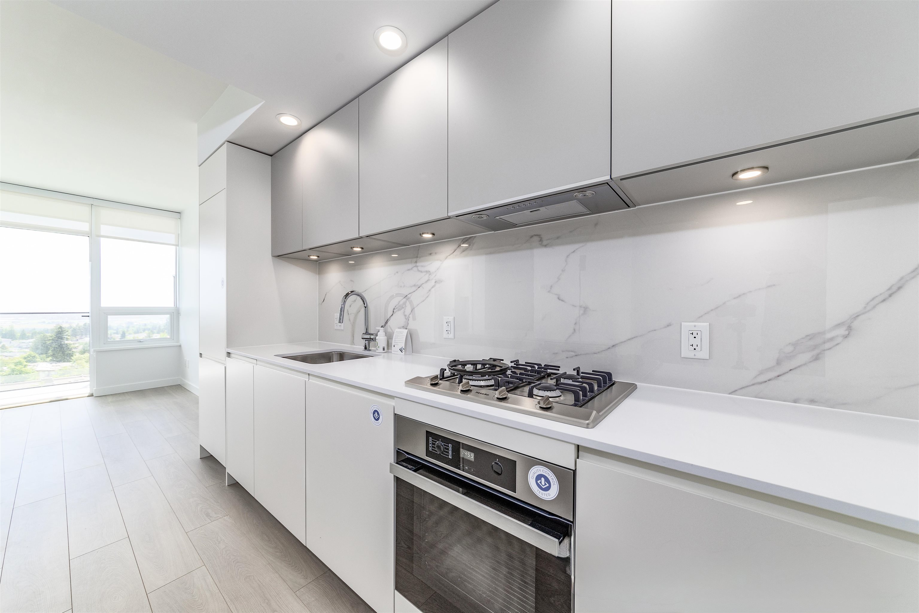 Luxury Brand new Junior 2- bedroom home by Intracorp, located in the heart of Metrotown. Offers 8'8 ft ceilings, quartz countertops, Meile and Fulgor Milano appliances, laminate flooring, LED lights, air conditioning. Two minutes to Metrotown and the Skytrain station, 10-minute walk to Central Park, which offers tennis courts, pitch & putt, walking trails, a pool, and a stadium. Super close to BCIT, Amenities include Concierge, Games room, Karaoke room, etc