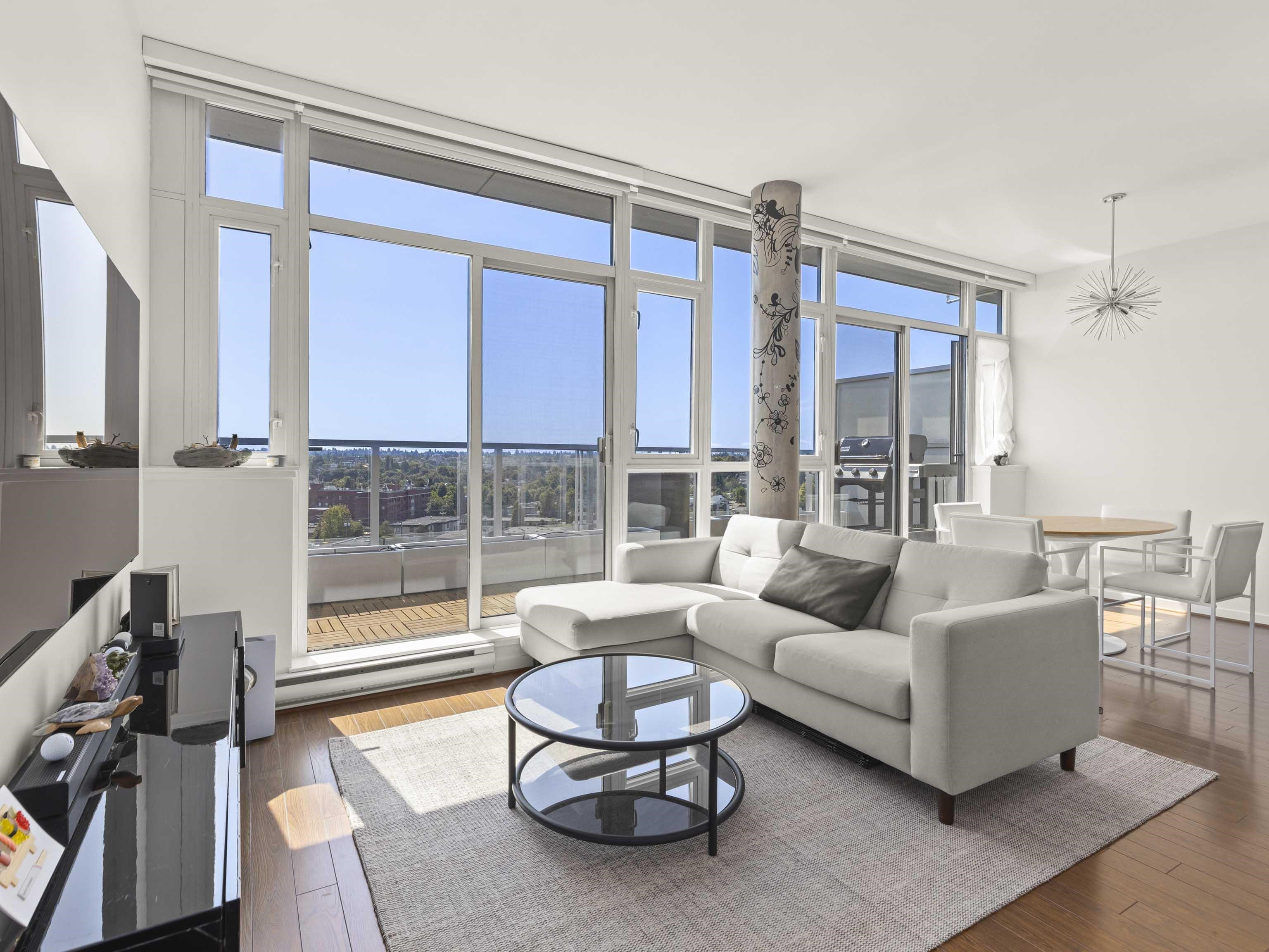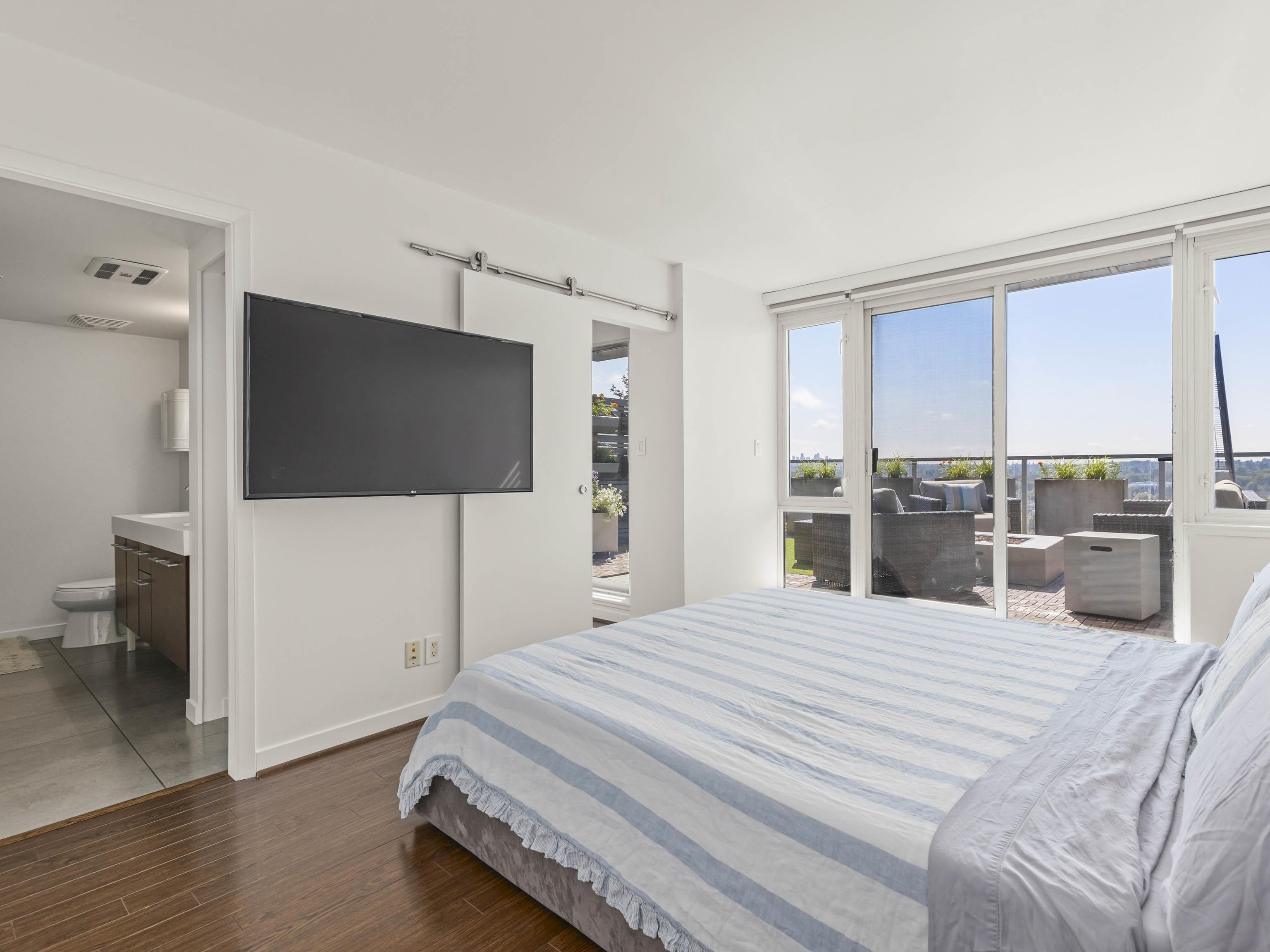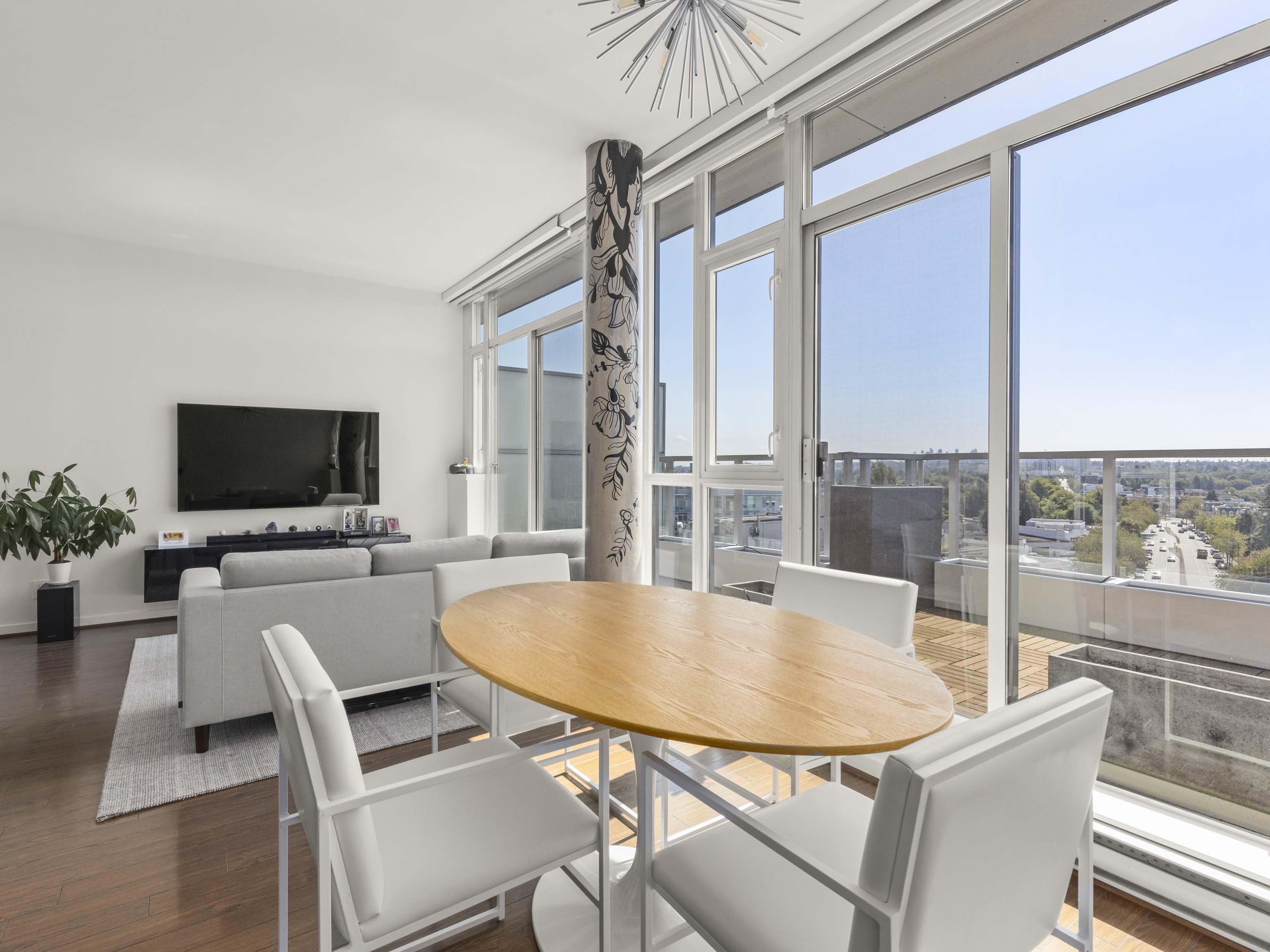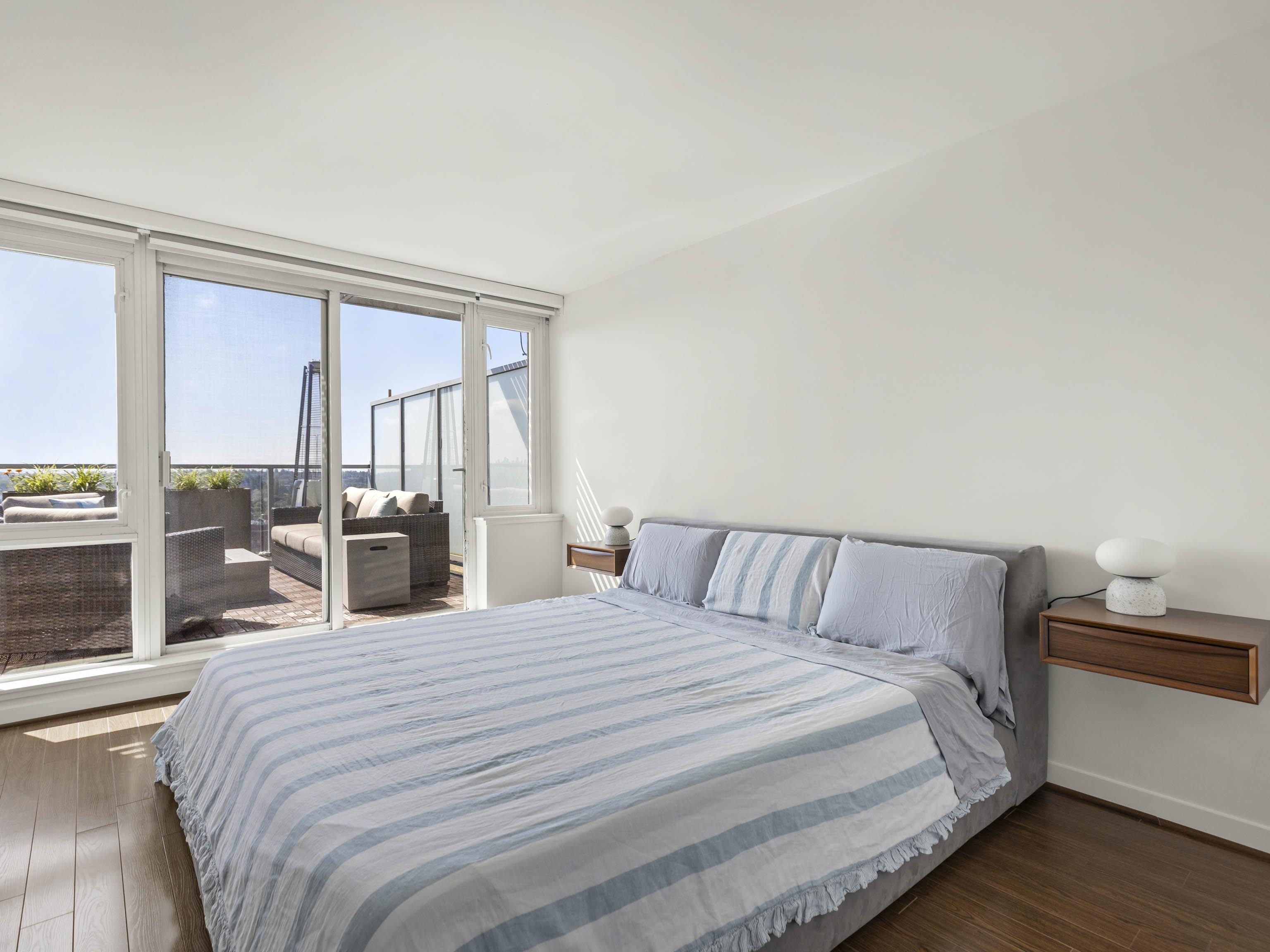 Welcome to the Architecturally stunning Stella building in the heart of Mt. Pleasant! This RARE 2 level Penthouse is an Entertainer's dream that features a private 147 SF balcony + 358 SF Sundeck where you will love entertaining friends and family and where you'll peacefully enjoy your coffee in the mornings. This spacious 1,030 SF 1 bedroom + Possible 2nd bedroom layout features electronic blinds, new irrigation system and custom planters in both patios, soaring 9'2 ceiling, in-suite storage, PANORAMIC Sou...