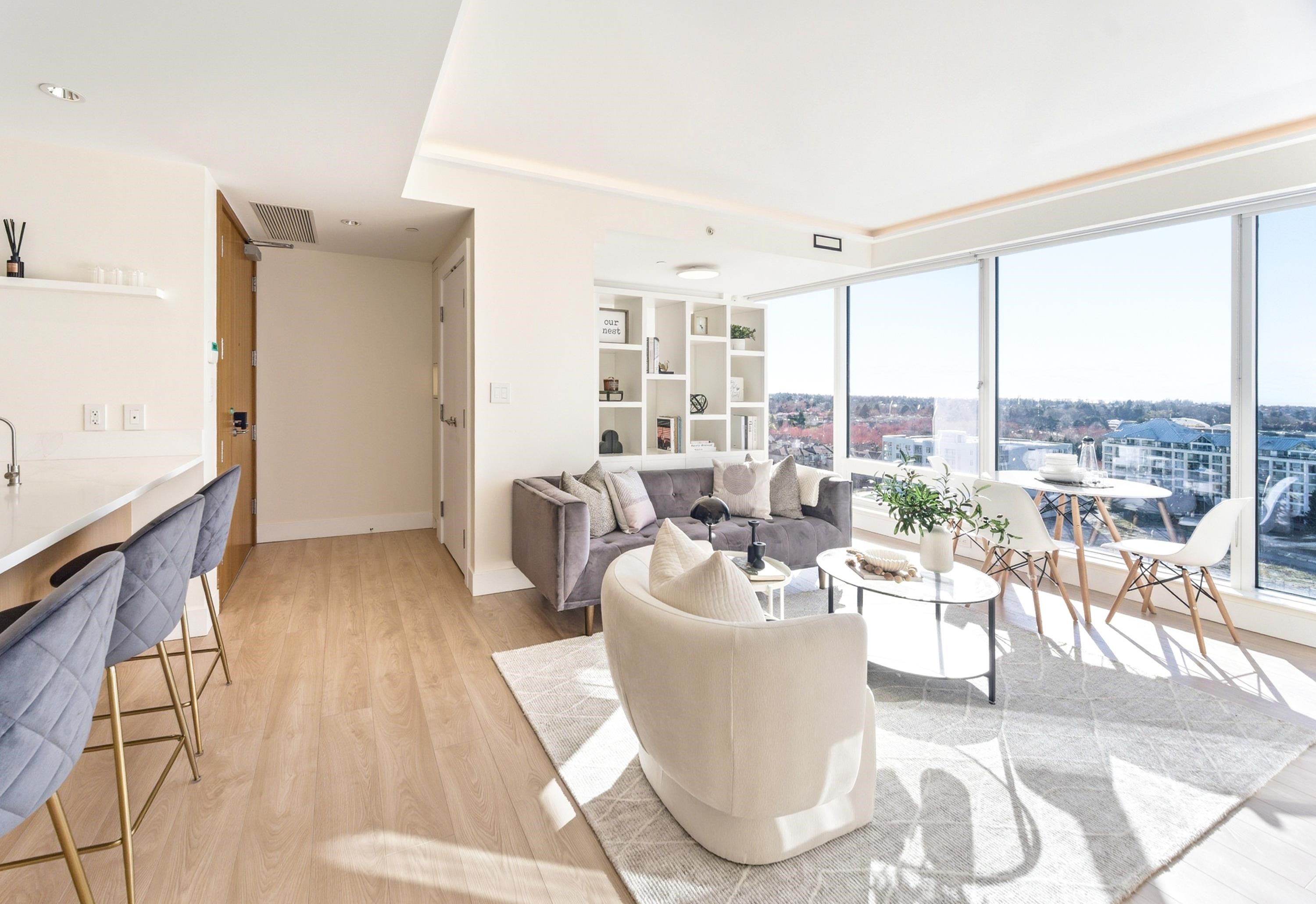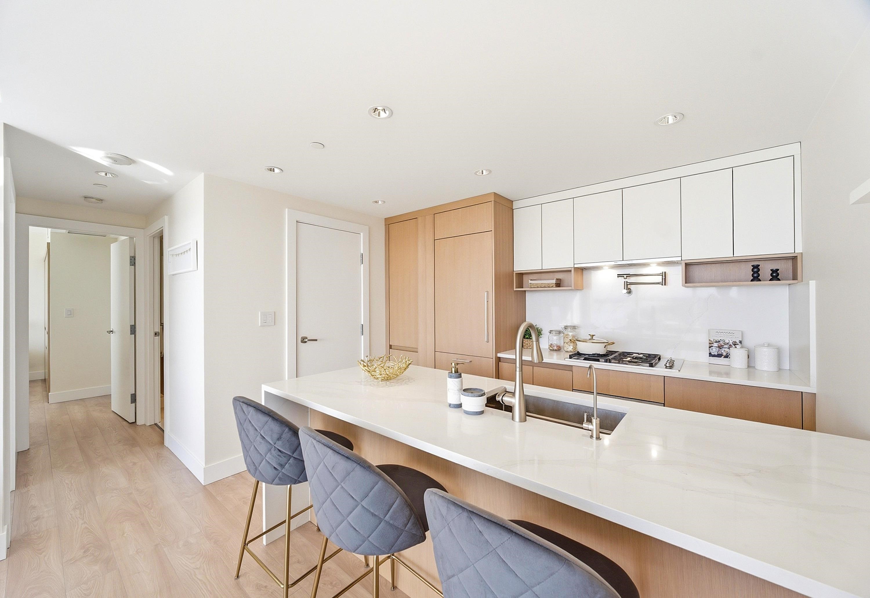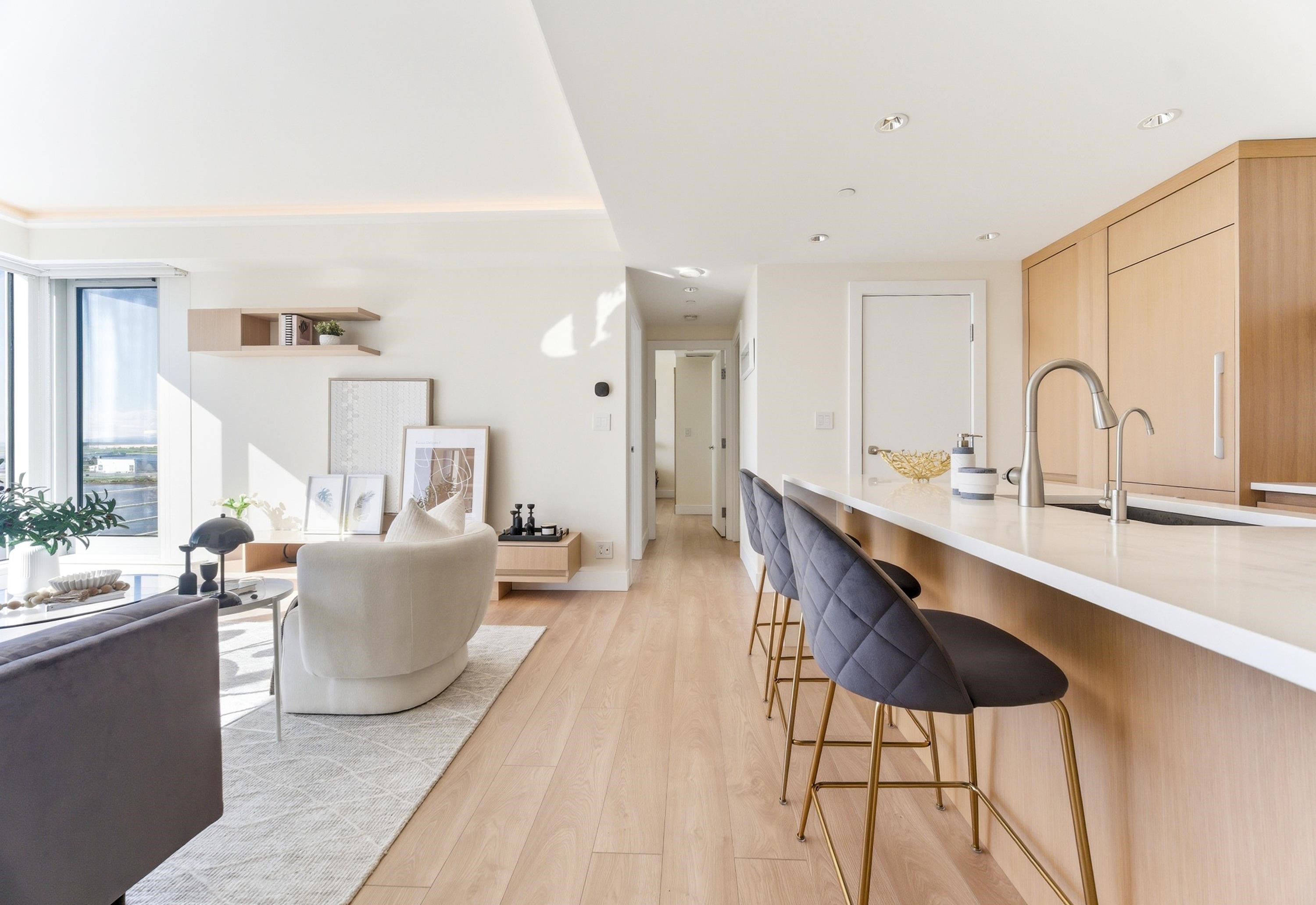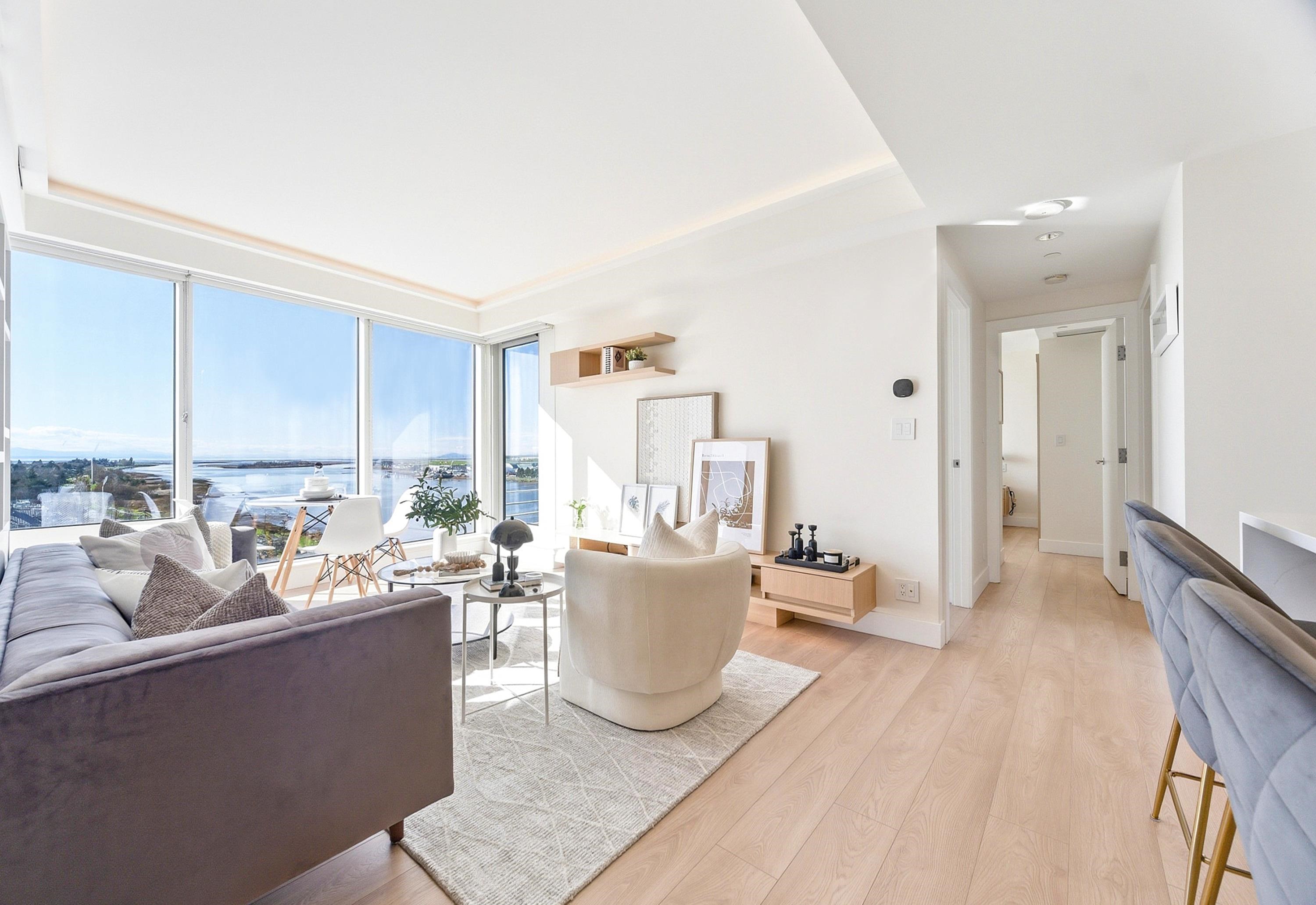 Welcome to River Green. This rarely available sub-penthouse offers 2 bedrooms with breathtaking, unobstructed views of the river, ocean, islands, and North Shore mountains. Spanning 939 sq.ft., this home features an efficient open layout maintained in pristine show home condition and customized renovation worth 230k. Upgrades include engineered hardwood flooring, a built-in entertainment unit, custom closet and pantry organizers, glass display shelving, and custom ambient ceiling and cabinet lighting. The...