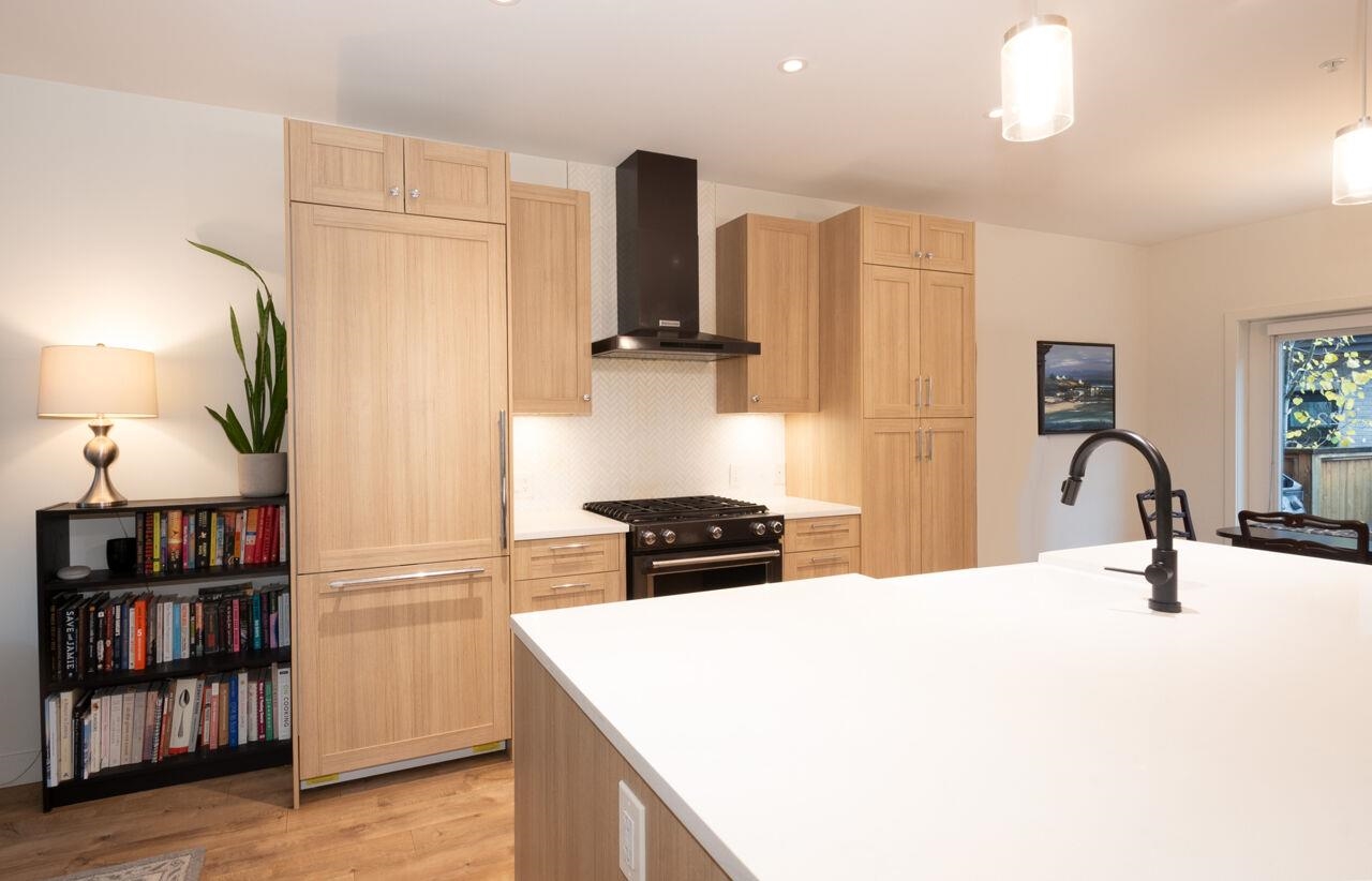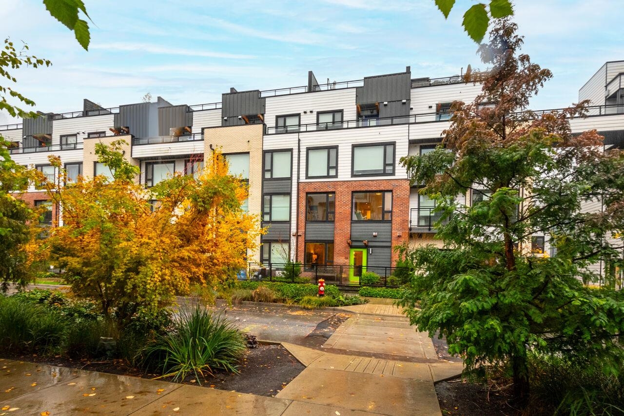 Beautiful 3 bdrm & den townhouse at 'The Trails' in Lower Lonsdale. Experience bright, spacious, & modern living in this well designed TH w/open-concept main flr. Kitchen boasts high-end appliances, incl. integrated fridge & black stainless gas range, pantry, quartz counters, + a large island—ideal for cooking & entertaining. Perfect for families, the upper level offers 3 bdrms on one flr, incl. primary bdrm w/gorgeous ensuite & conveniently located laundry. Enjoy private front & back patios, perfect for ye...