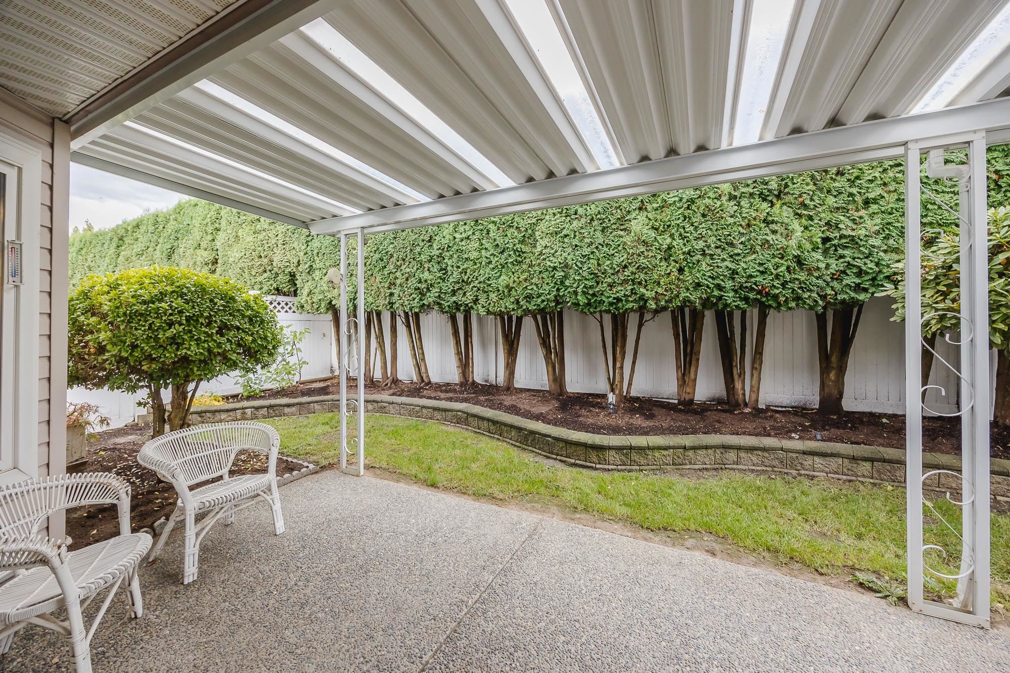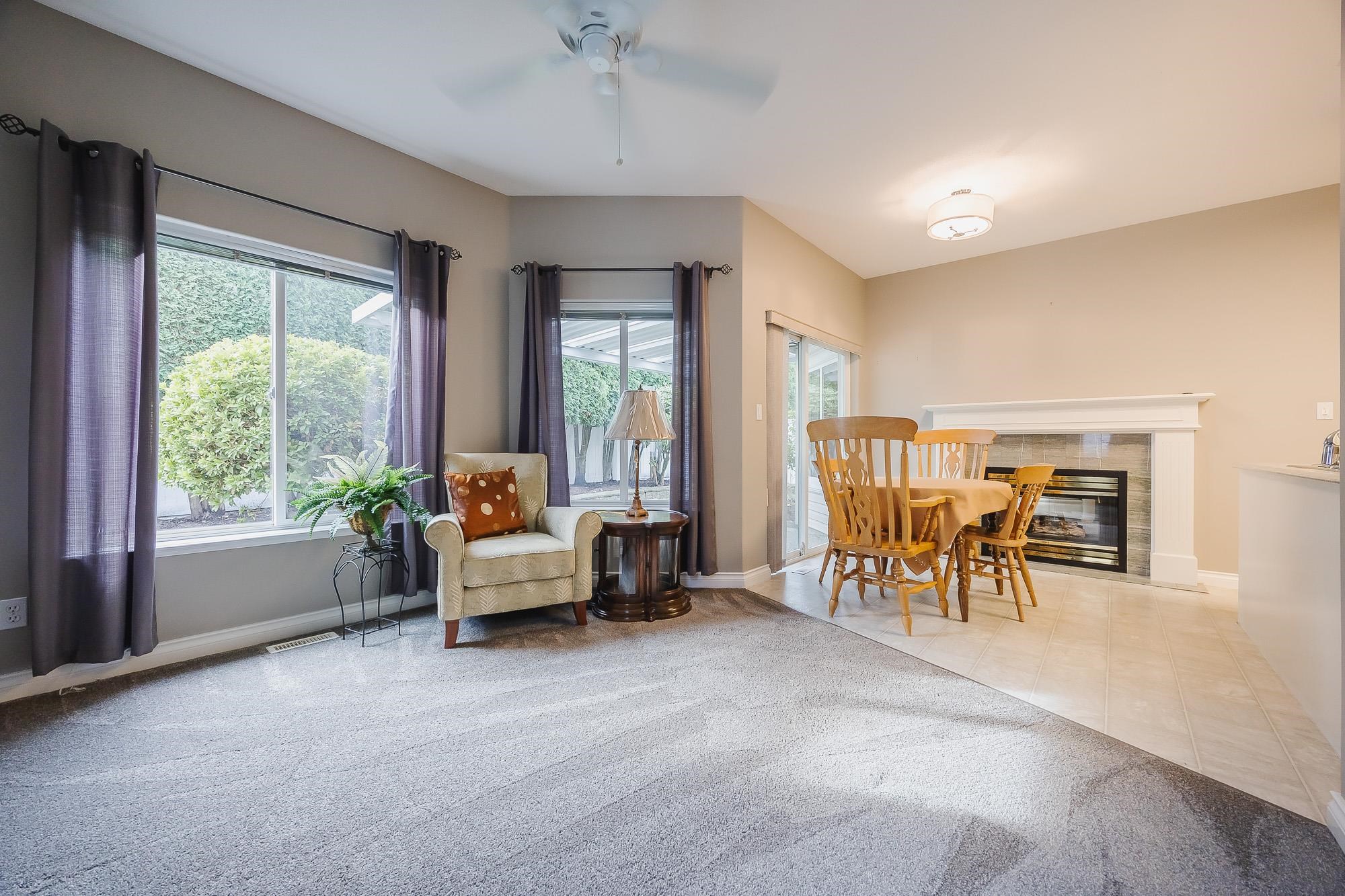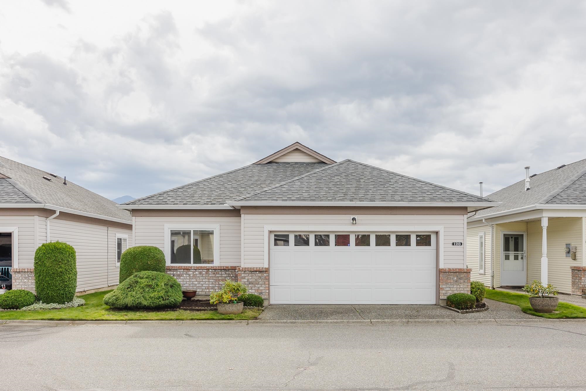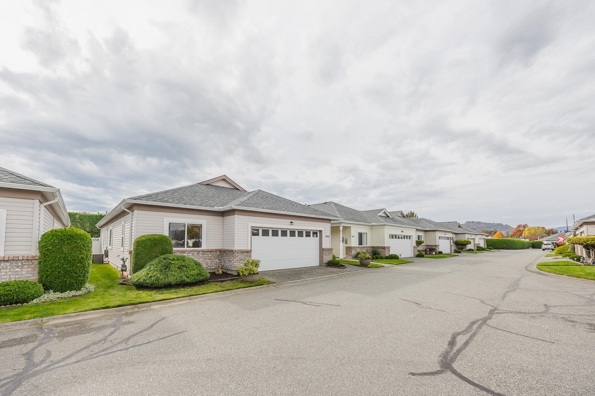 Welcome to Hazelwood Grove - a 55+ gated complex centrally located in Chilliwack. Spacious detached rancher with over 1,500 sqft of living space and central A/C. Cozy family room, large living room with gas fireplace that is double sided with the eating area and bright white kitchen with SS appliances. Primary bedroom features walk-in closet and a sit-down shower in the ensuite. Covered patio in the fully fenced and private southern exposure yard. Access to RV parking, clubhouse with pool and guest suite.