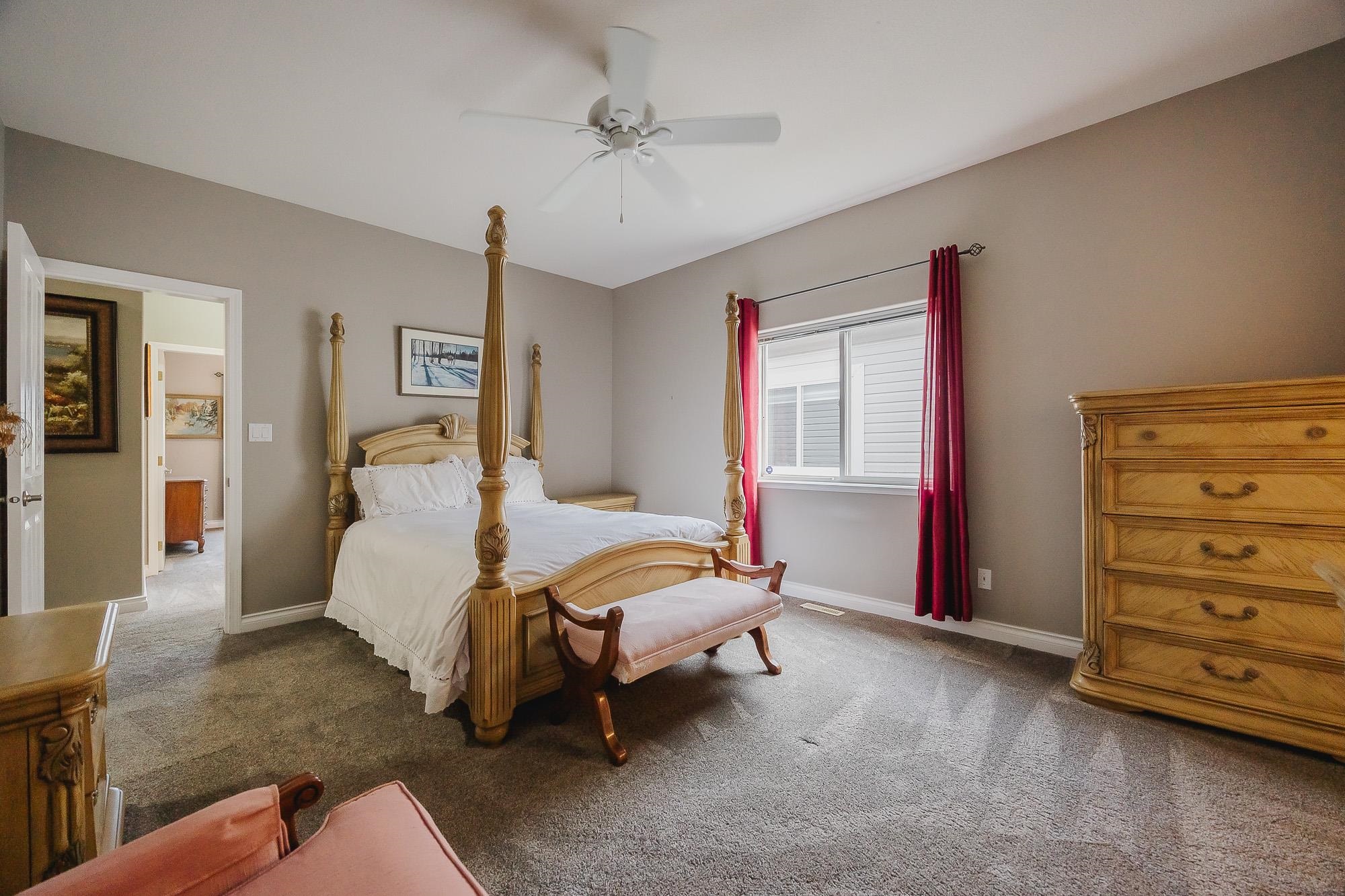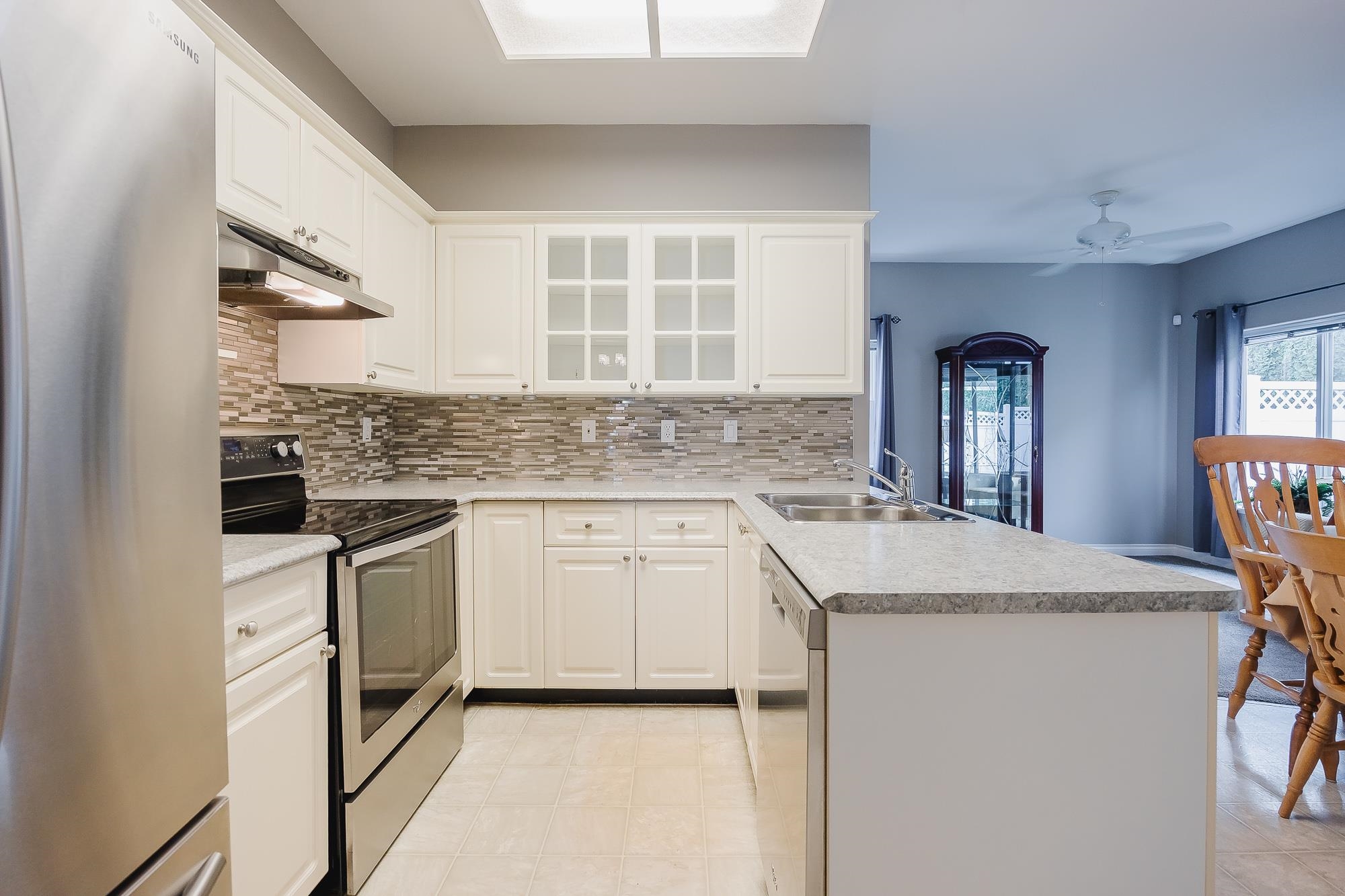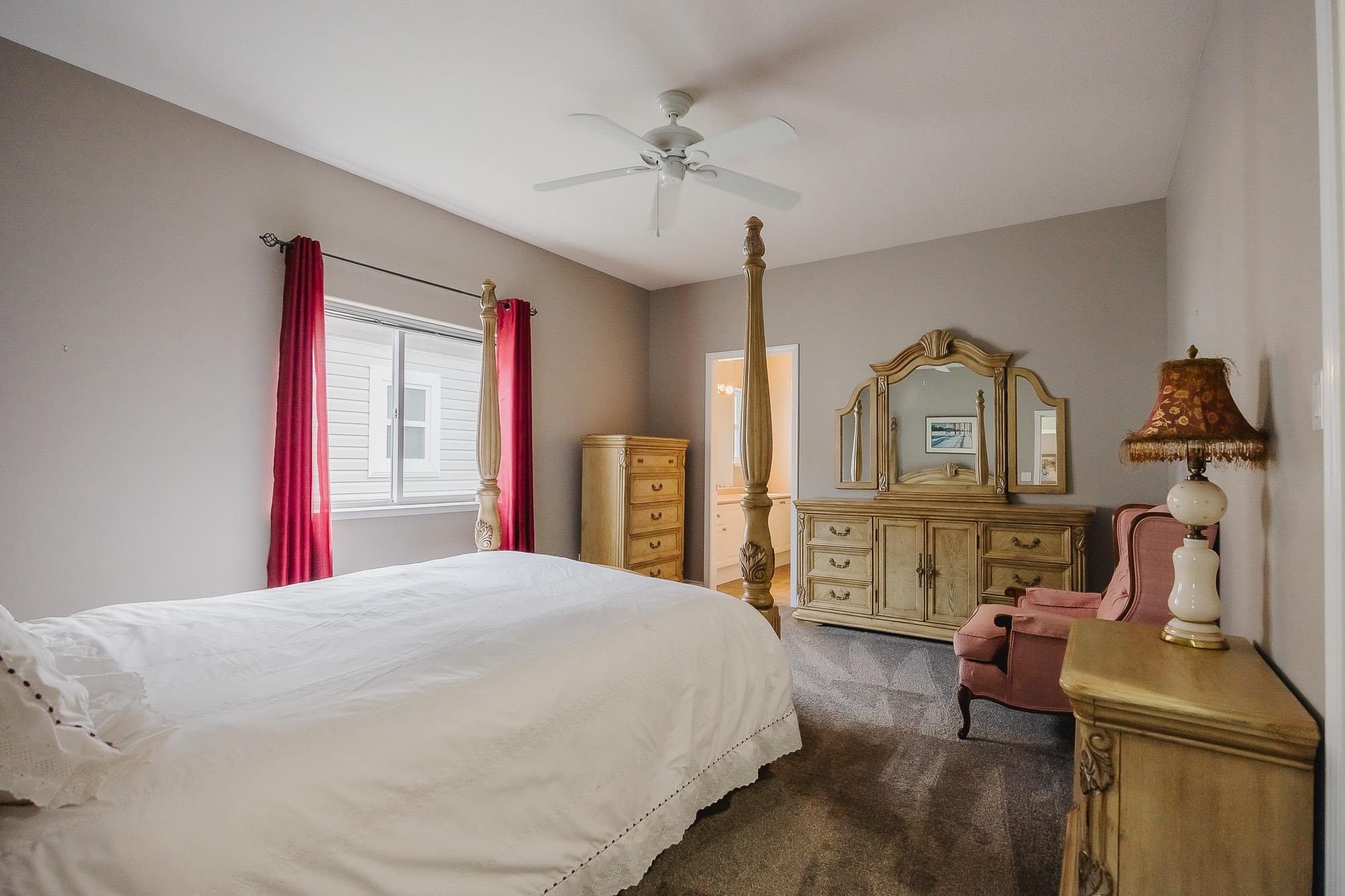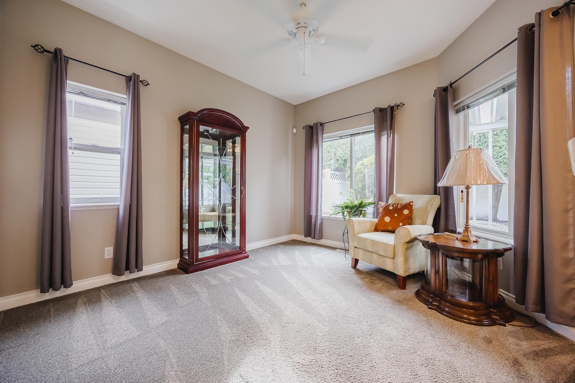 Welcome to Hazelwood Grove - a 55+ gated complex centrally located in Chilliwack. Spacious detached rancher with over 1,500 sqft of living space and central A/C. Cozy family room, large living room with gas fireplace that is double sided with the eating area and bright white kitchen with SS appliances. Primary bedroom features walk-in closet and a sit-down shower in the ensuite. Covered patio in the fully fenced and private southern exposure yard. Access to RV parking, clubhouse with pool and guest suite.