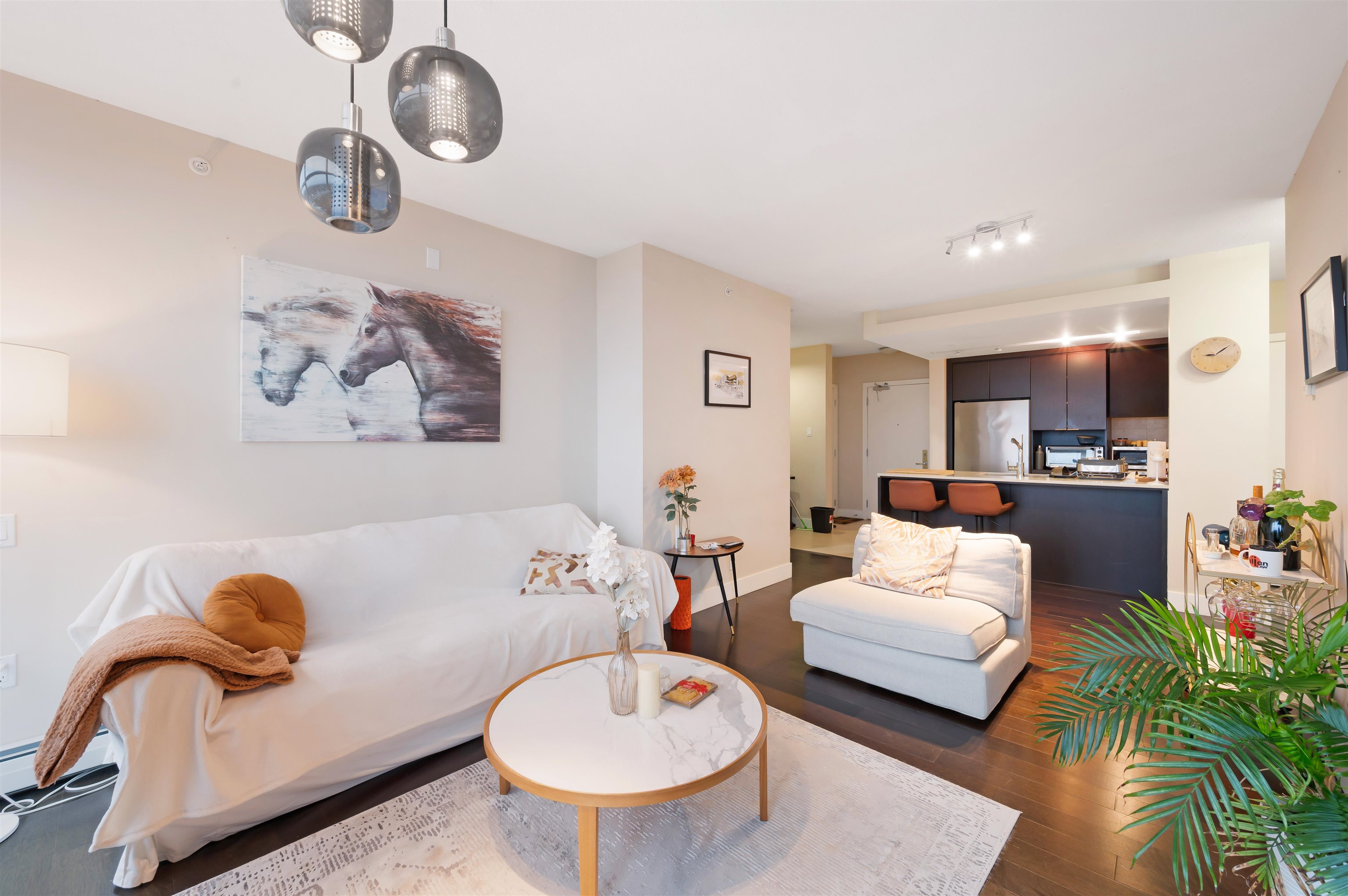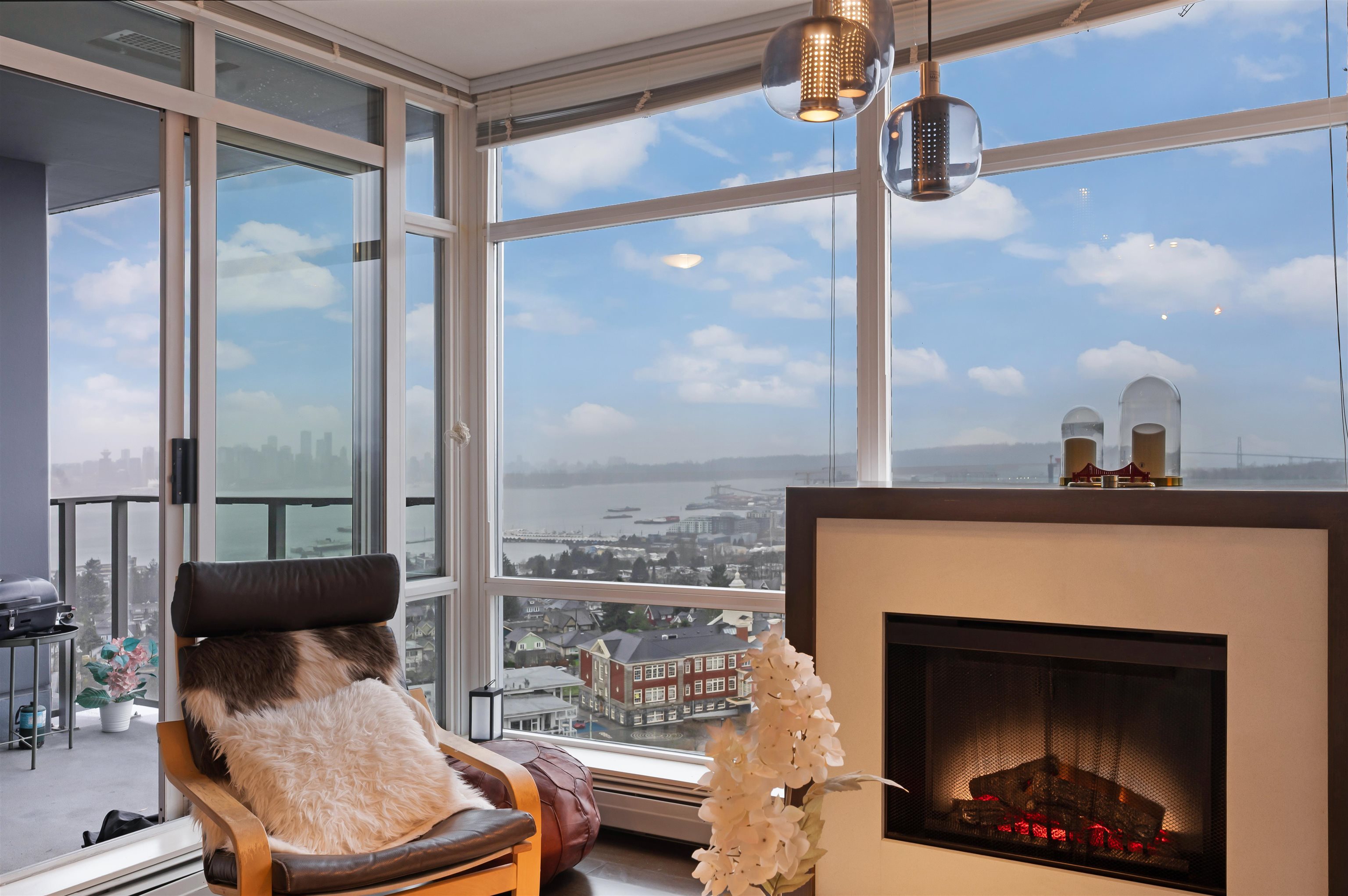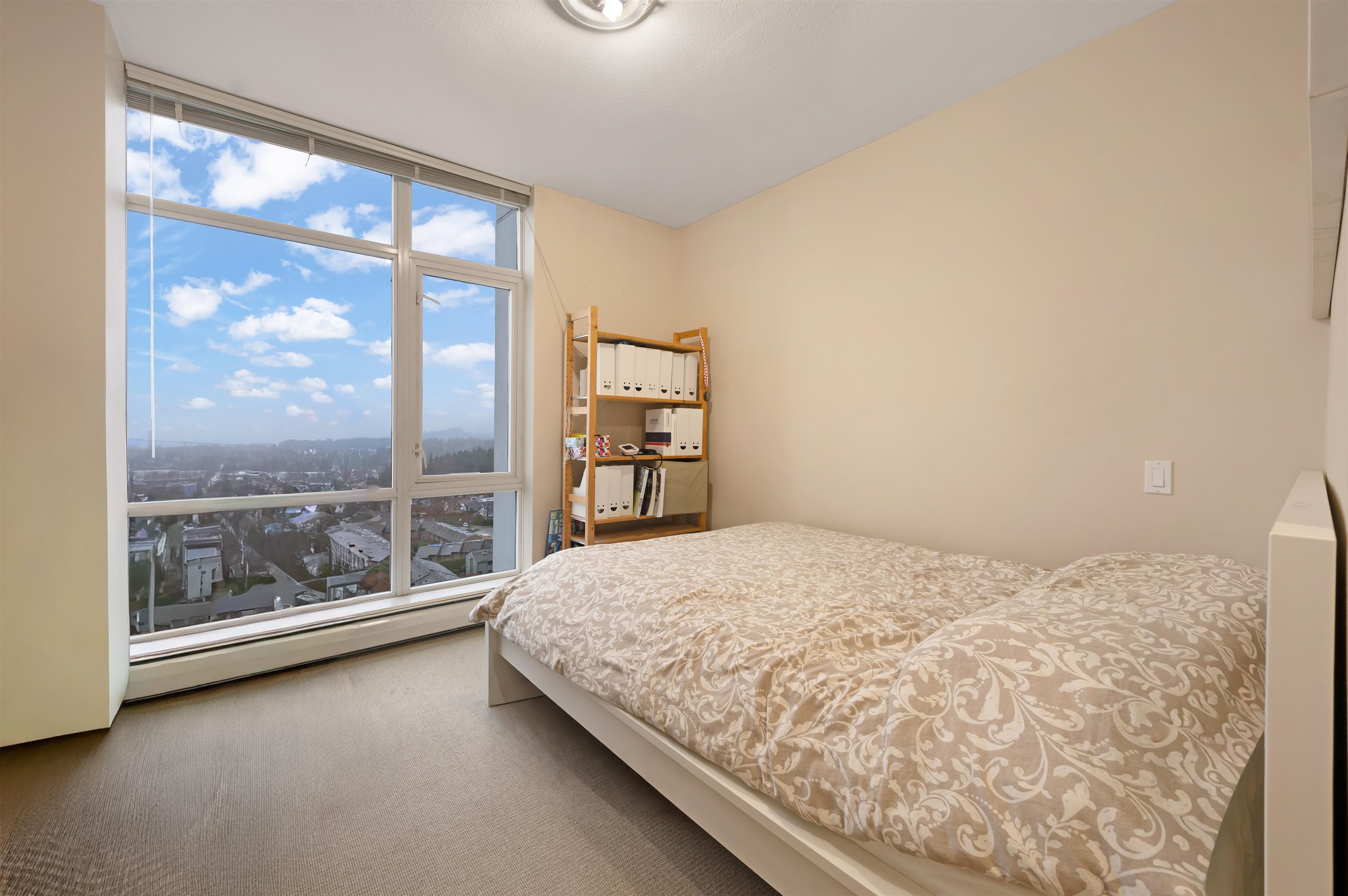Wake up to natural light and rare southwest exposure in the heart of Central Lonsdale. Elevated views stretch across the city skyline, mountains, Lionsgate and water framed by floor-to-ceiling windows in a solid concrete building. This 2 Bed + Den layout is built for real life, with separated bedrooms, a versatile den for work or guests, and an open kitchen and living area that flows onto a bright, usable balcony. Quiet construction offers comfort and privacy, while everything you need, Whole Foods, rest...