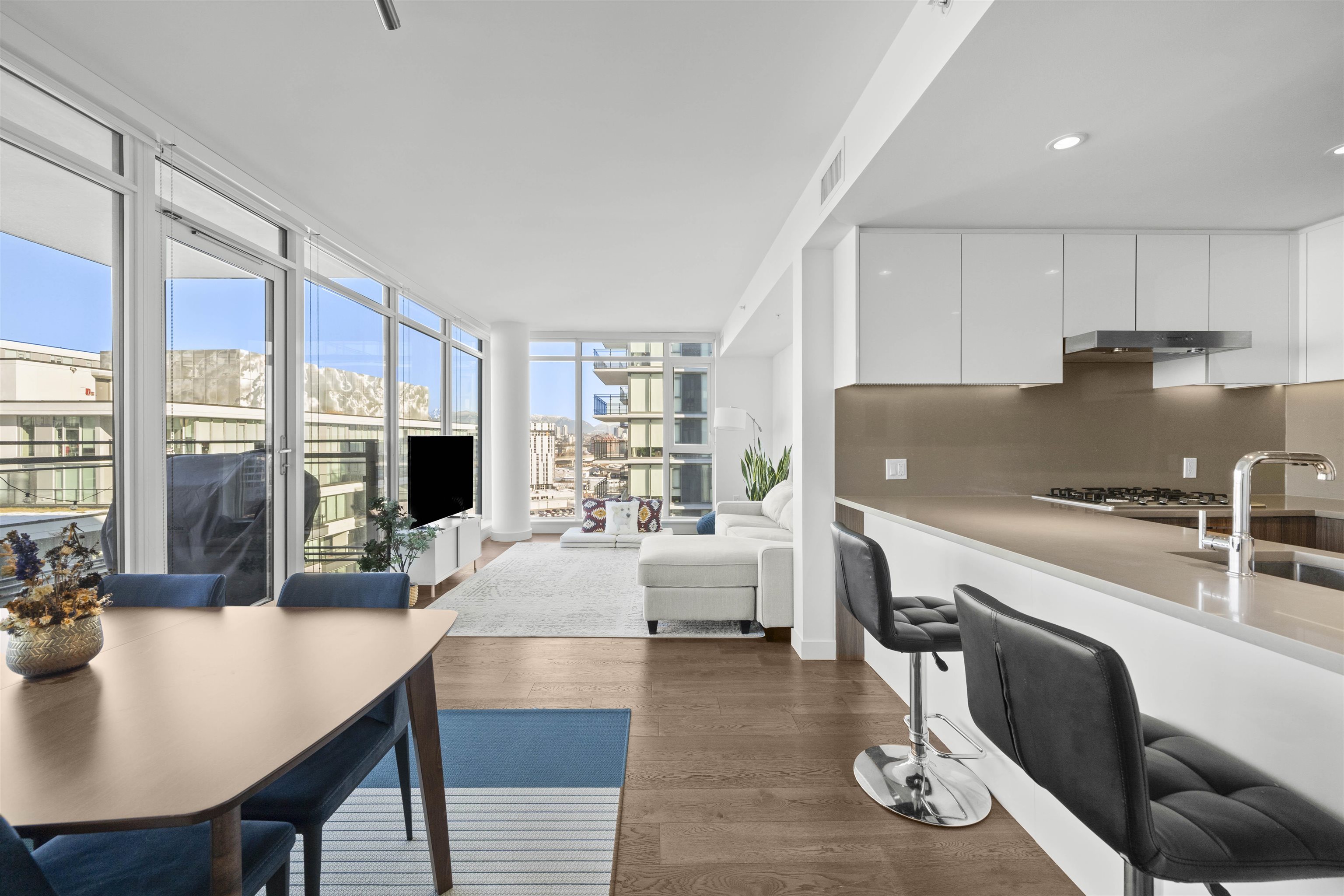 Welcome to “VIEWSTAR” – a waterfront landmark project located in the heart of Richmond. This CORNER 2-bedroom + 2-bathroom unit features an incredible open floorplan with floor to ceiling windows and a 198SF privacy balcony with panoramic views of the mountains, Fraser River and quiet courtyard. Incredible finishes throughout including engineered hardwood flooring, S/S Miele Appliances, 5-burner GAS range, Air-Conditioning and quartz countertops & backsplash. WORLD-CLASS amenities include gym, club house, s...
