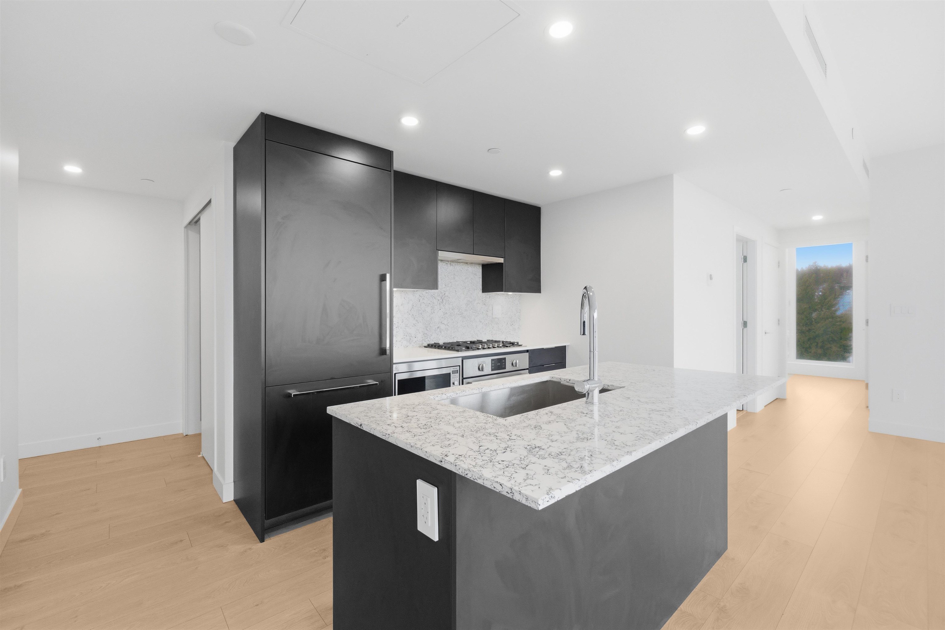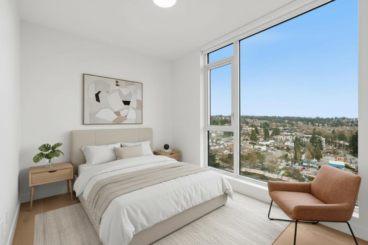 Welcome to this bright 2-bedroom corner home in a solid concrete building, offering unobstructed views of the bridge, mountains, and river. Enjoy an open-concept layout with a modern gourmet kitchen featuring sleek Bosch appliances, perfect for everyday living and entertaining. The building pampers you with over 13,000 sq ft of amenities, including a theatre, fully equipped gym, yoga studio, sauna, guest suite, and a rooftop lounge with sweeping city views. With 1 EV ready parking stall included and a super...
