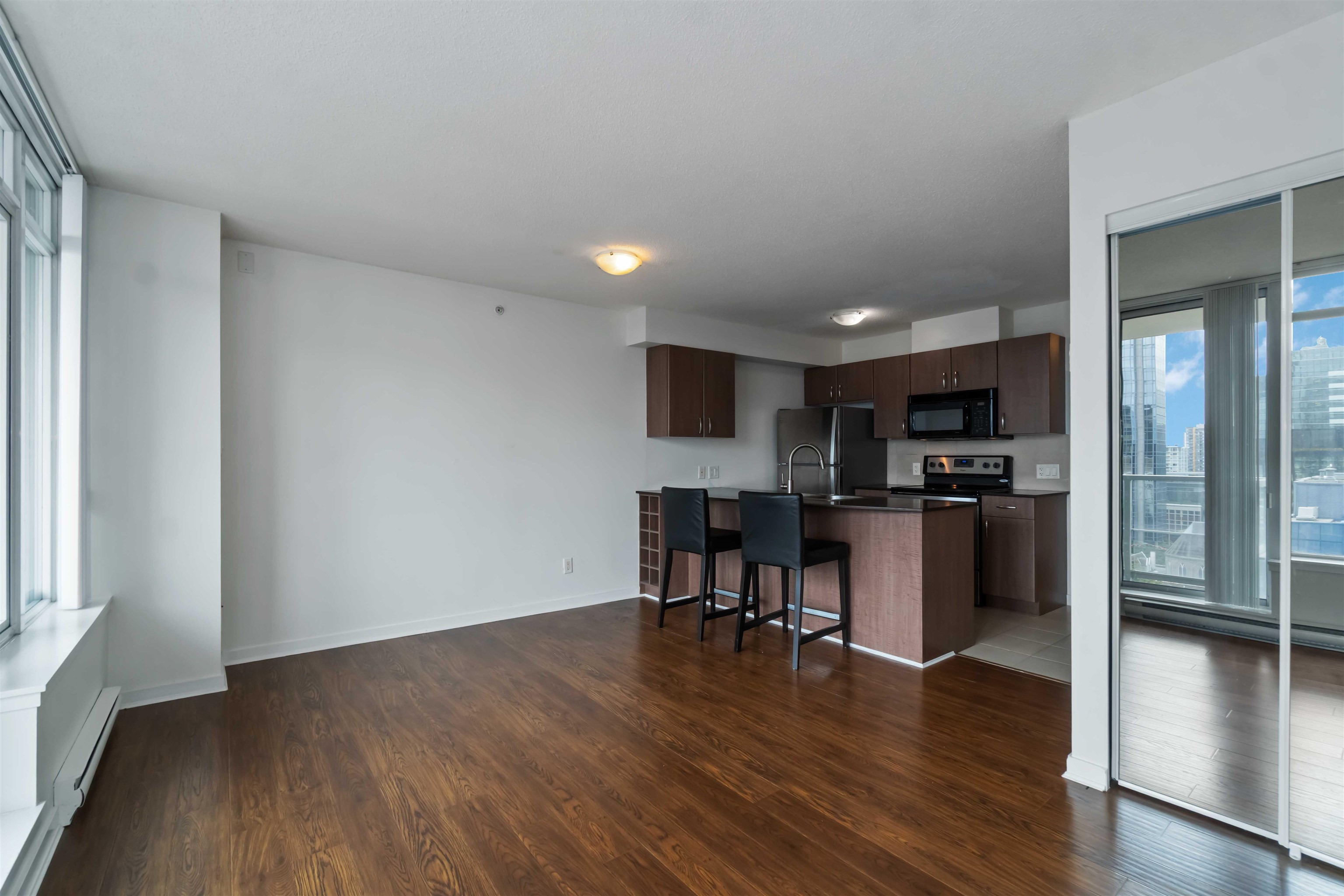 Studio with Parking rarely available at The Hudson. Features great efficient floor plan. Polished stone countertops, S/S appliances regular size. Den, large, balcony overlooking the city w/ morning sun. Zoned LIVE/WORK this building comes w/luxuriously finished grand lobby w/24 hour concierge, meeting rooms, lounge w/kitchen, gym. Amazing central location,direct access to Skytrain & Pacific Center from concourse level. 1 Parking #207