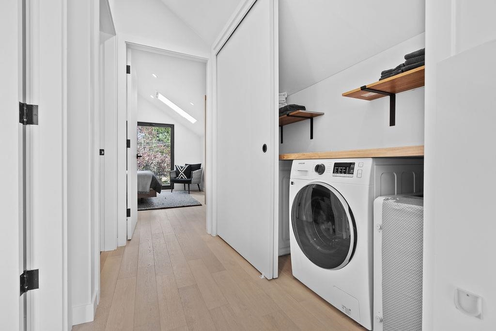 Custom designed & built by Lanefab Design/Build. Modern 1/2 duplex 3 bedroom/3 baths built w/Passive-Grade construction. Foyer w/custom millwork & powder rm at entry flows to chef's kitchen w/8' island feat. sliding Taj Mahal stone top that converts to 8 person dining. Bocci chandelier & premium appliances. Lvng rm w/Euro tilt/slide doors opens to deck w/mtn & city view. Sunny, private patio wrapped in natural cedar beauty. 2 spacious bdrms up w/12' vaulted ceiling, mtn & city view, skylight & oak h/w flr. ...