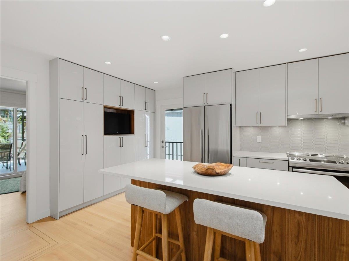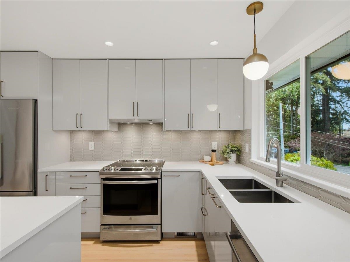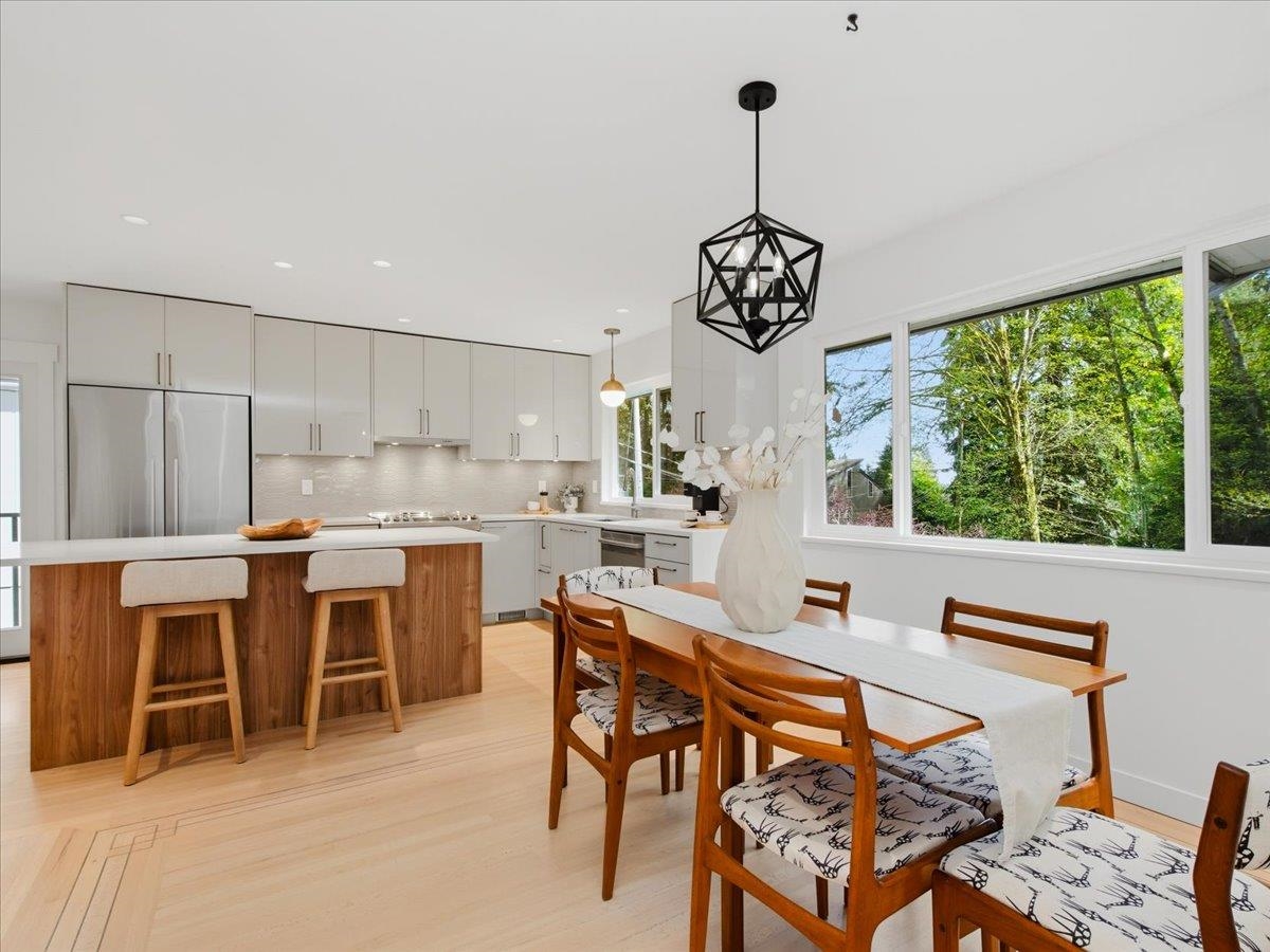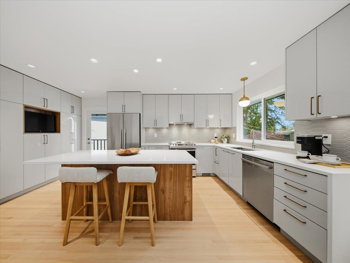 Exceptional, fully updated Lynn Valley family home on a rare 9,000+ sqft quiet cul-de-sac lot. The main floor was renovated in 2024, featuring restored oak hardwood floors and, a refined open-concept kitchen with modern finishes and Fisher-Paykel & Bosch appliances. Three bedrooms up include a spacious primary with 3-piece ensuite, plus a main bath. High-efficiency windows offer private views of a park-like setting. Enjoy a large covered deck with Duradek, glass awning, and railings, overlooking a private l...